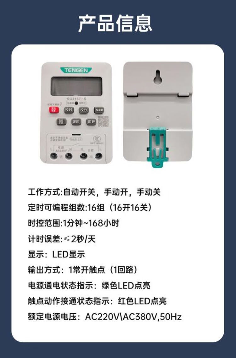 Tianzheng Electric (TENGEN) time relay time control switch KG316T-S AC220V 16 sets of timing
