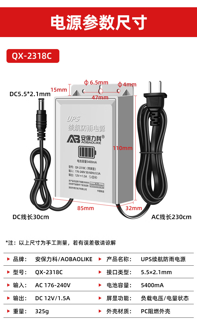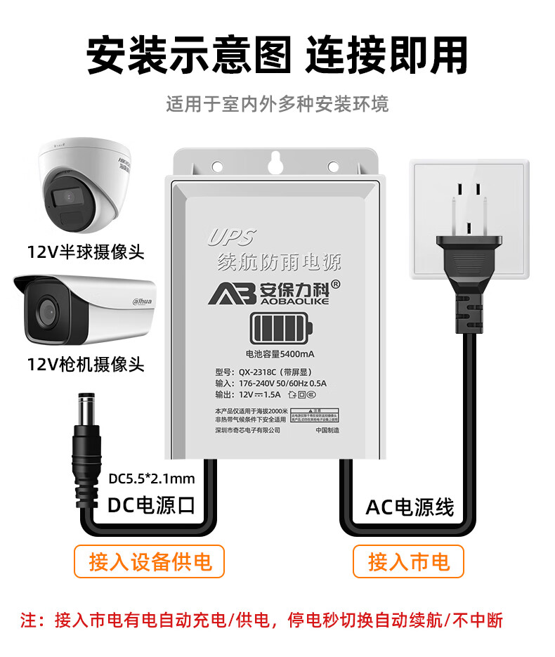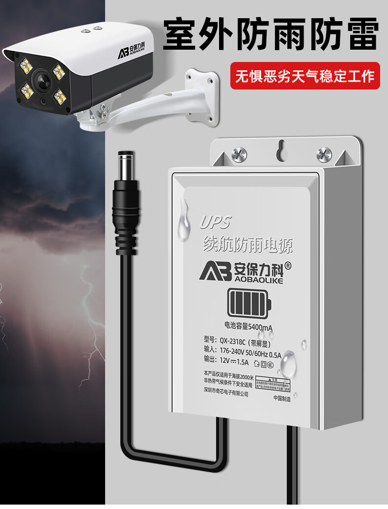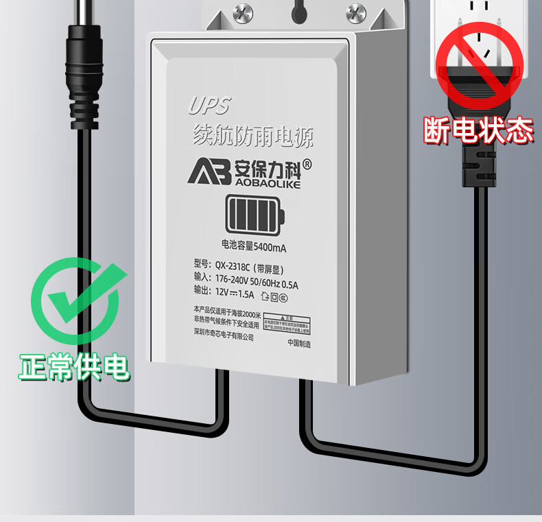 Security LeCroy Monitoring battery life power supply 12V camera adapter UPS power outage backup transformer outdoor waterproof 3C certification