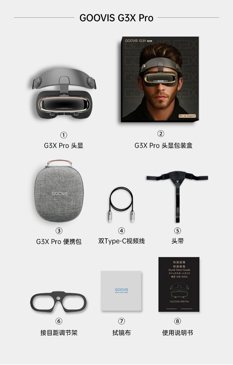 GOOVIS G3X Pro smart glasses, ultra-clear blue light 3D head display, non-VR/AR glasses, OLED head-mounted display, immersive/open dual-use