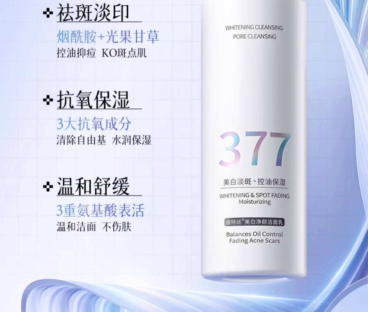 Vitus amino acid facial cleanser for men and women, whitening, brightening skin tone, deep cleansing, shrinking pores, oil-controlling cleanser
