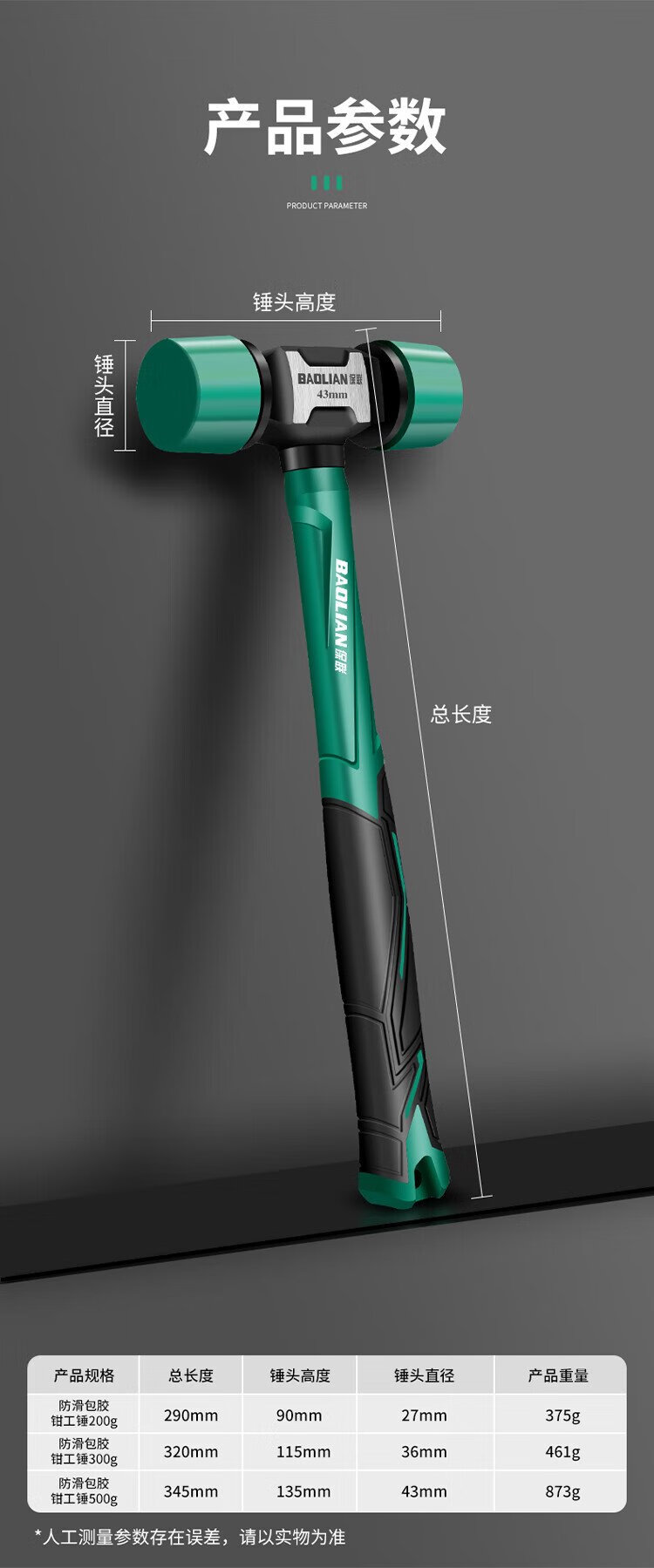 Baolian rubber hammer rubber hammer floor tile installation hammer plastic solid hammer rubber knocking tool