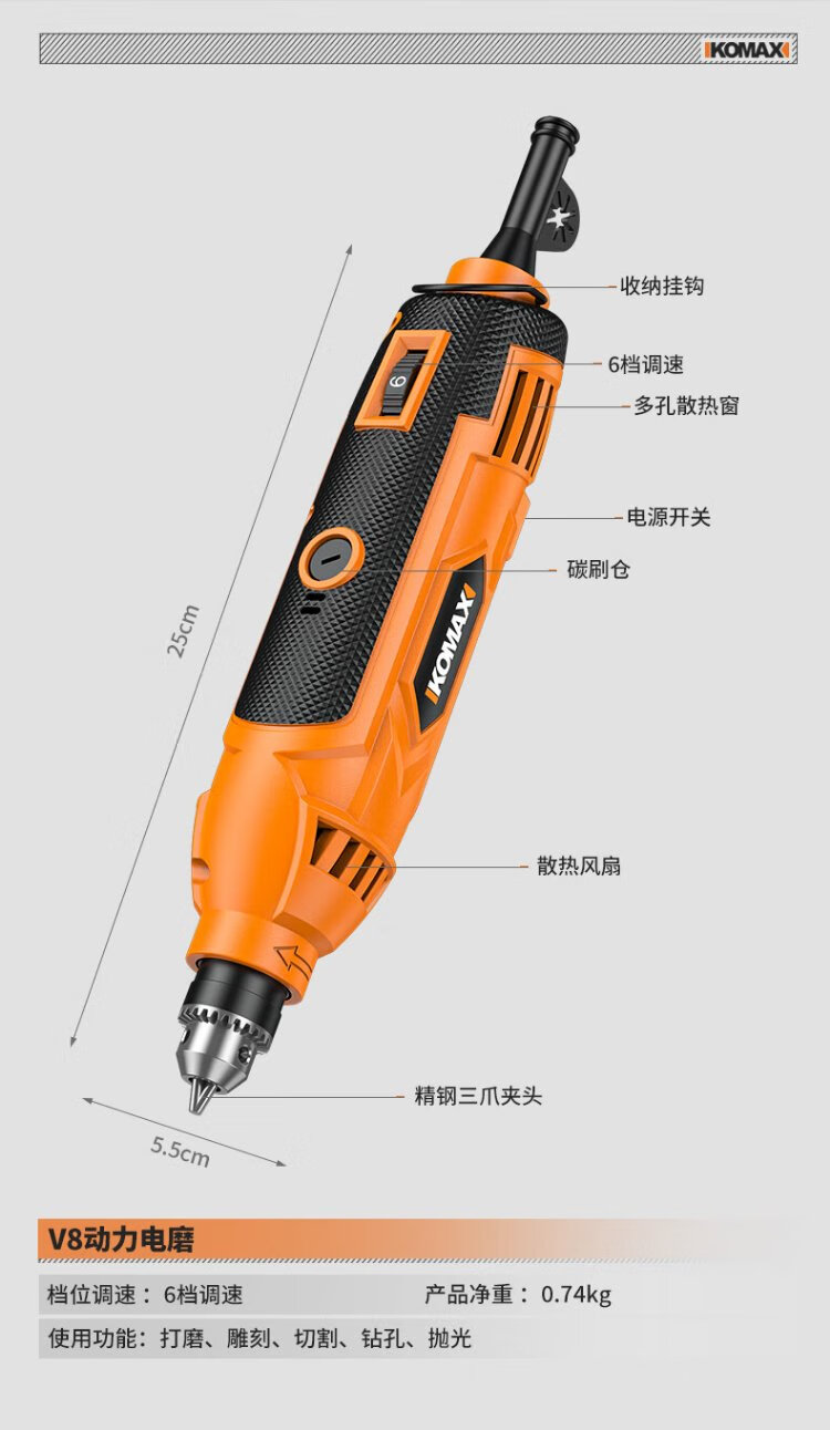 Komax electric grinder small handheld grinder electric polishing jade wood carving tool cutting artifact mini electric drill