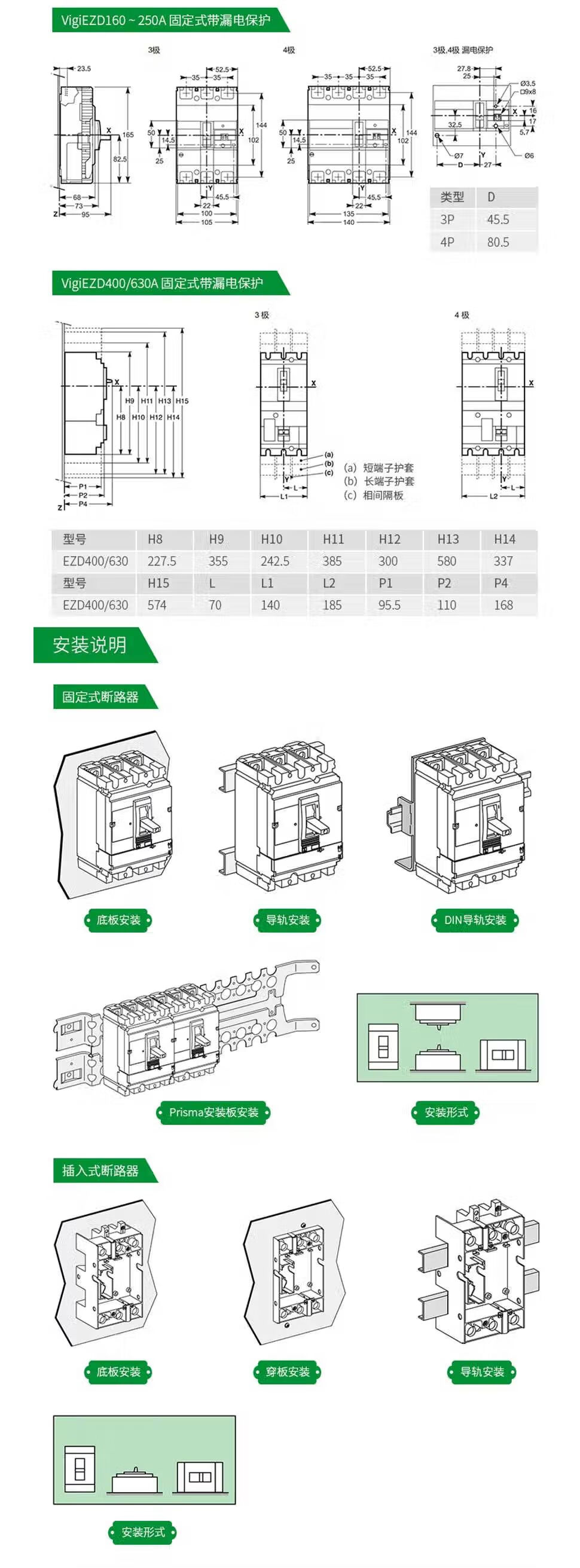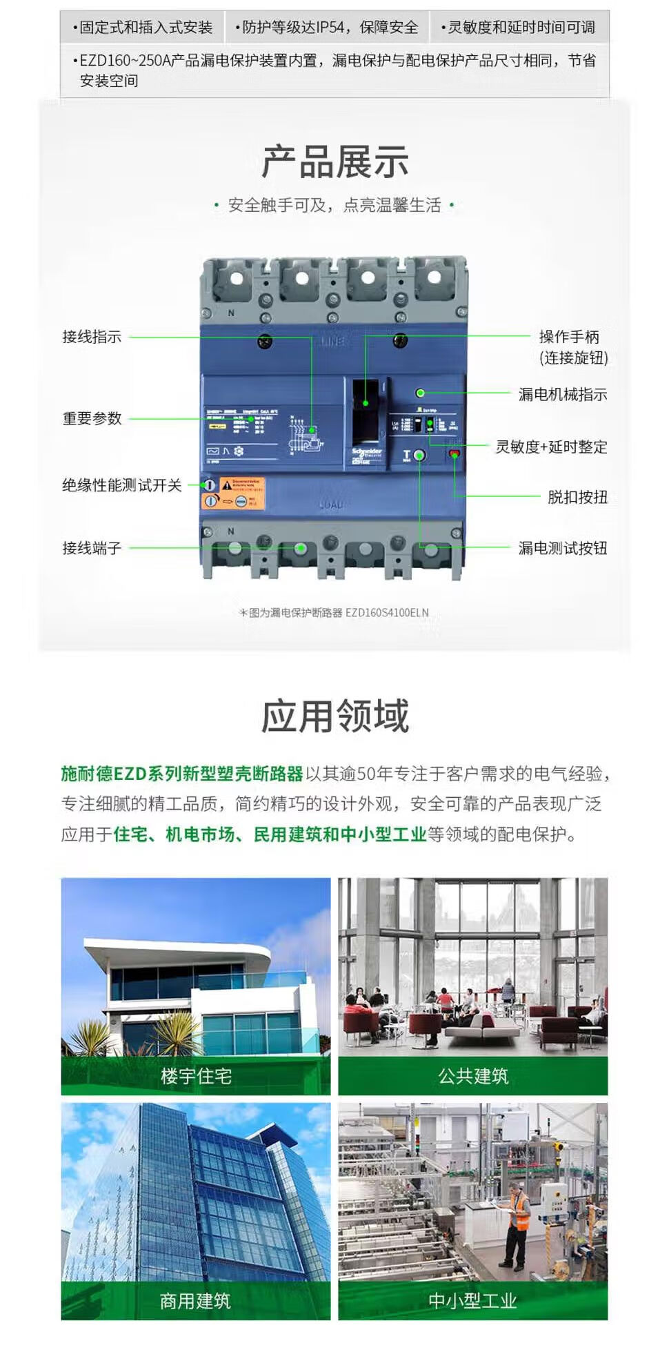 Schneider Electric plastic case circuit breaker EZD distribution protection total air switch high current air switch fixed without leakage protection EZD160E/3P160N