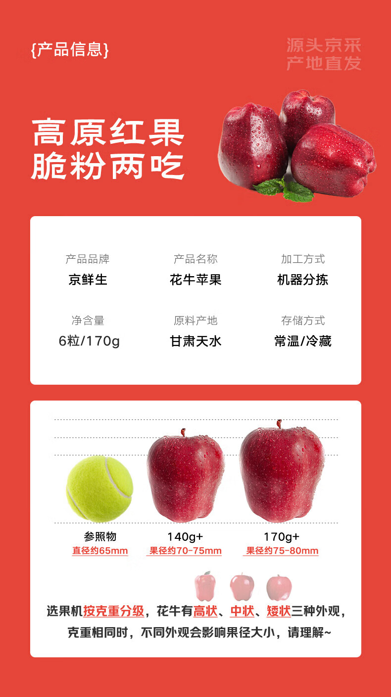 Jingxiansheng Tianshui Huaniu Apple 2kg, single fruit 170g+, fresh fruit straight from the source