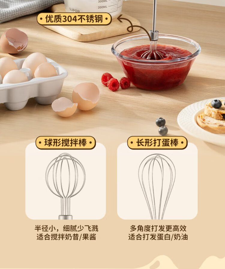 Supor egg beater household electric egg beater mini cream whipper baking hand mixer KGE01CX10