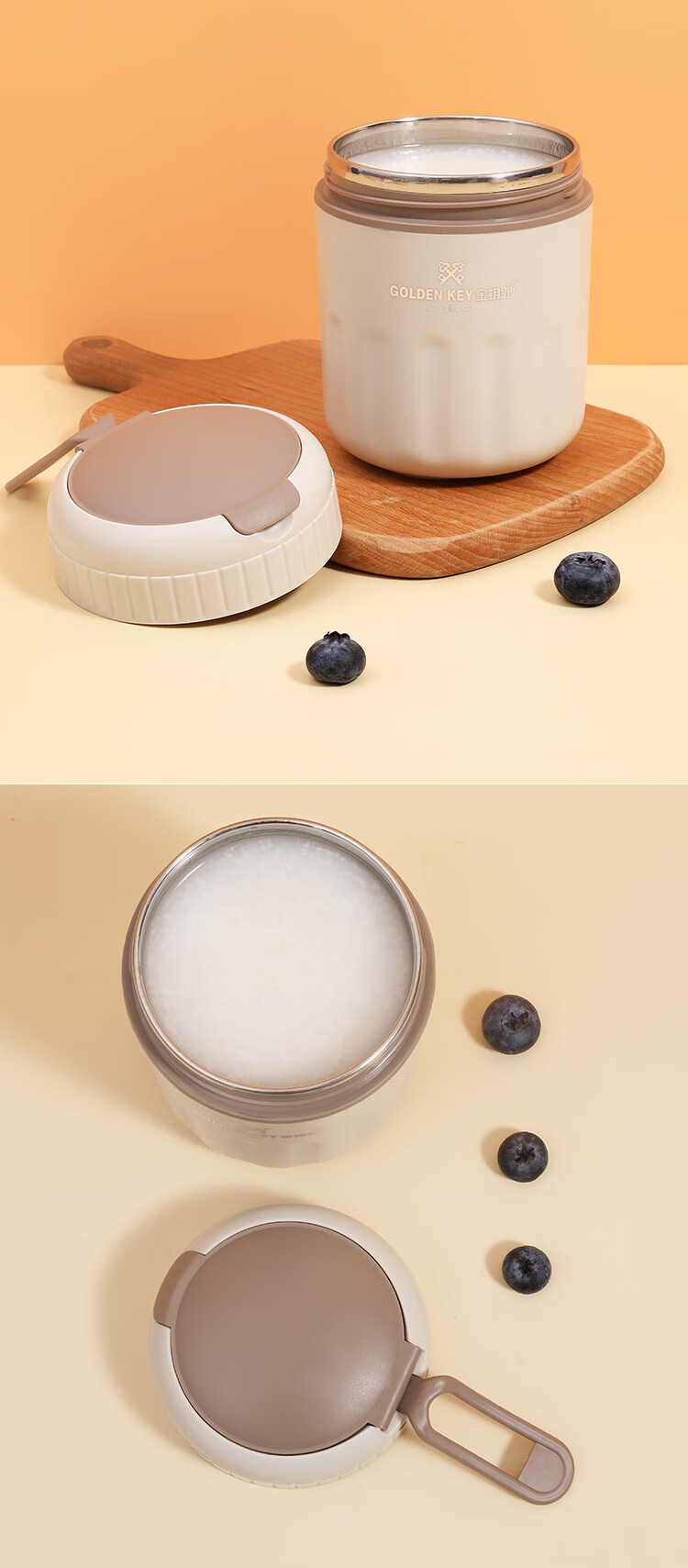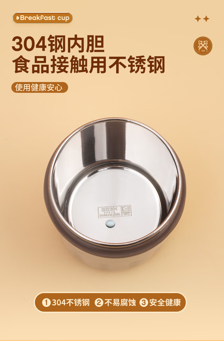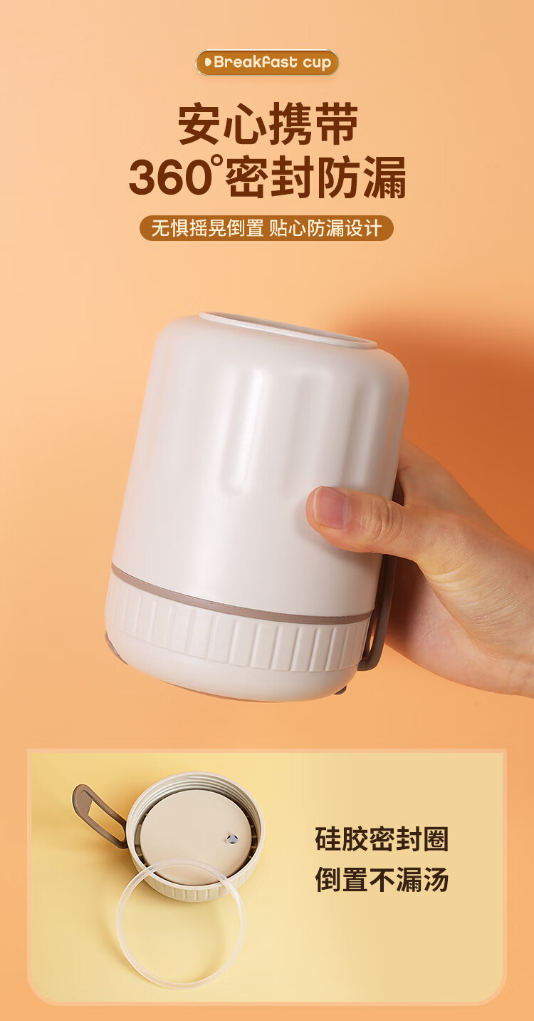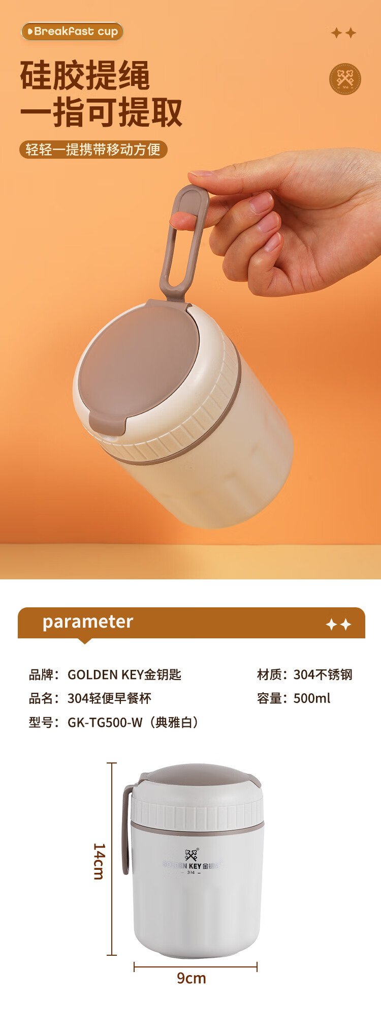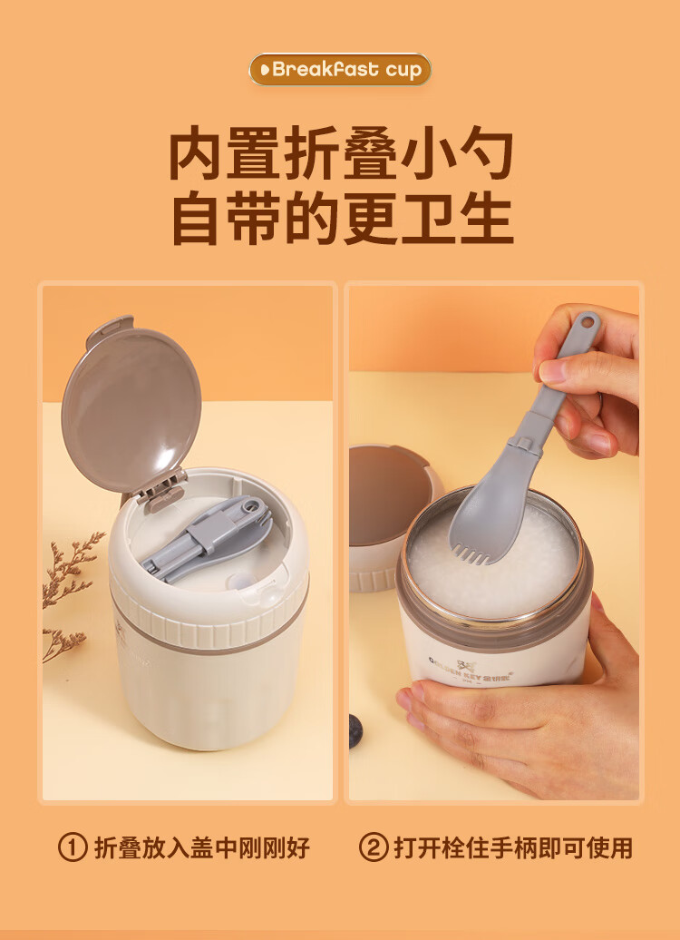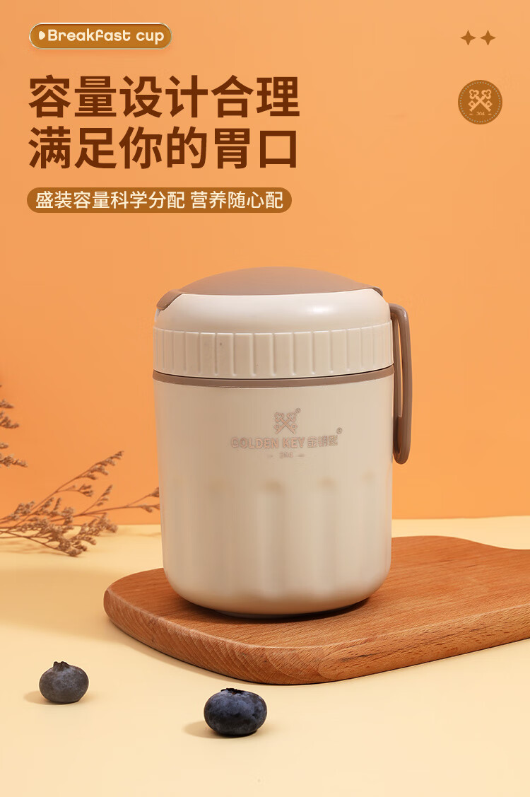 Golden Key 304 stainless steel 500ML breakfast cup soup can portable oatmeal cup milk cup (elegant white) GK-TG500-W