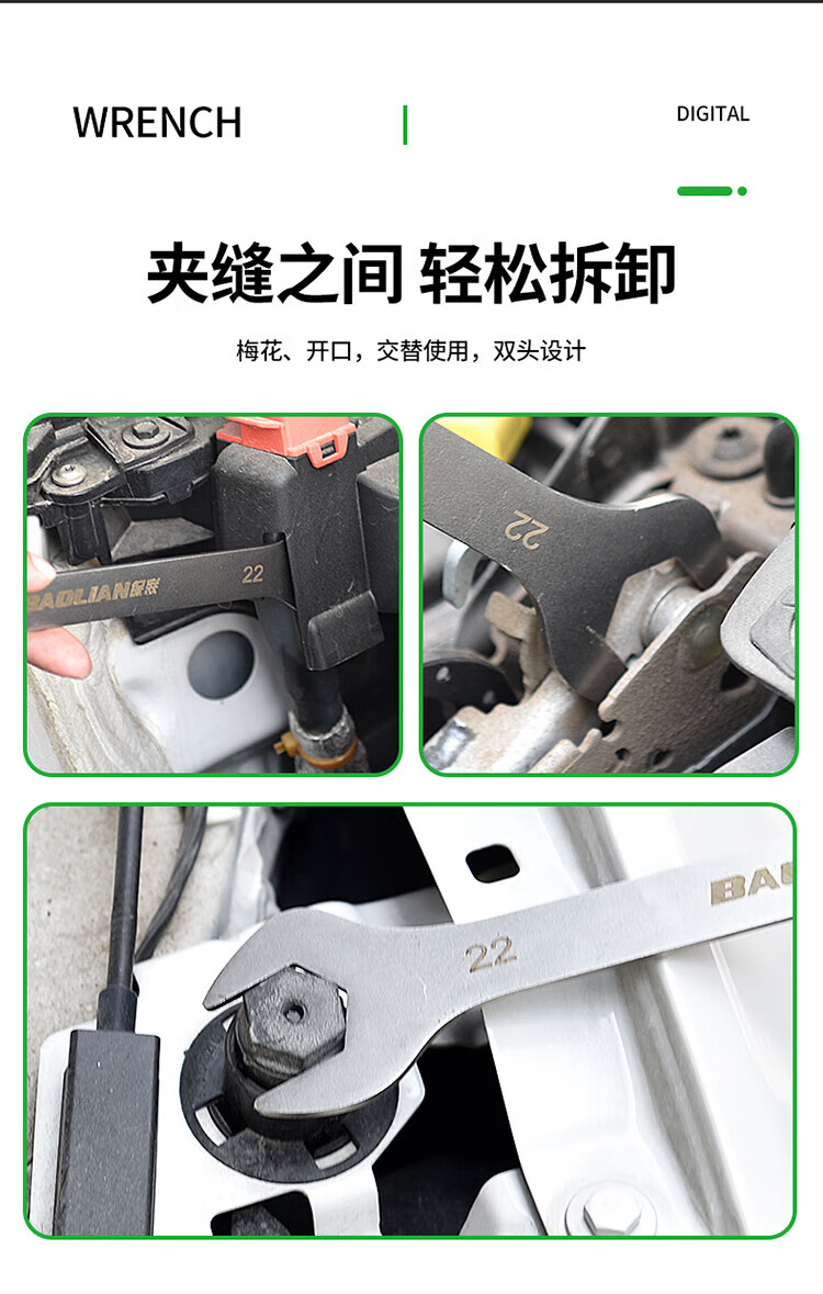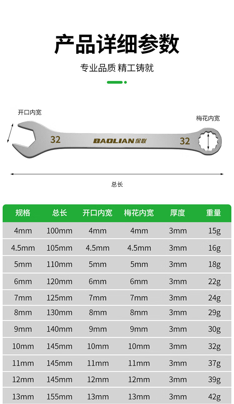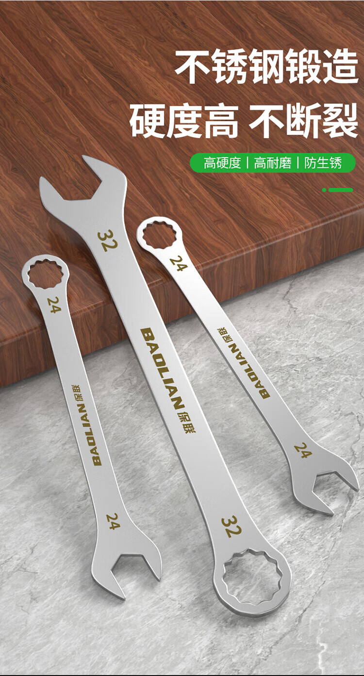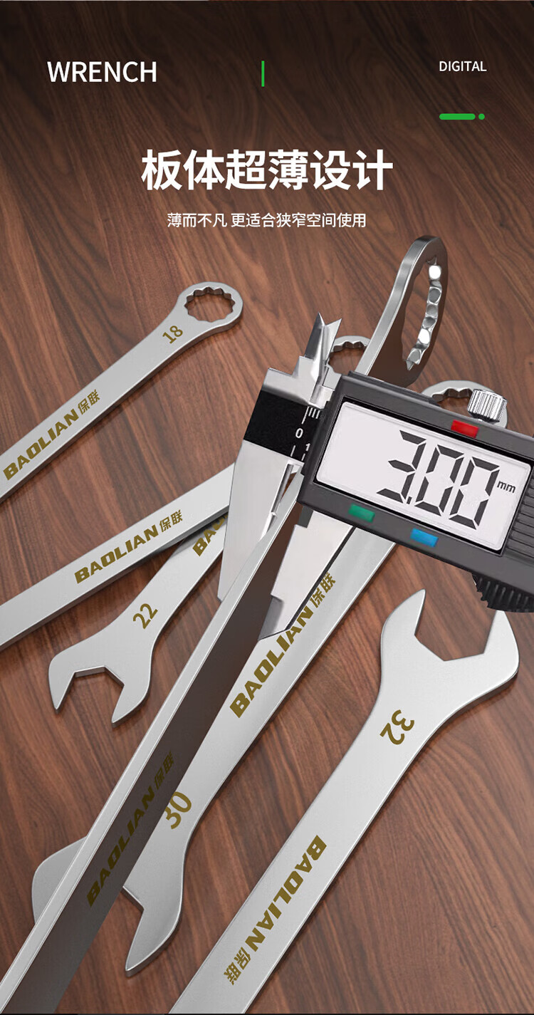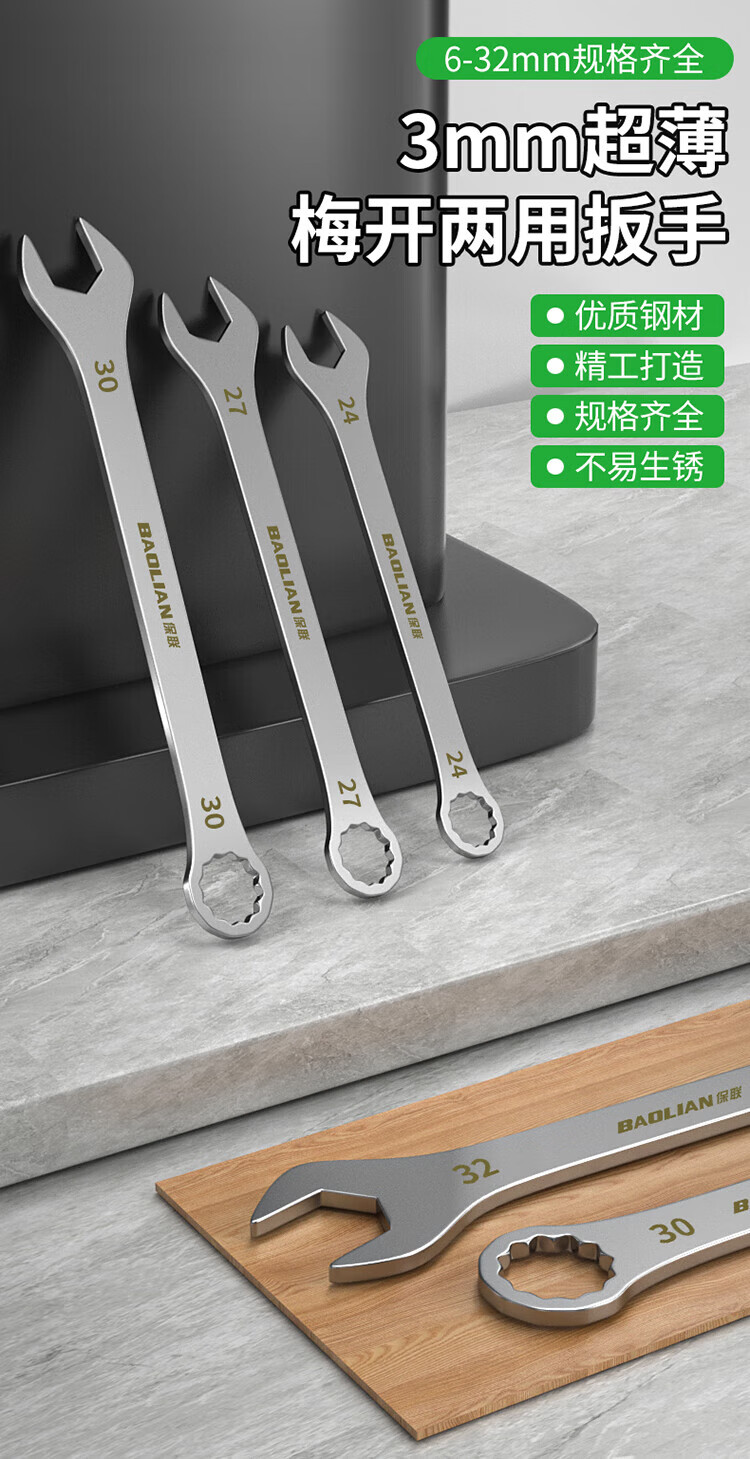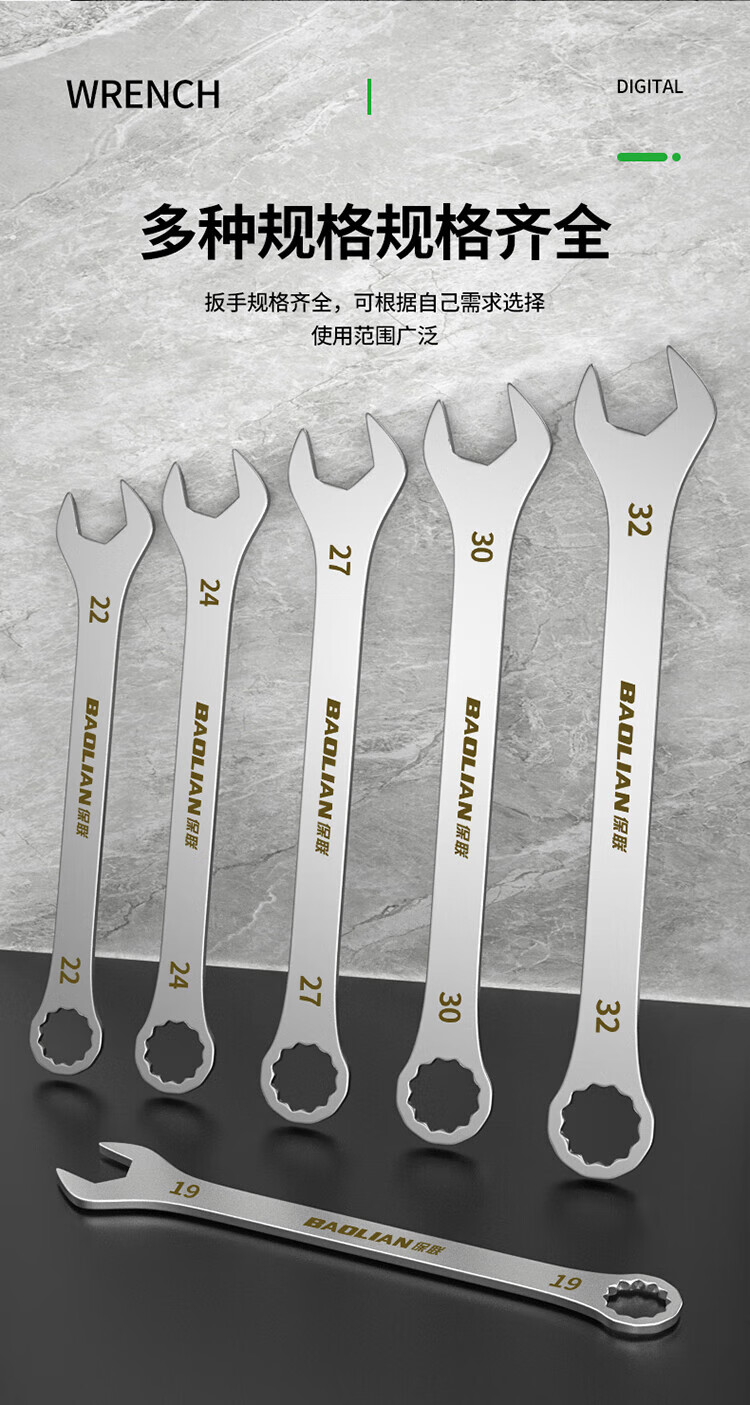 Baolian stainless steel ultra-thin dual-purpose wrench set wrench hardware quick plum blossom auto repair wrench (6-22) 8-piece set