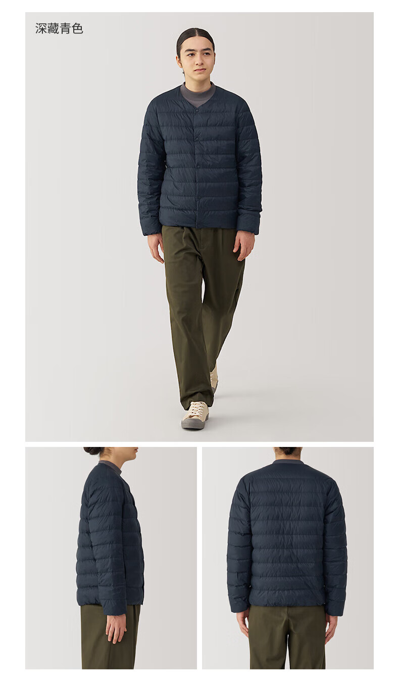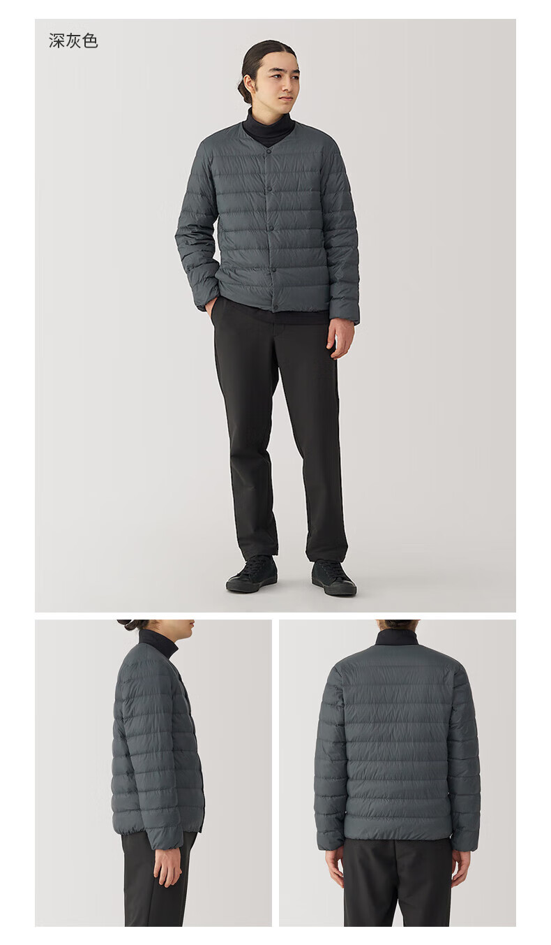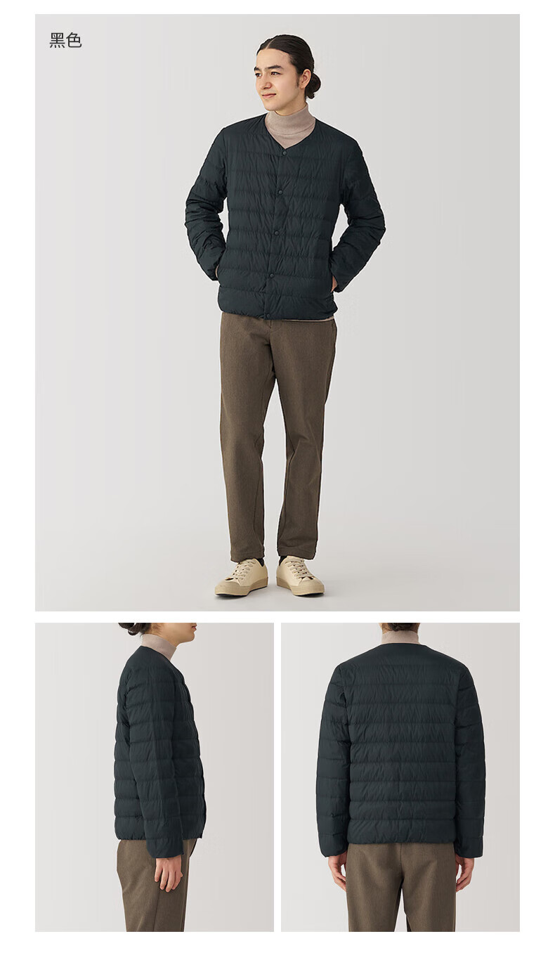 MUJI Men's Lightweight Down Portable Collarless Jacket Black XL