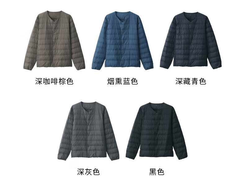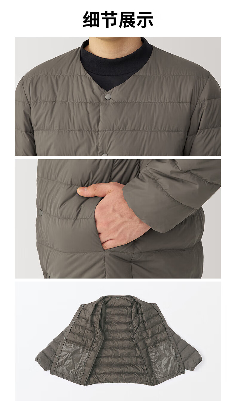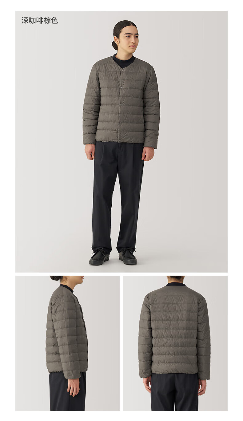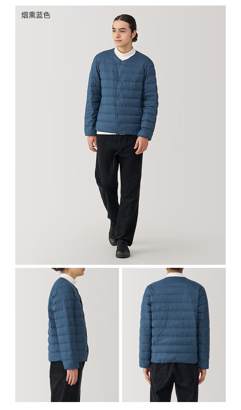 MUJI Men's Lightweight Down Portable Collarless Jacket Black XL