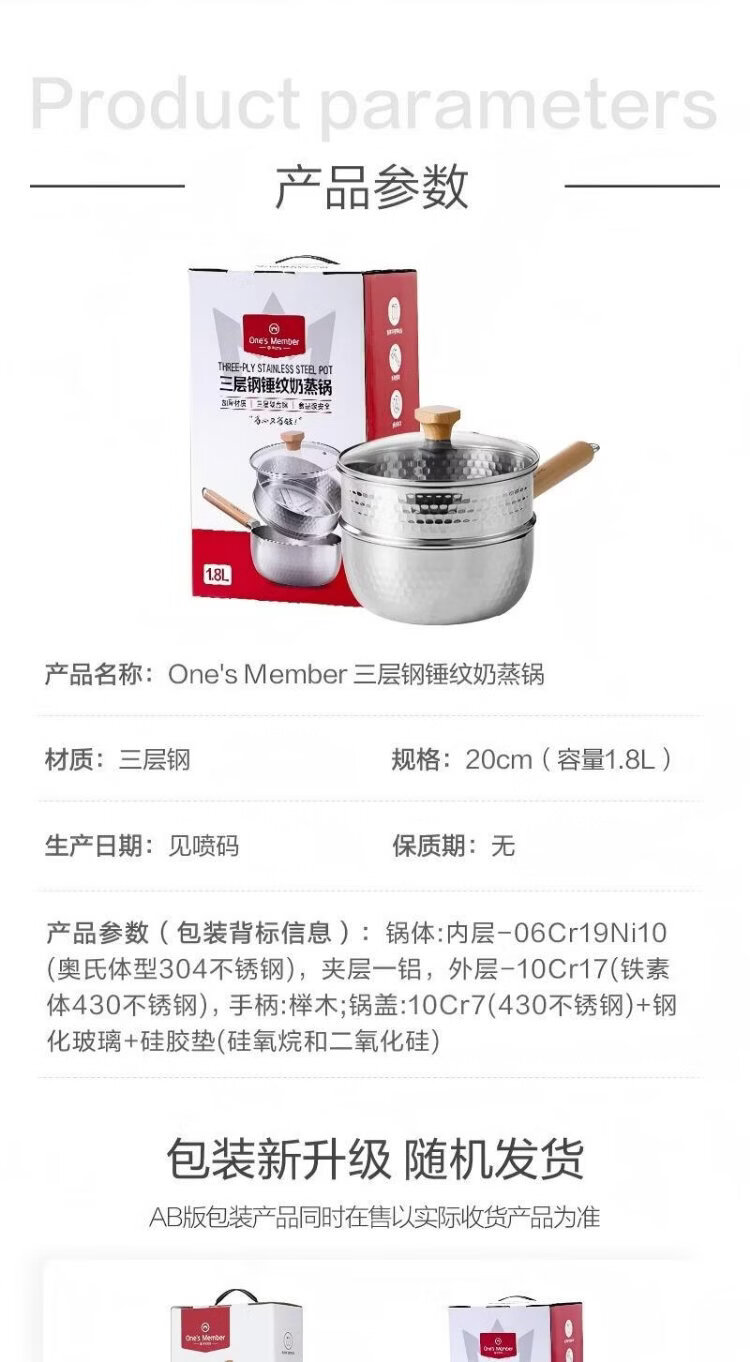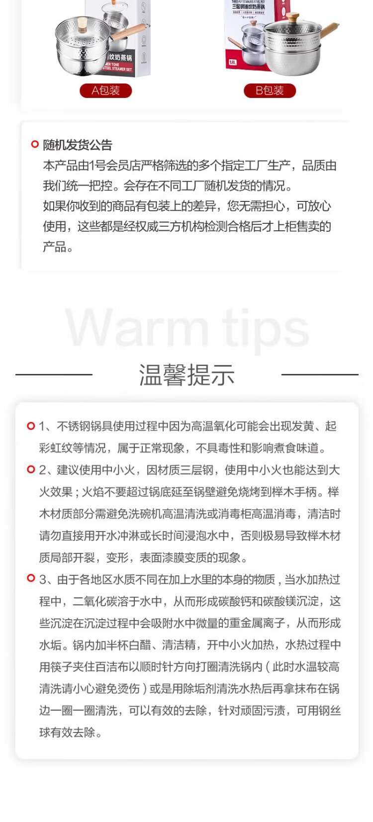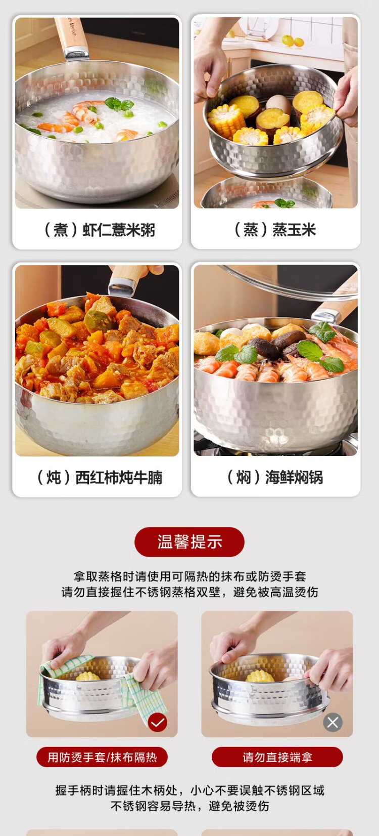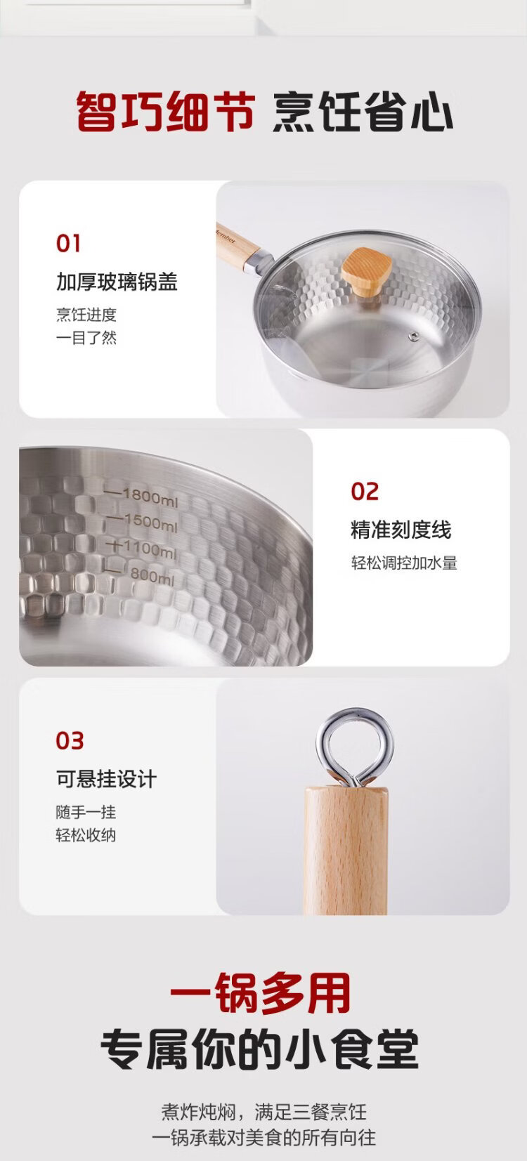 Member Store No. 1 20cm uncoated 3-layer steel thickened 304 stainless steel Japanese-style snow flat milk steamer baby food supplement soup pot instant noodle pot