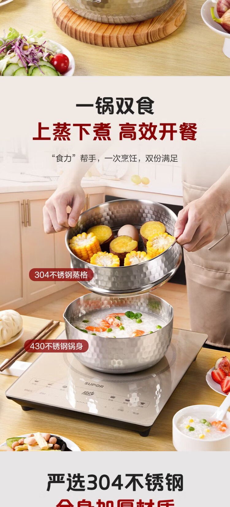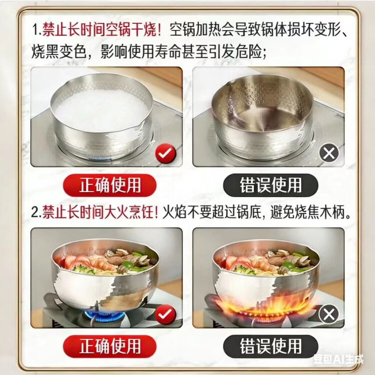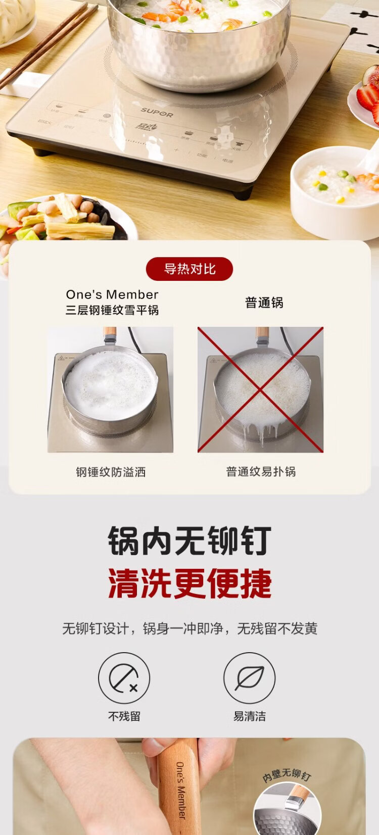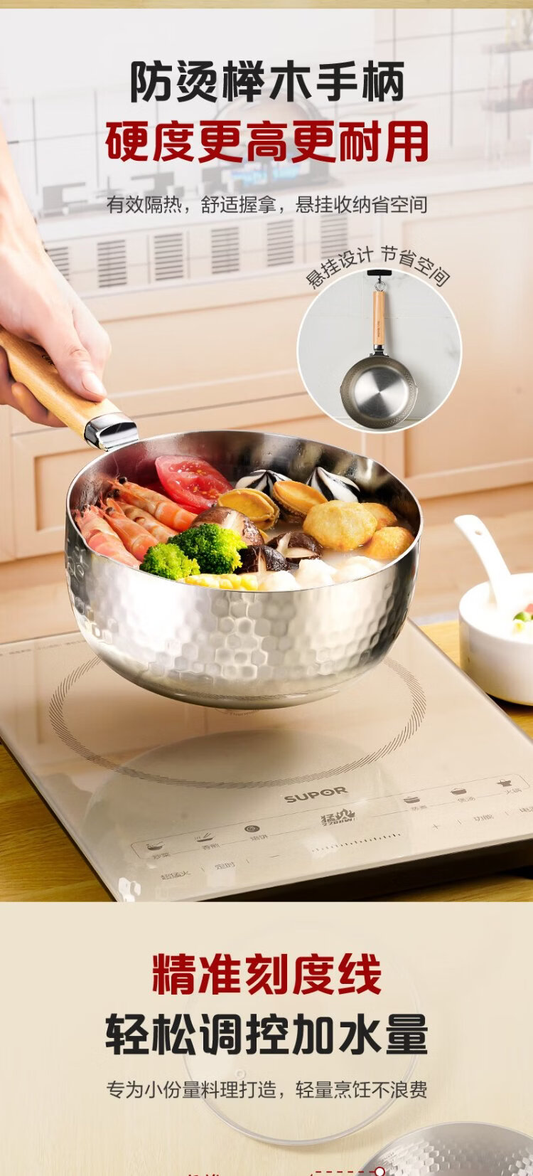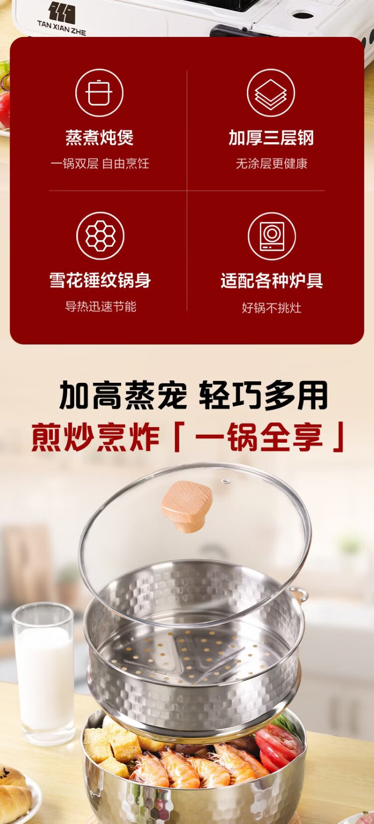 Member Store No. 1 20cm uncoated 3-layer steel thickened 304 stainless steel Japanese-style snow flat milk steamer baby food supplement soup pot instant noodle pot