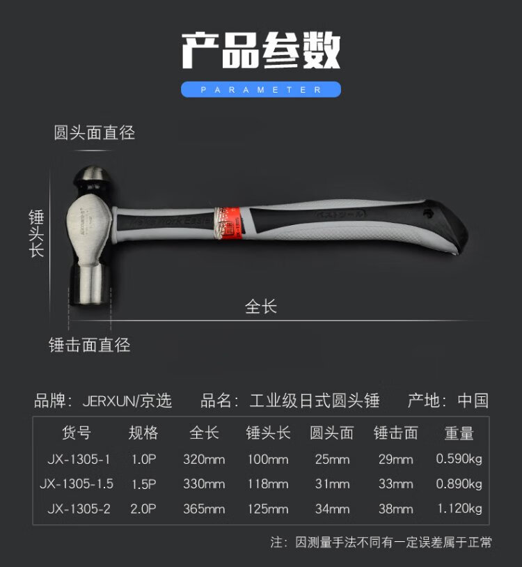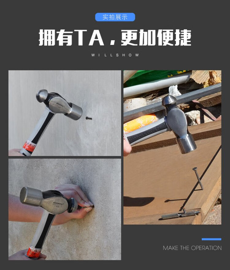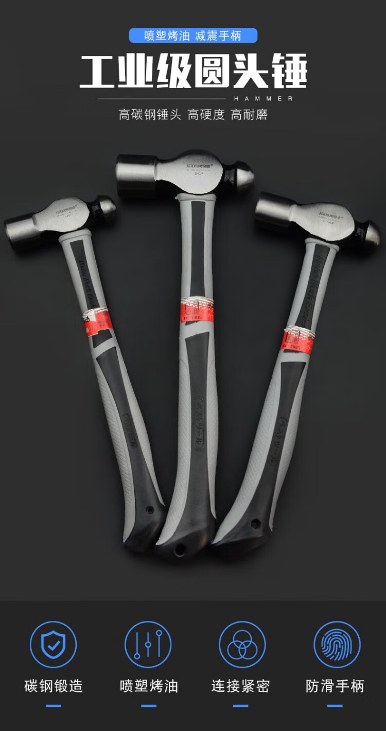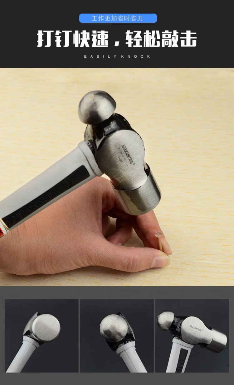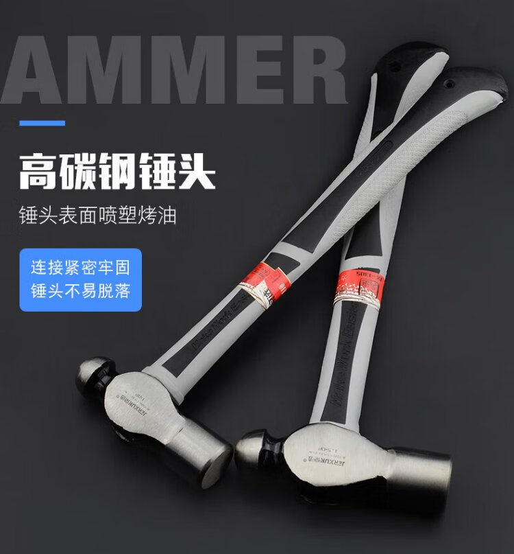 JERXUN 1P round head hammer, masonry hammer, small hammer, household hand hammer, small hammer, carpentry hammer, installation hammer, safety escape hammer