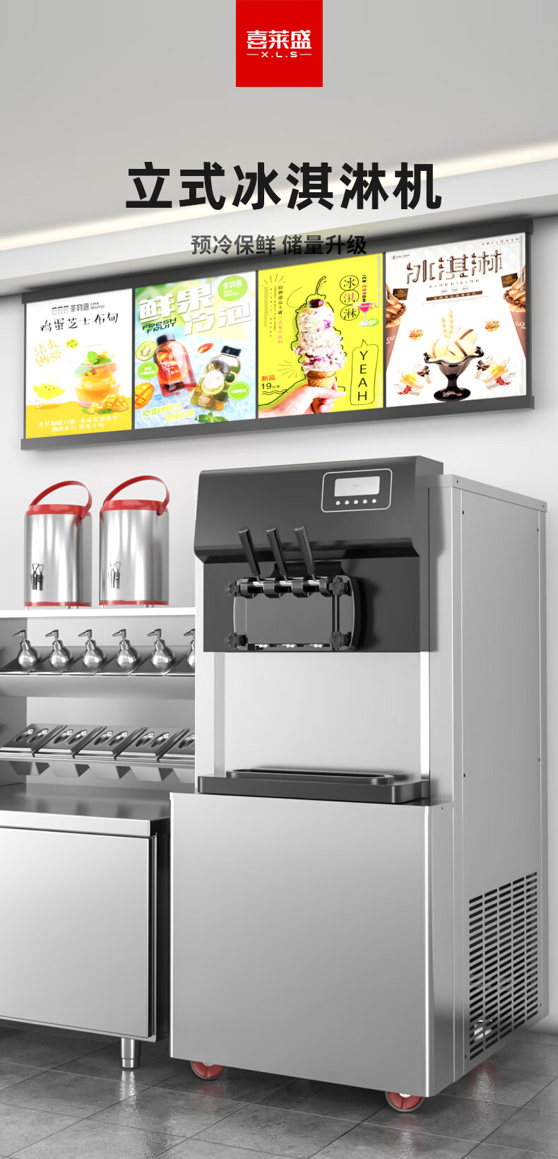 Xilaisheng Ice Cream Machine Commercial Ice Cream Machine Vertical Fully Automatic Cone Sundae Soft Desktop 50L Large Output 35-45 Pieces|Silver BQL-4000