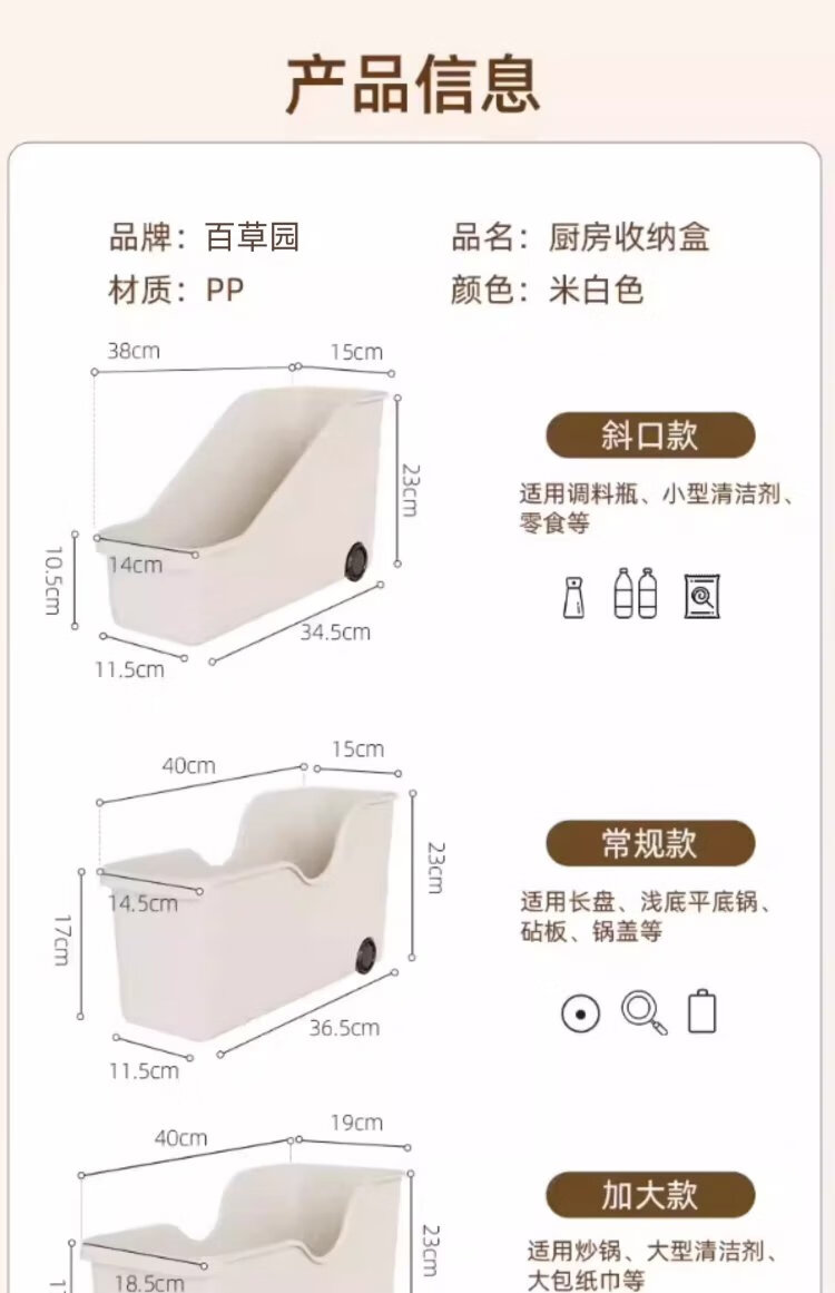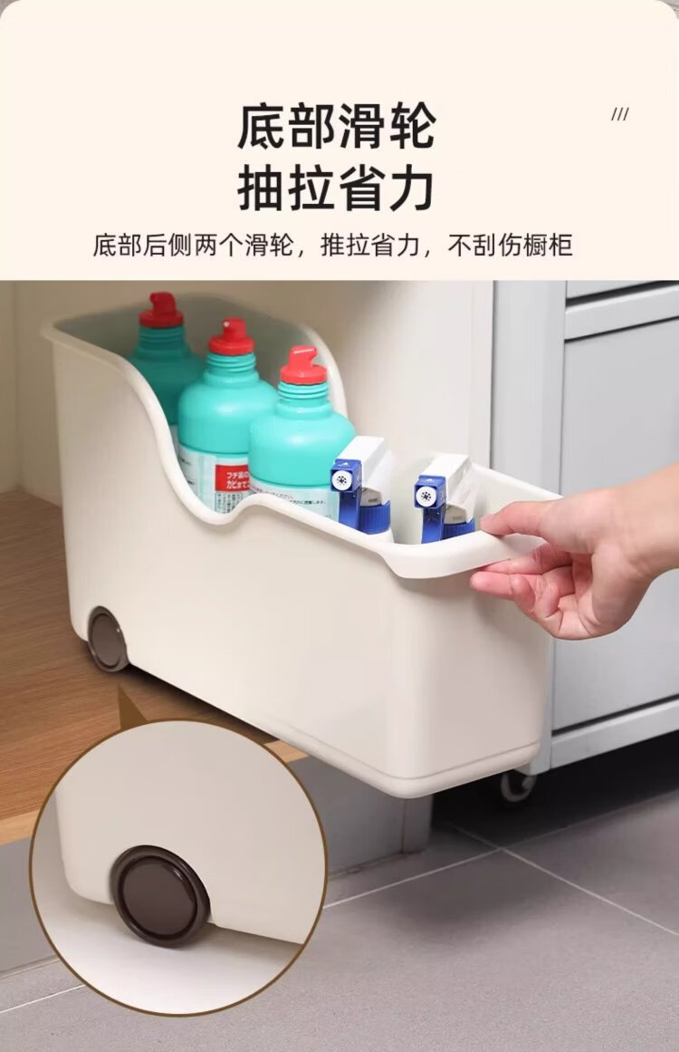 Baicaoyuan kitchen rack cabinet storage box with pulley pot storage box under sink storage basket extra wide