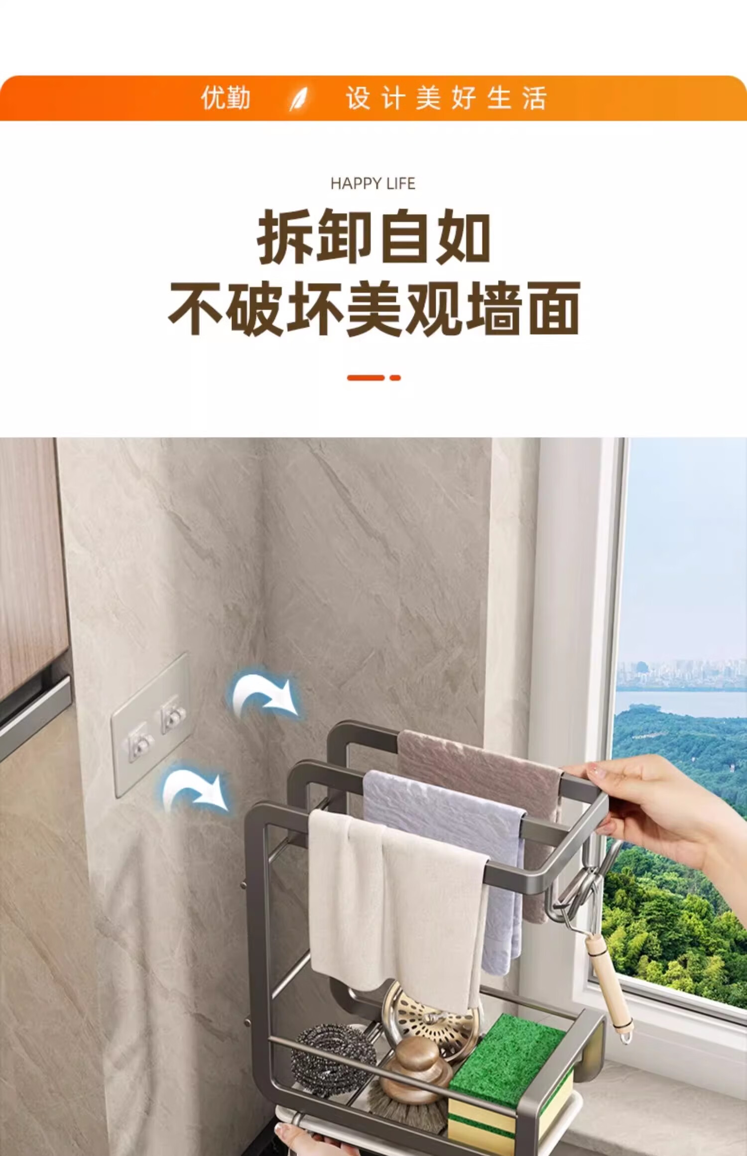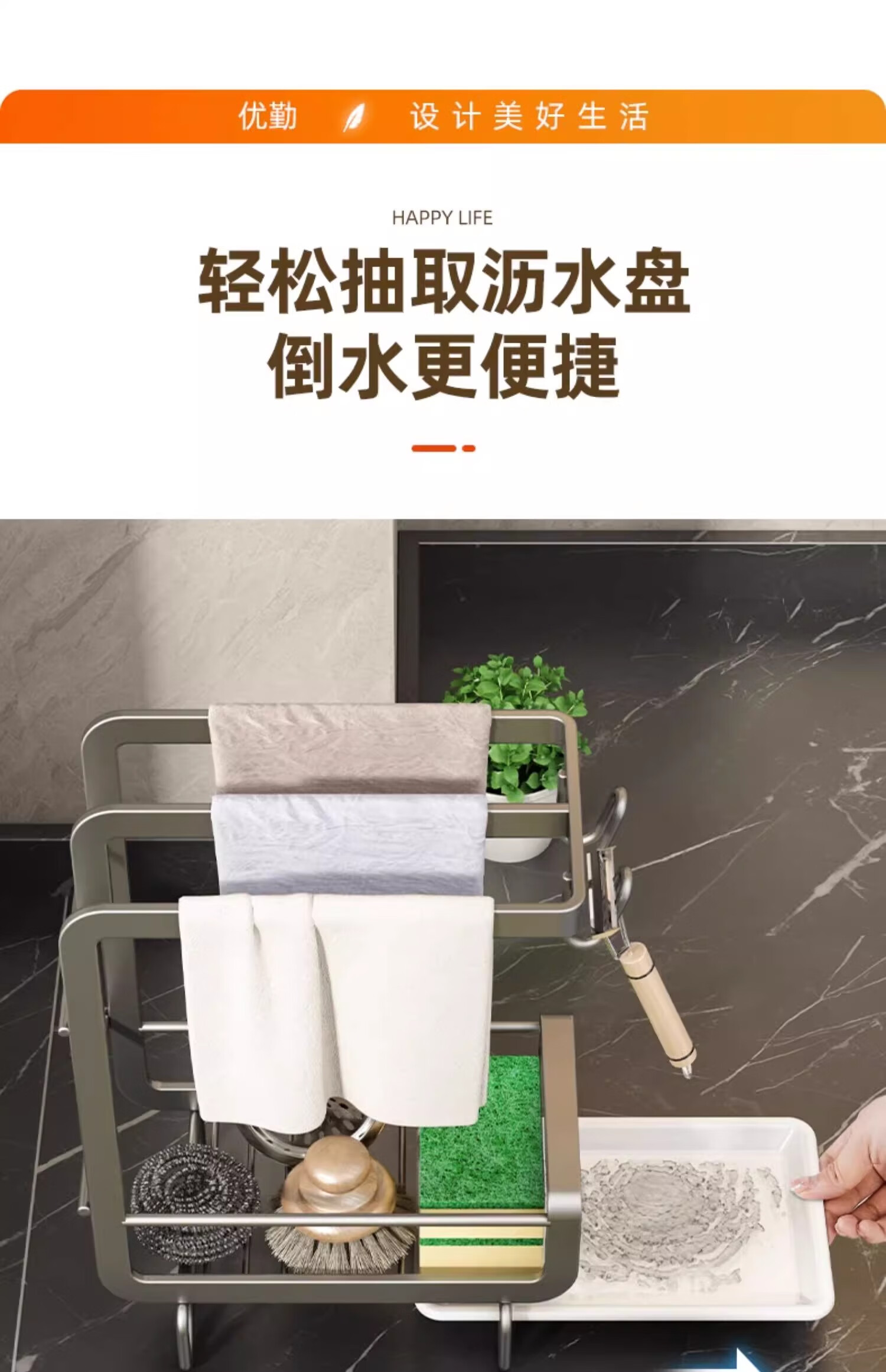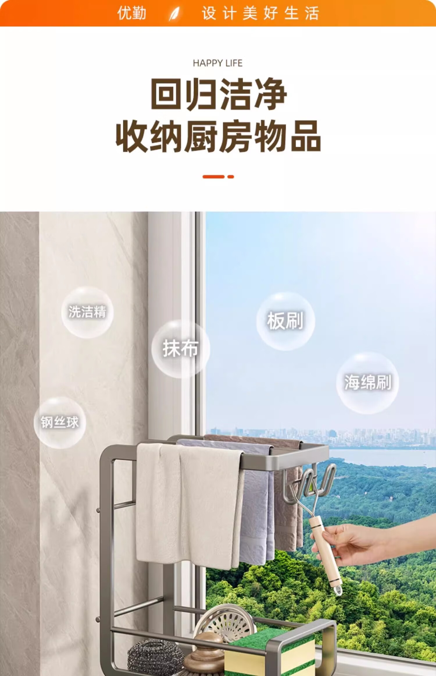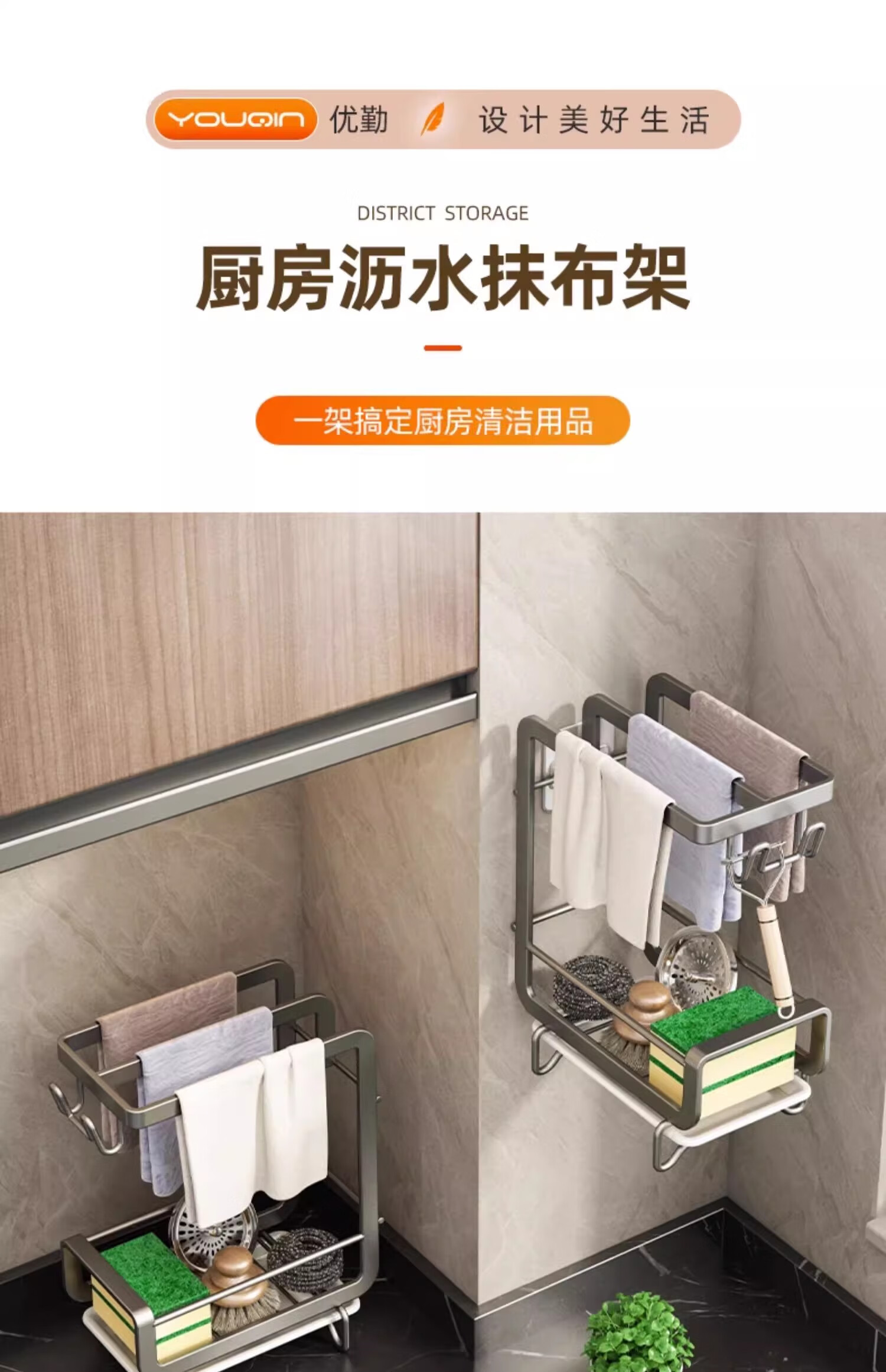 Youqin rag rack, no punching, kitchen rack, sink, dishwasher, drain rack, countertop wall hanging basket, steel wire ball storage rack