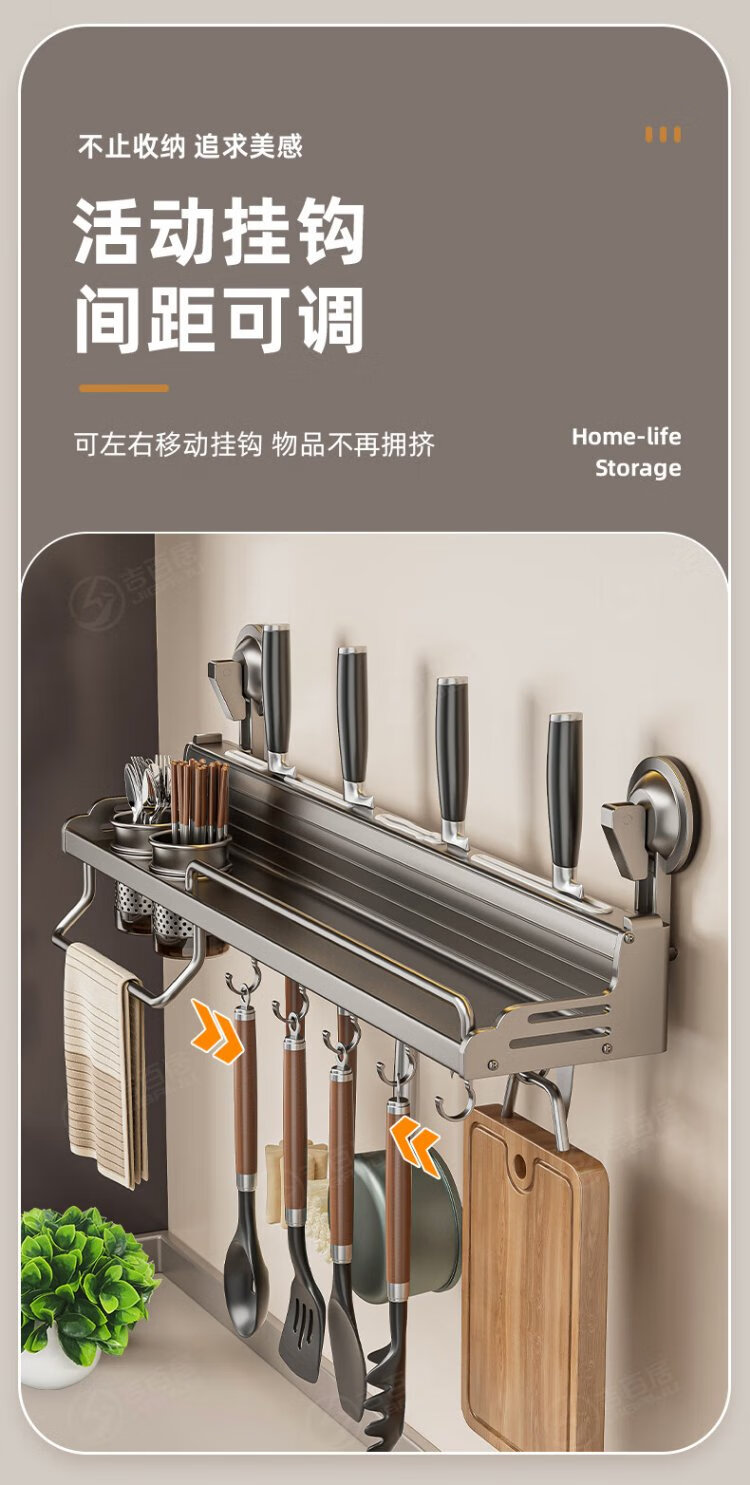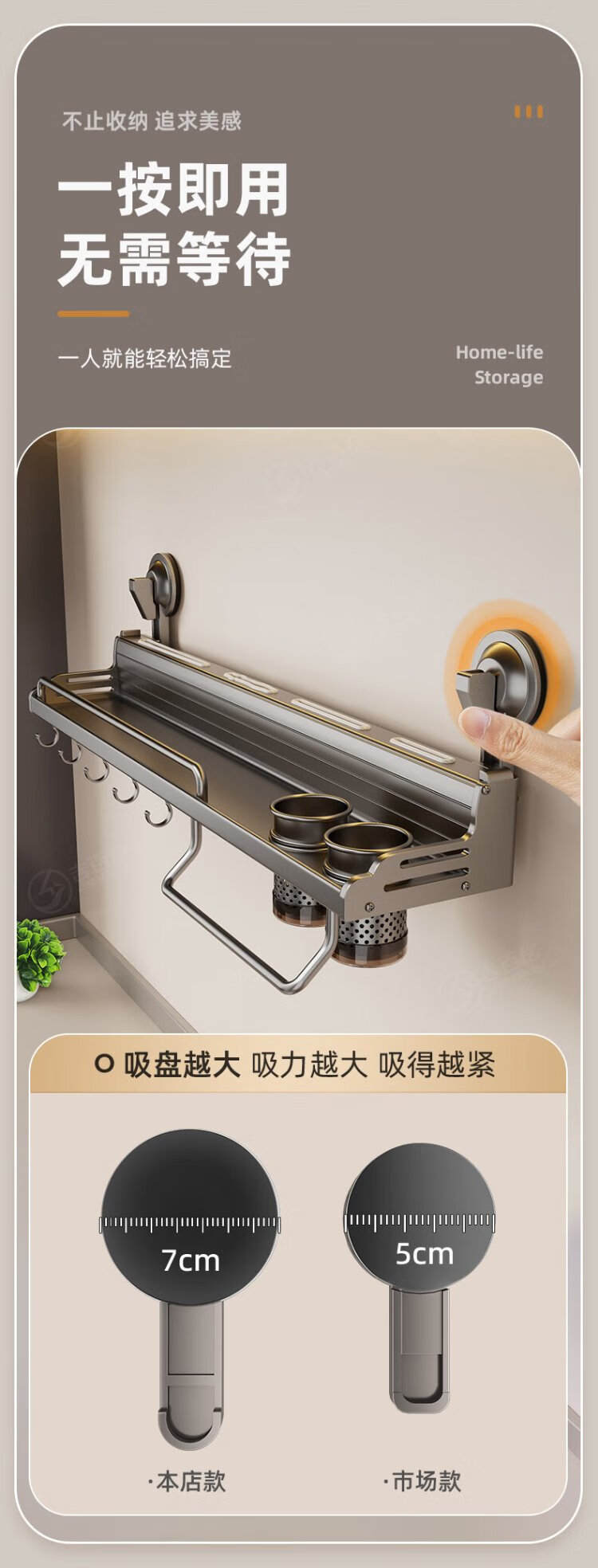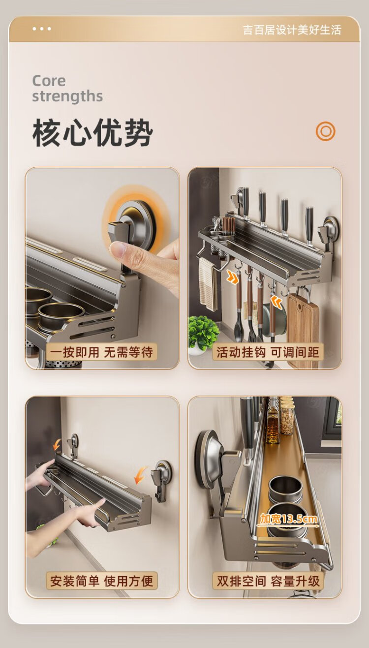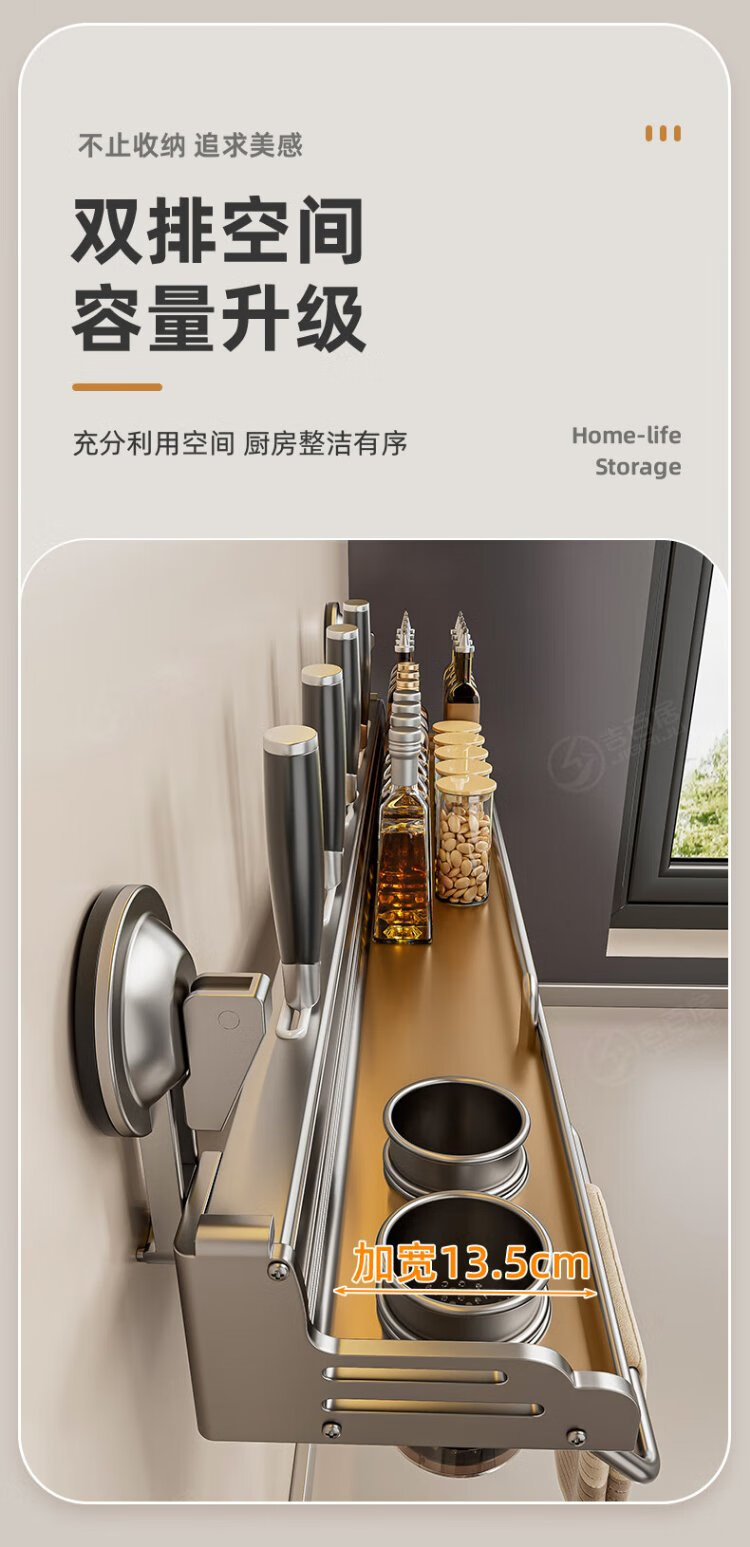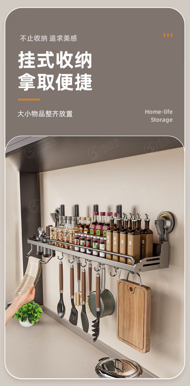 Jibaiju kitchen suction cup storage rack without punching seasoning spoon knife holder integrated wall-mounted household multi-functional storage rack