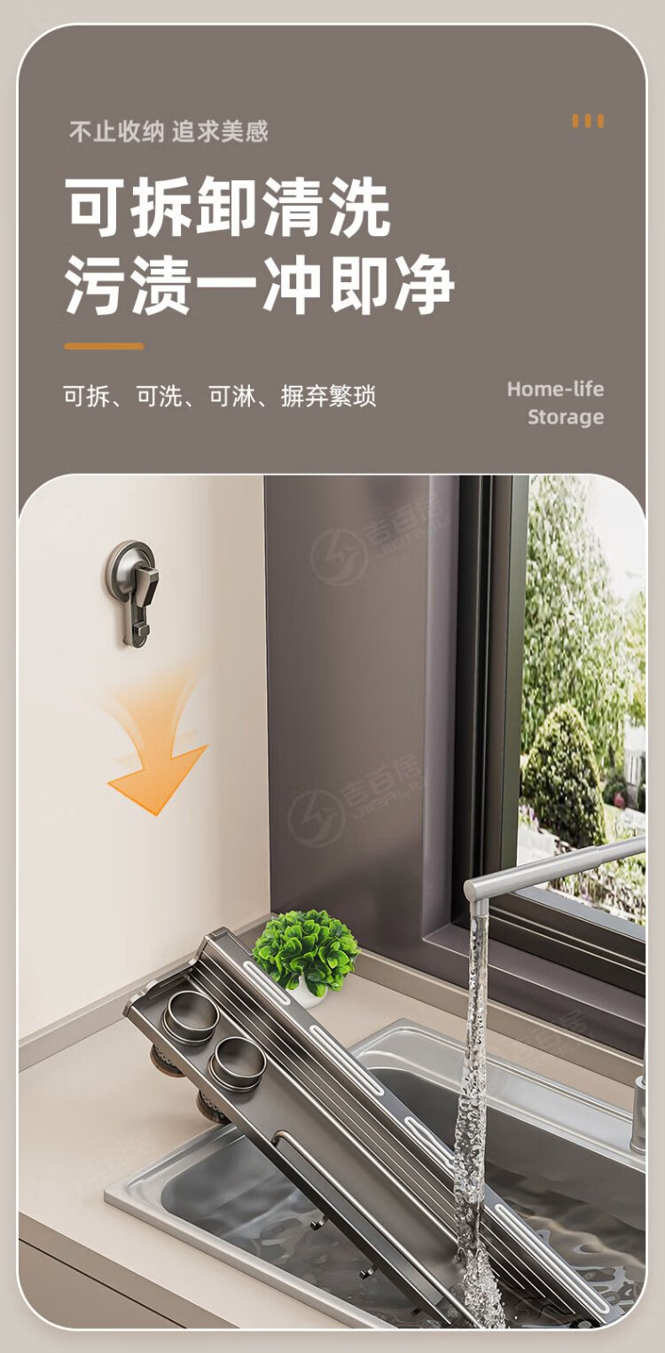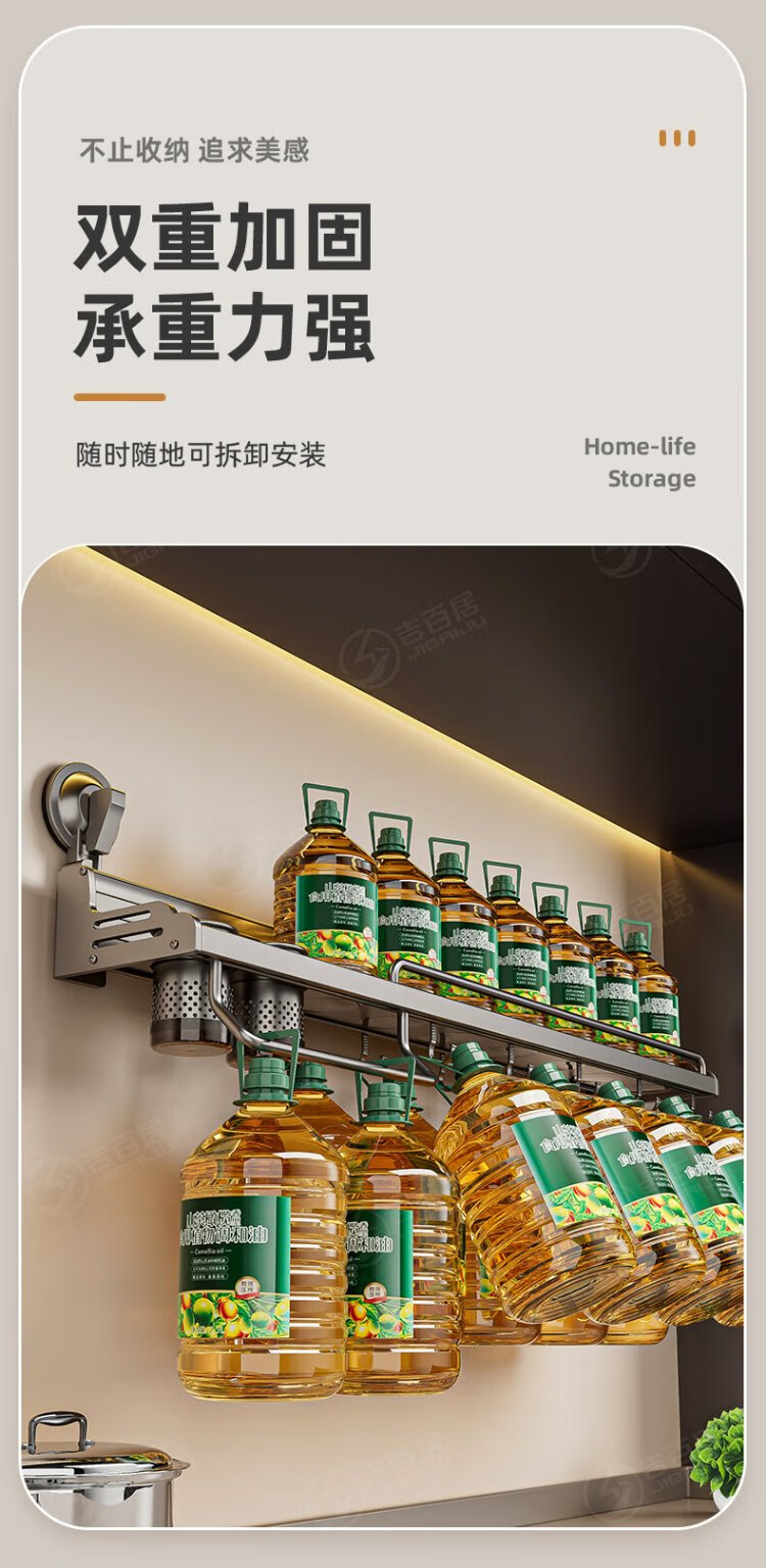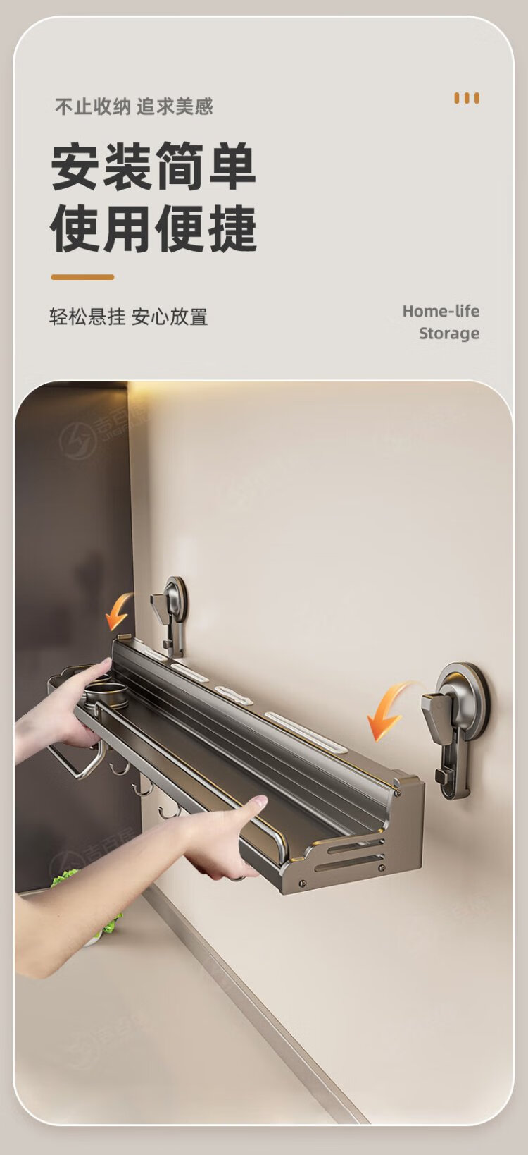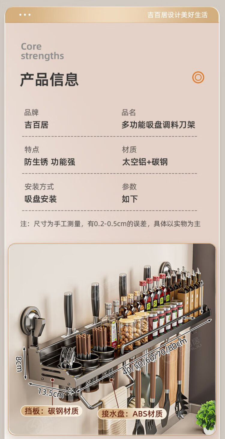 Jibaiju kitchen suction cup storage rack without punching seasoning spoon knife holder integrated wall-mounted household multi-functional storage rack