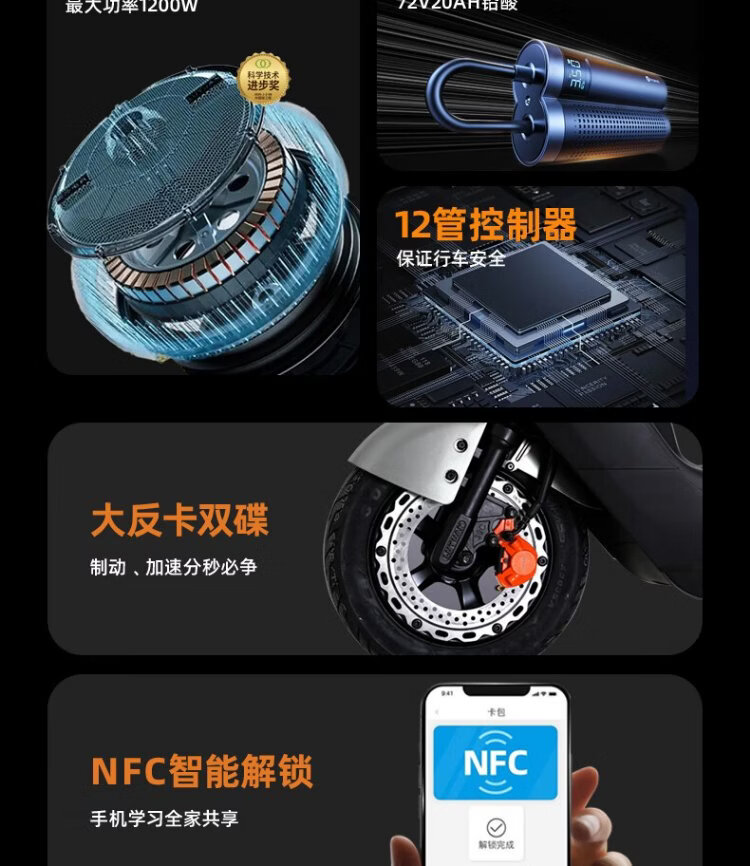 Luyuan electric motorcycle Recommended for the life you long for Tornado battery life 73km - 6 lead-acid batteries - 1200W motor hydraulic shock absorption 29L large capacity seat bucket white