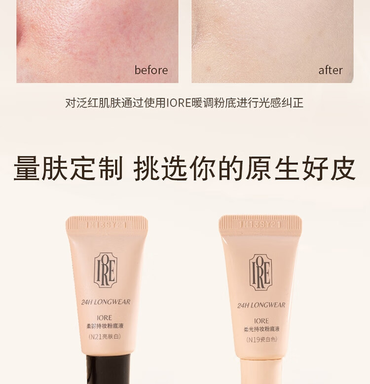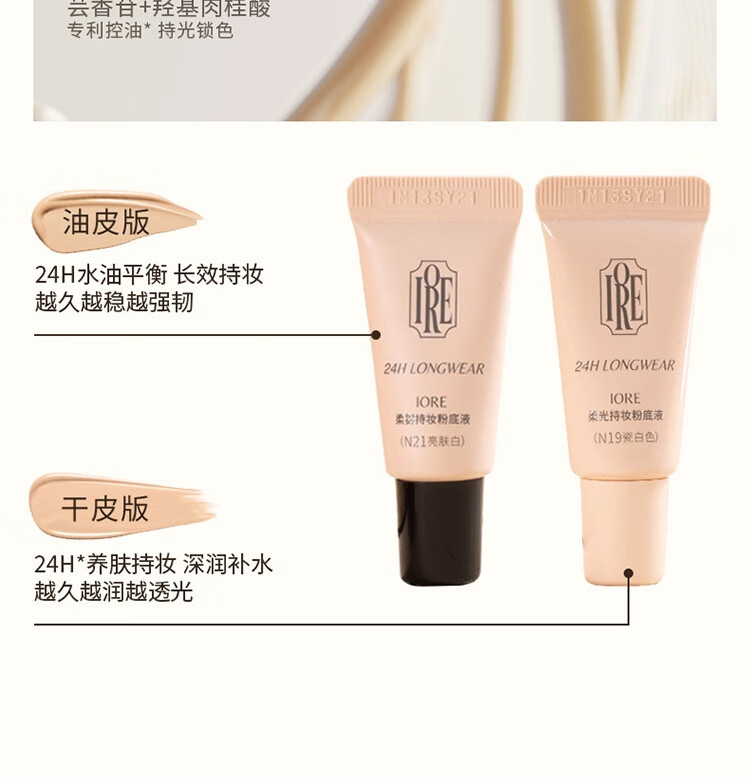 IORE soft light long-lasting liquid foundation, long-lasting, moisturizing, non-drying, light, delicate and compliant for combination dry skin N23 natural white 5g
