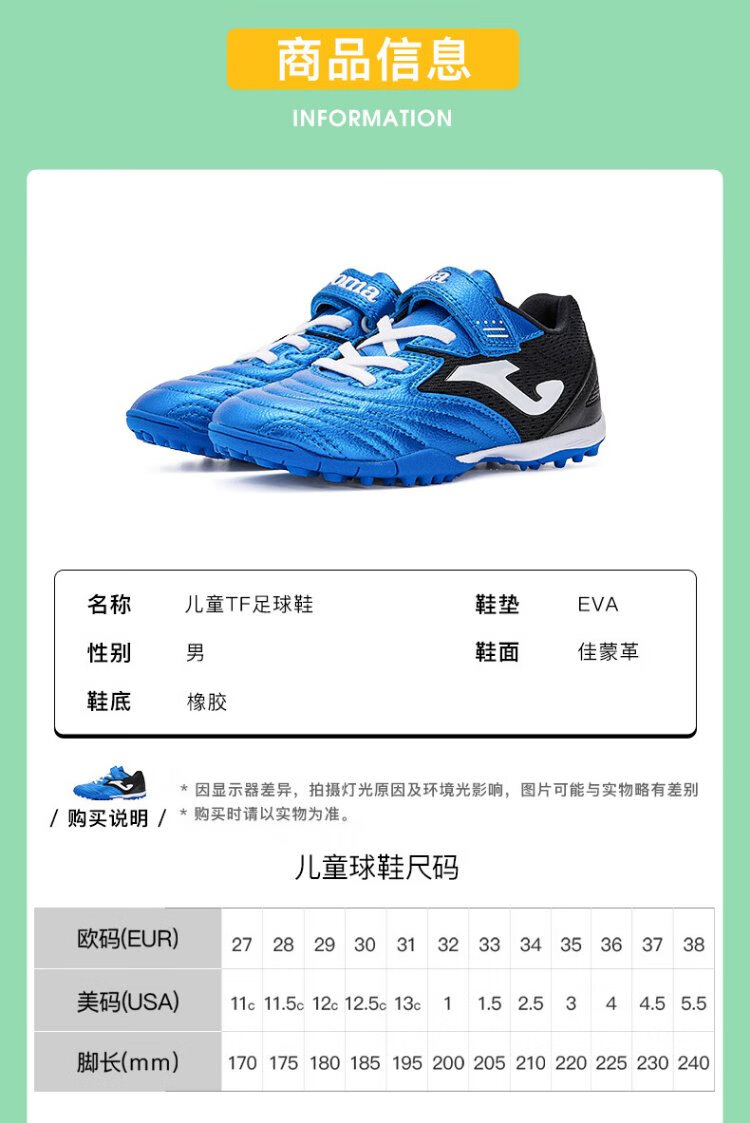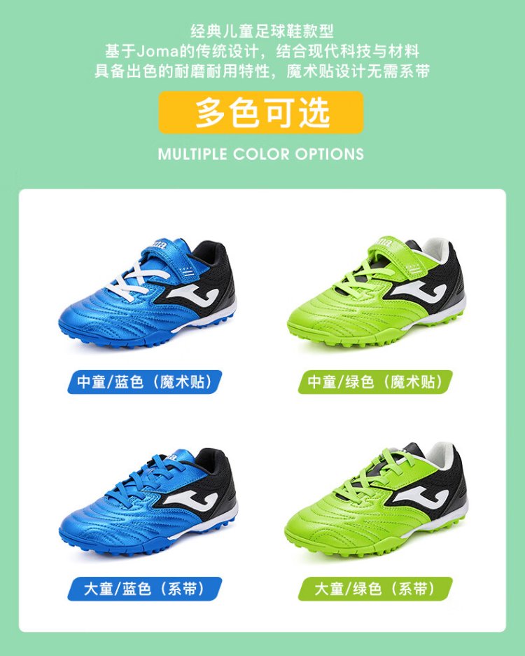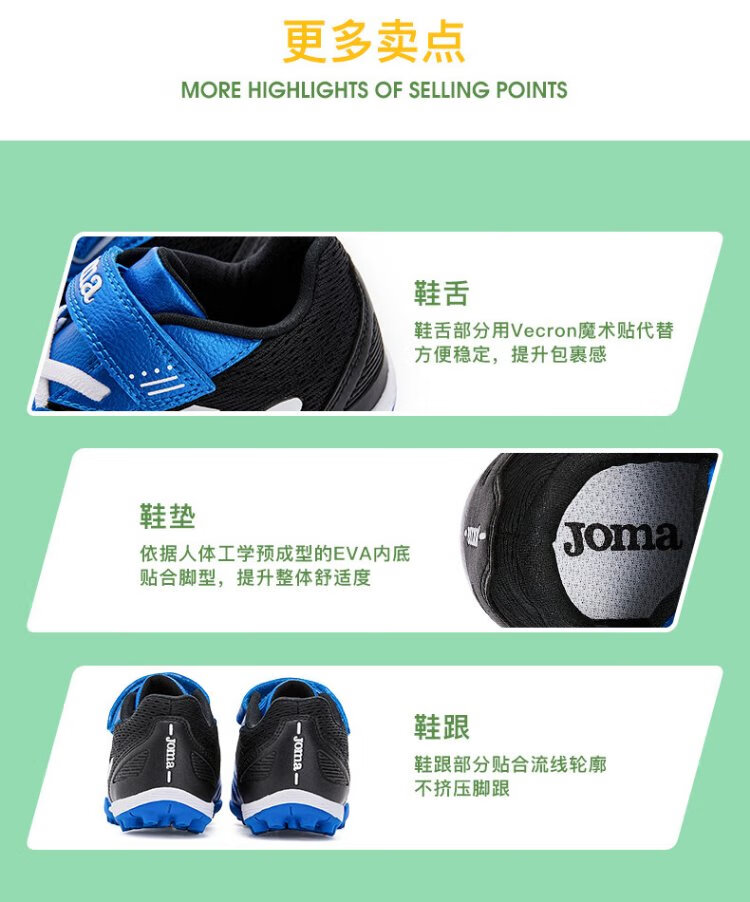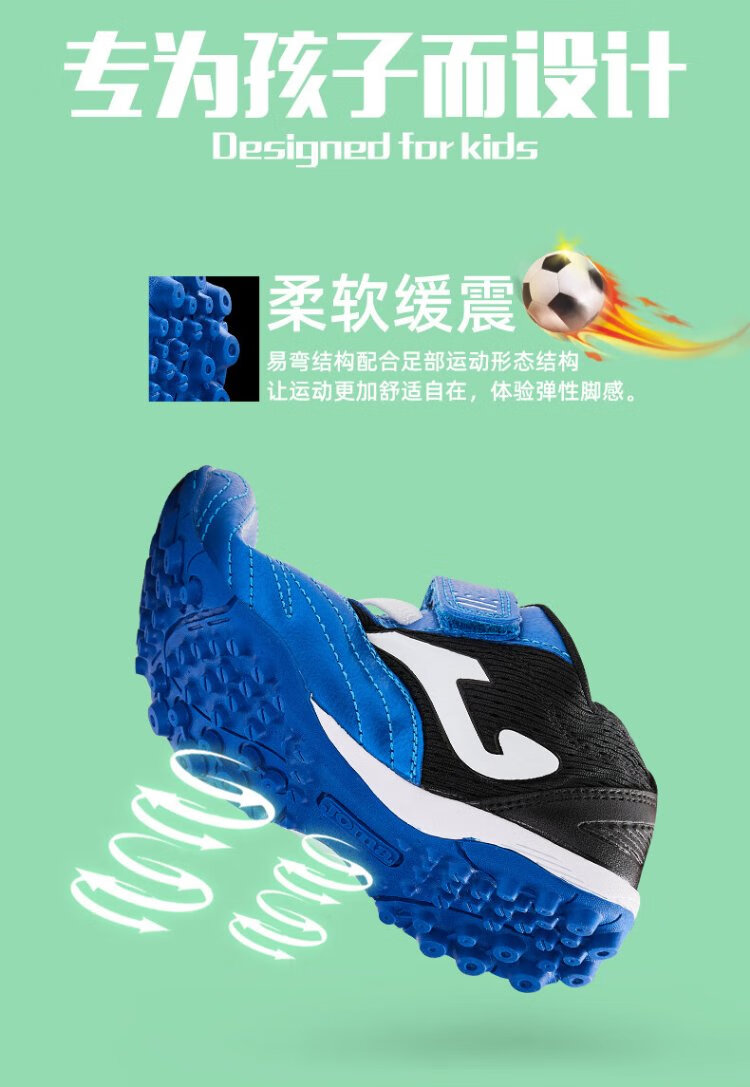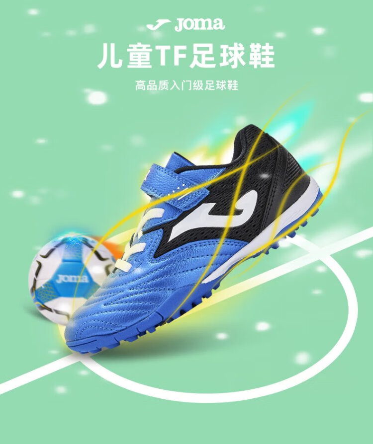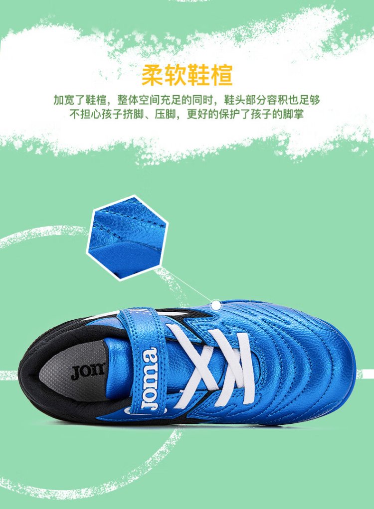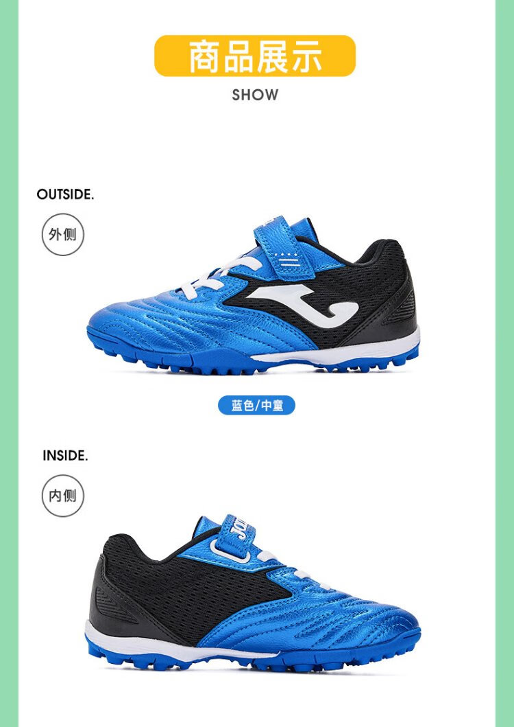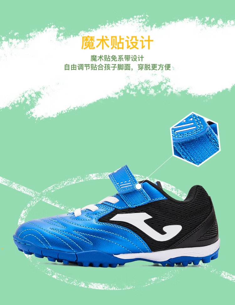 JOMA Velcro children's football shoes TF broken nails youth primary school students professional competition football training shoes blue and black 34