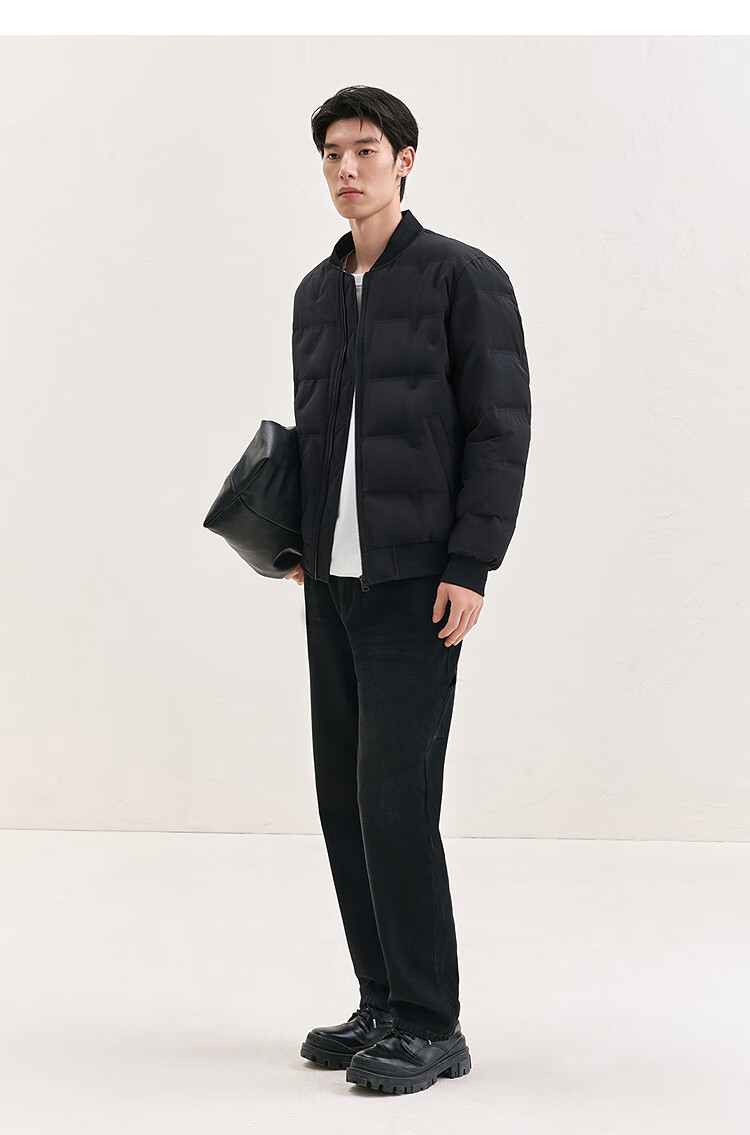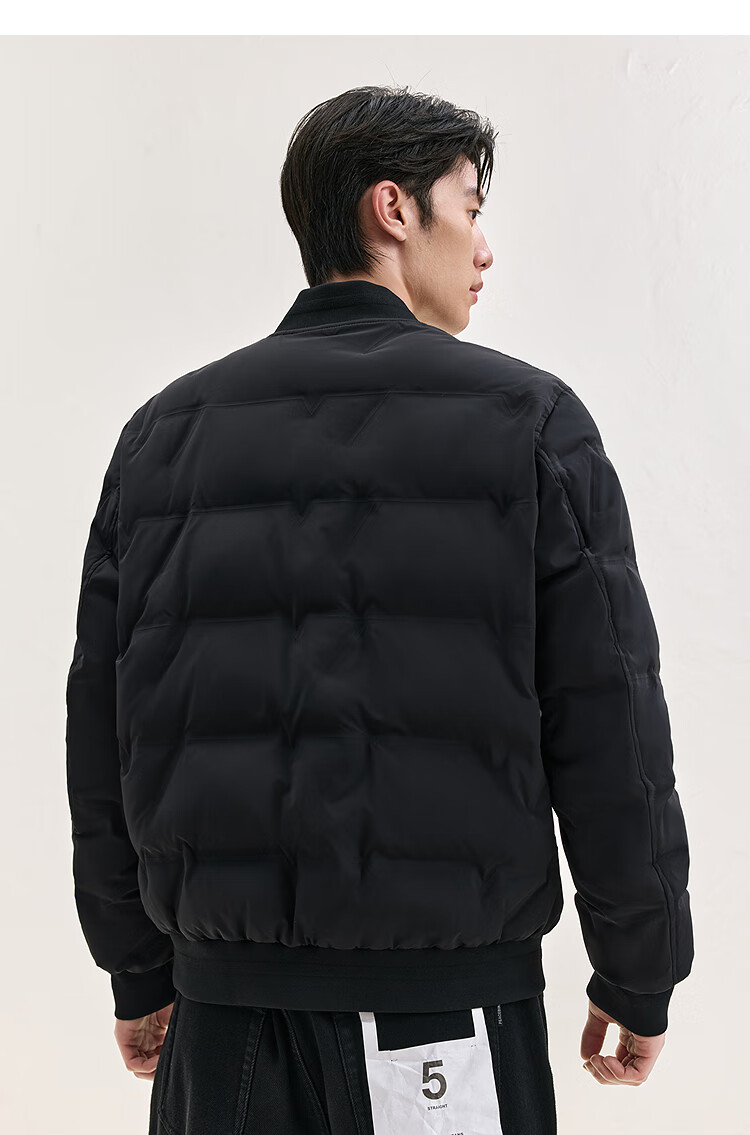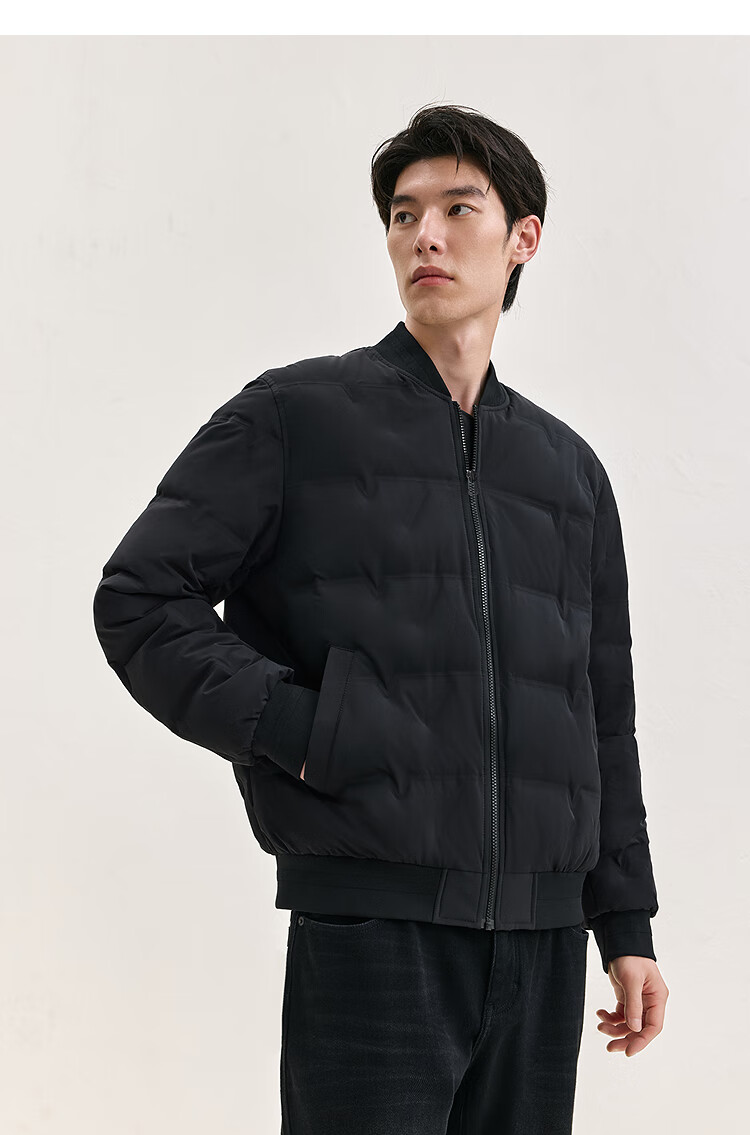 PEACEBIRD Men's Down Jacket Lightweight Men's Short Winter Warm and Coldproof Baseball Collar Jacket Black L