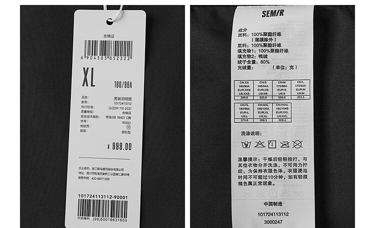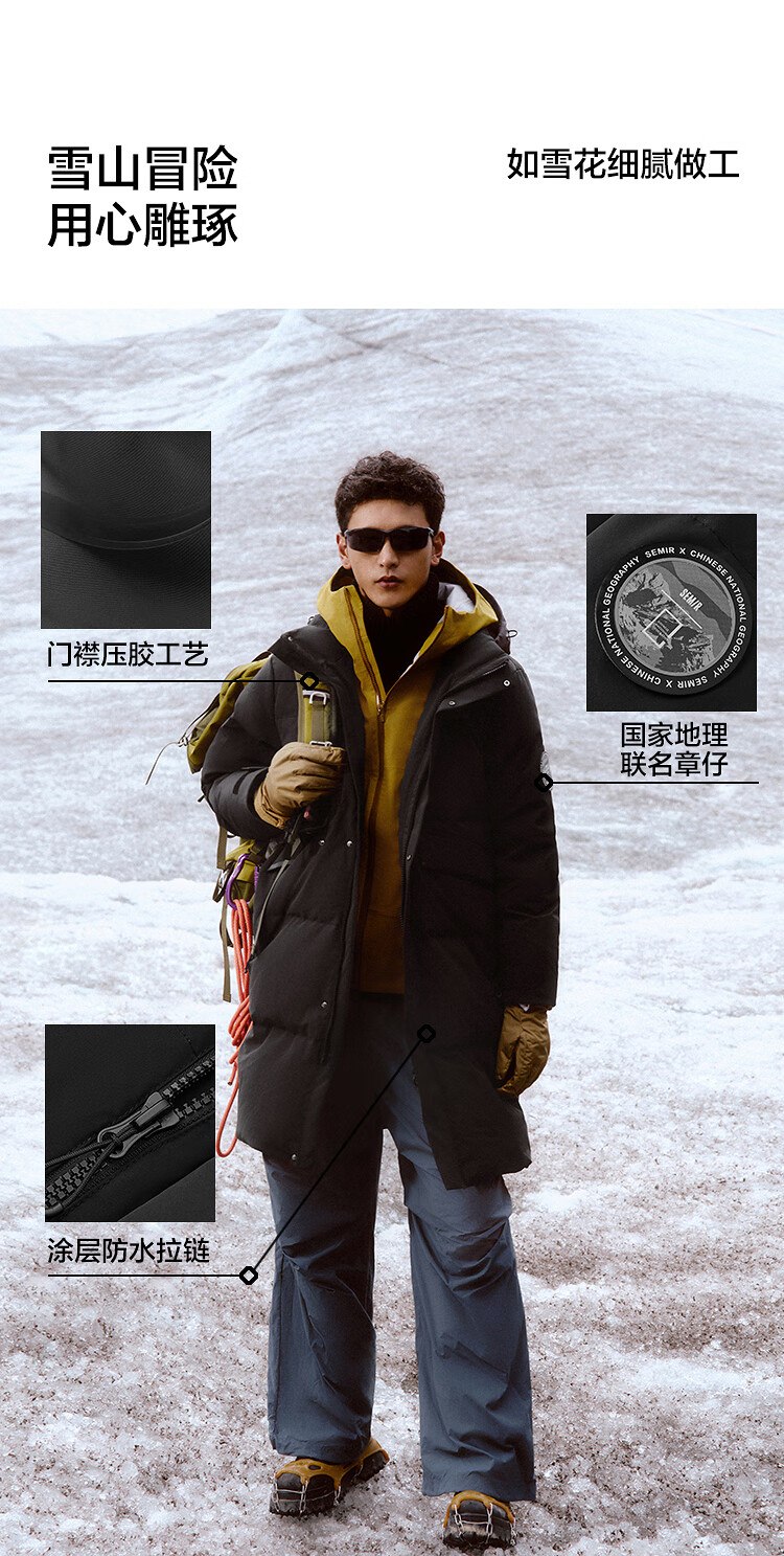 Semir Geographic Series Down Jacket Men's Winter 80 Down Rainproof and Windproof Long Jacket 101724113112