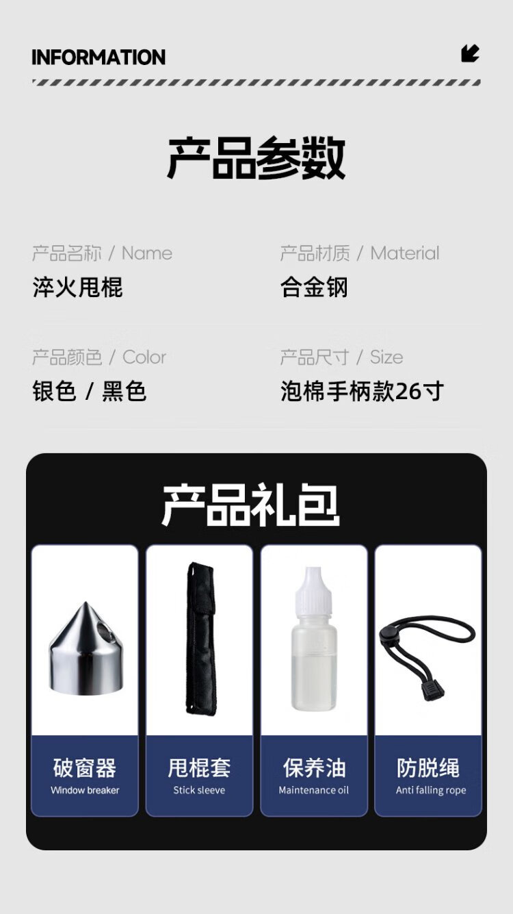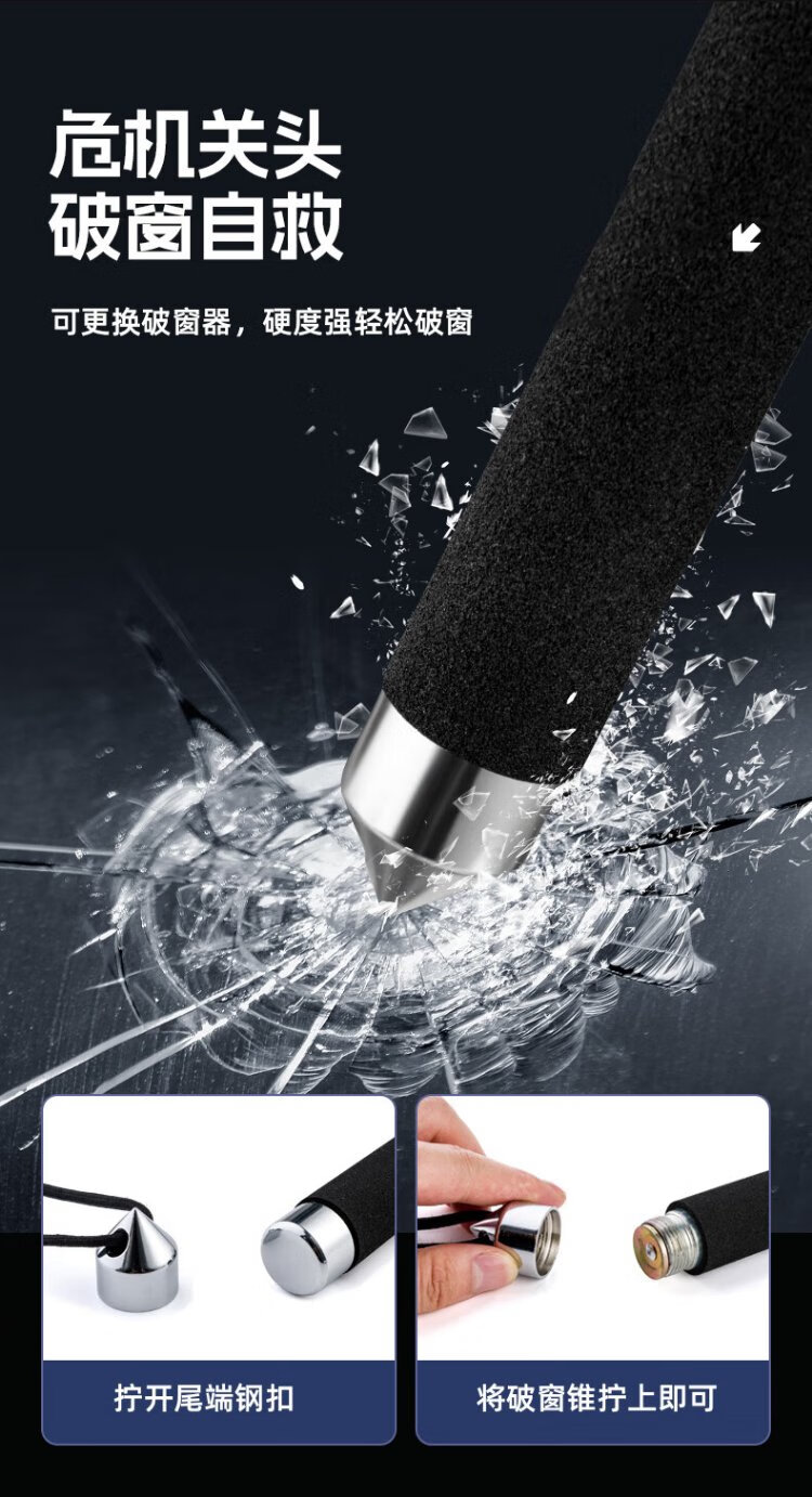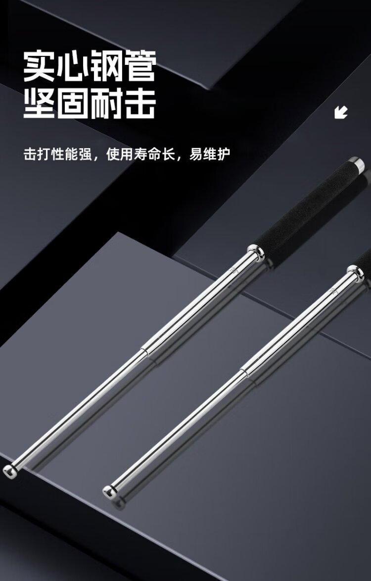 VMP Solid Throwing Stick Three Sections Telescopic Stick Dog Beating Stick Anti-Dog Stick Window Breaking Security Black 26 Inch