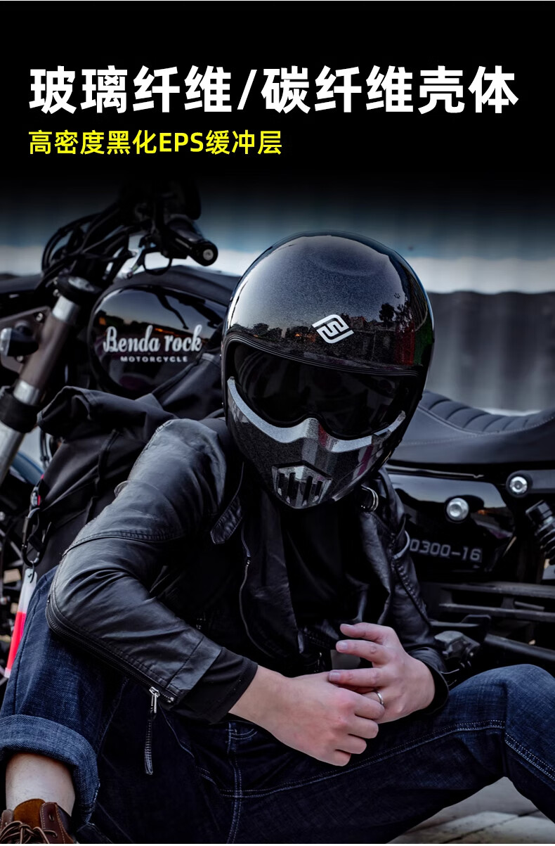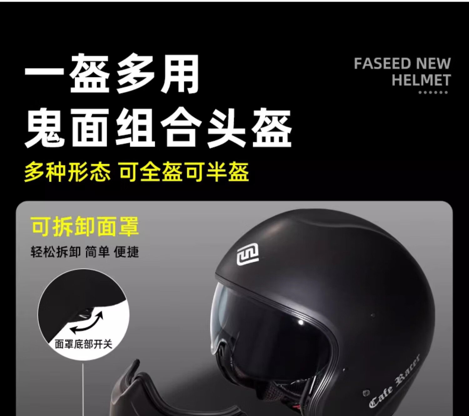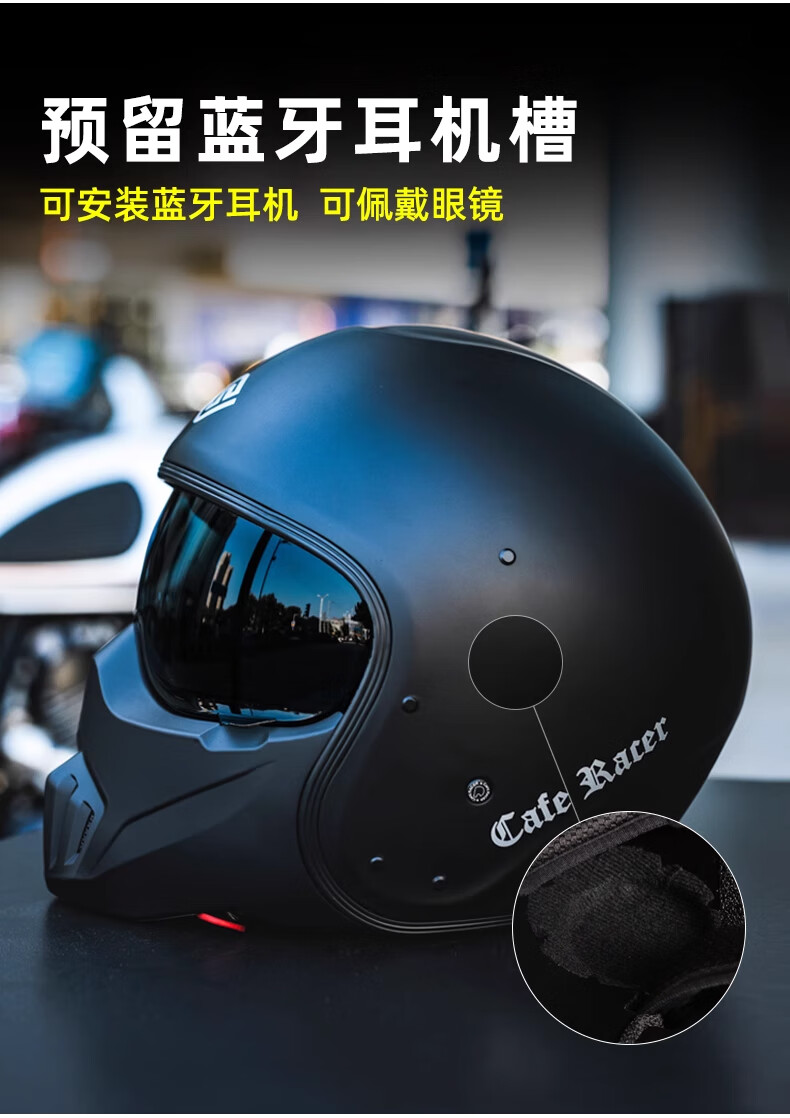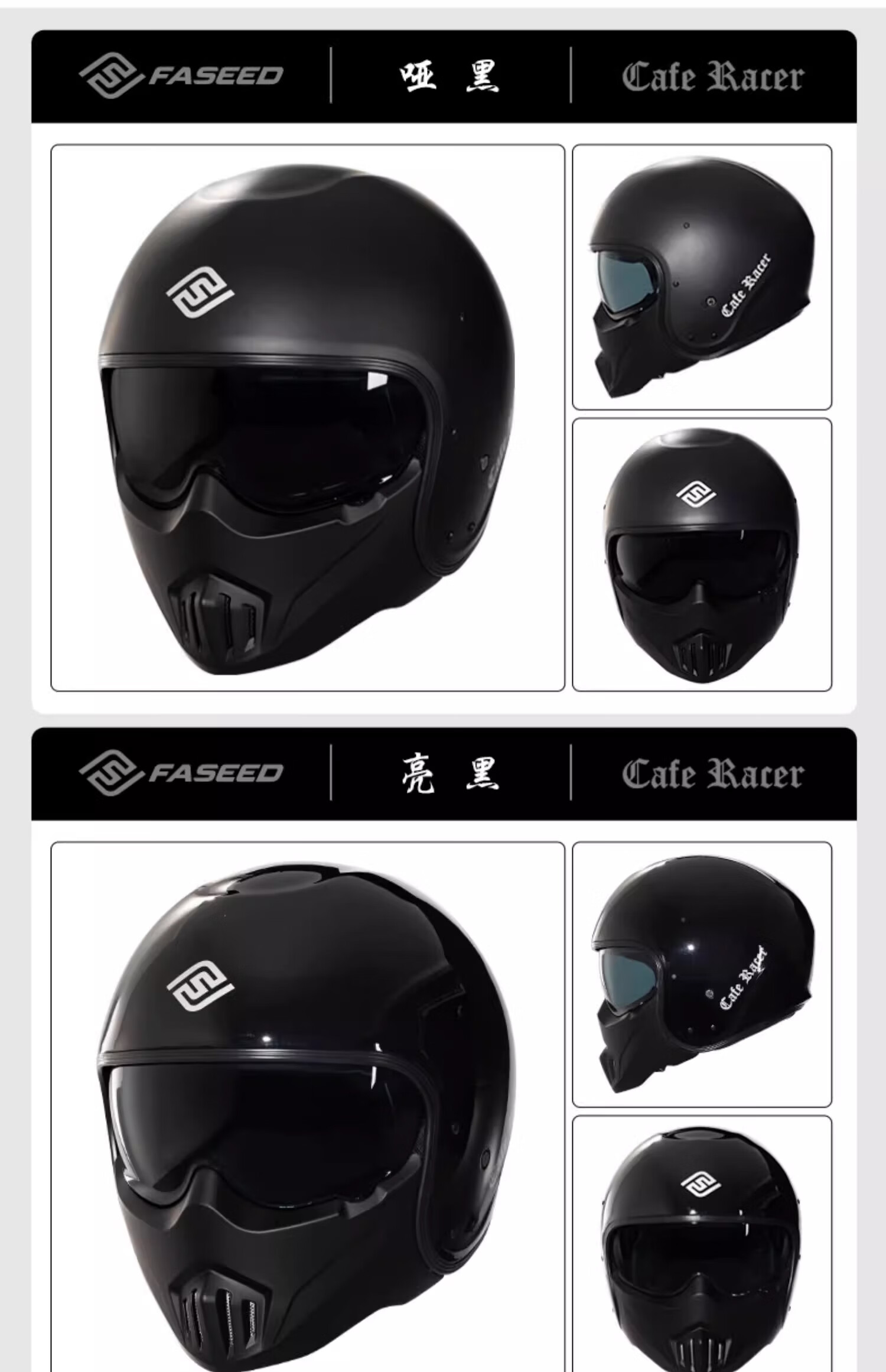 FASEED Retro Helmet Motorcycle Cafe Rider V1 Half Helmet Glass Fiber/Matte Black L