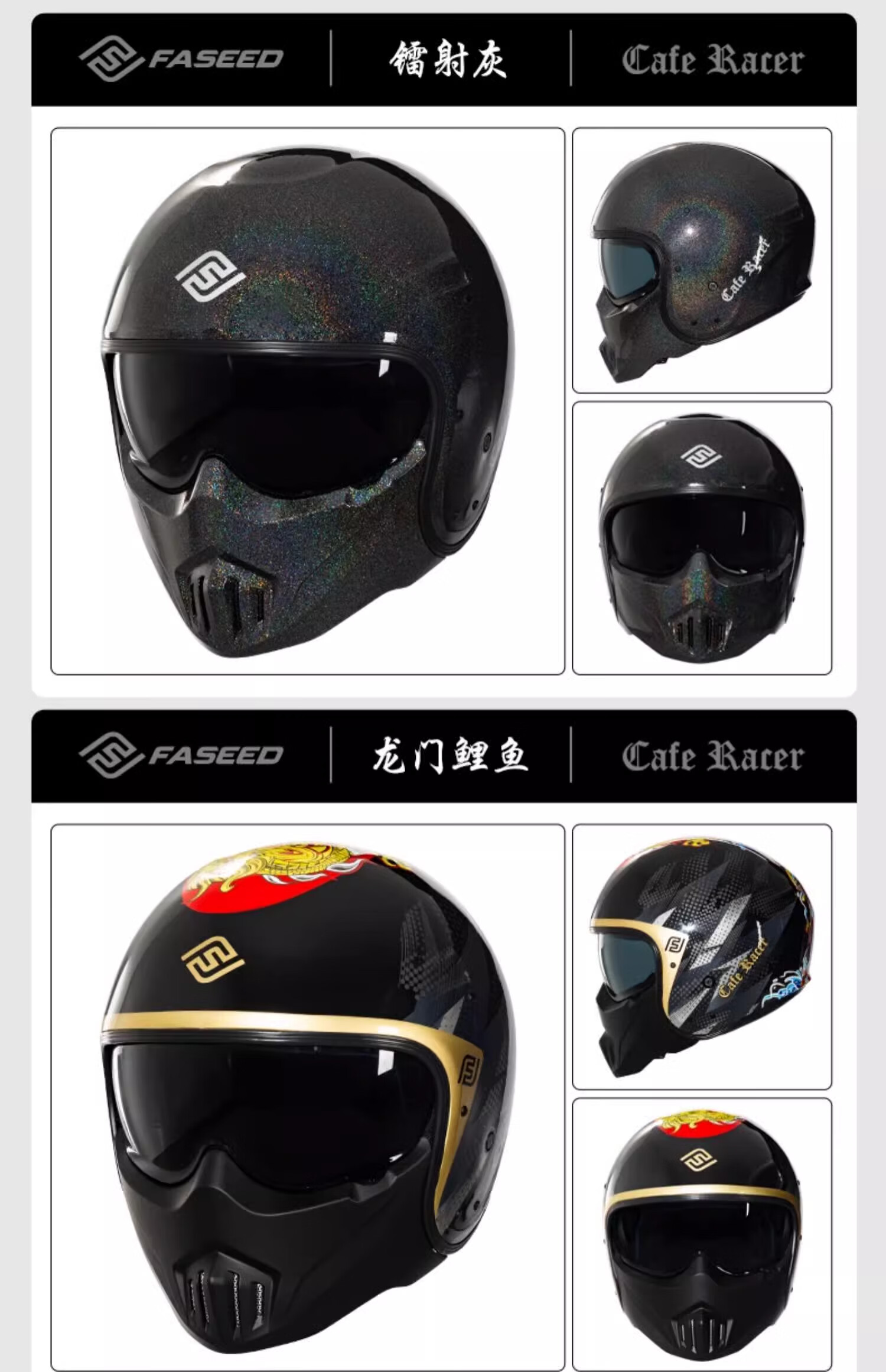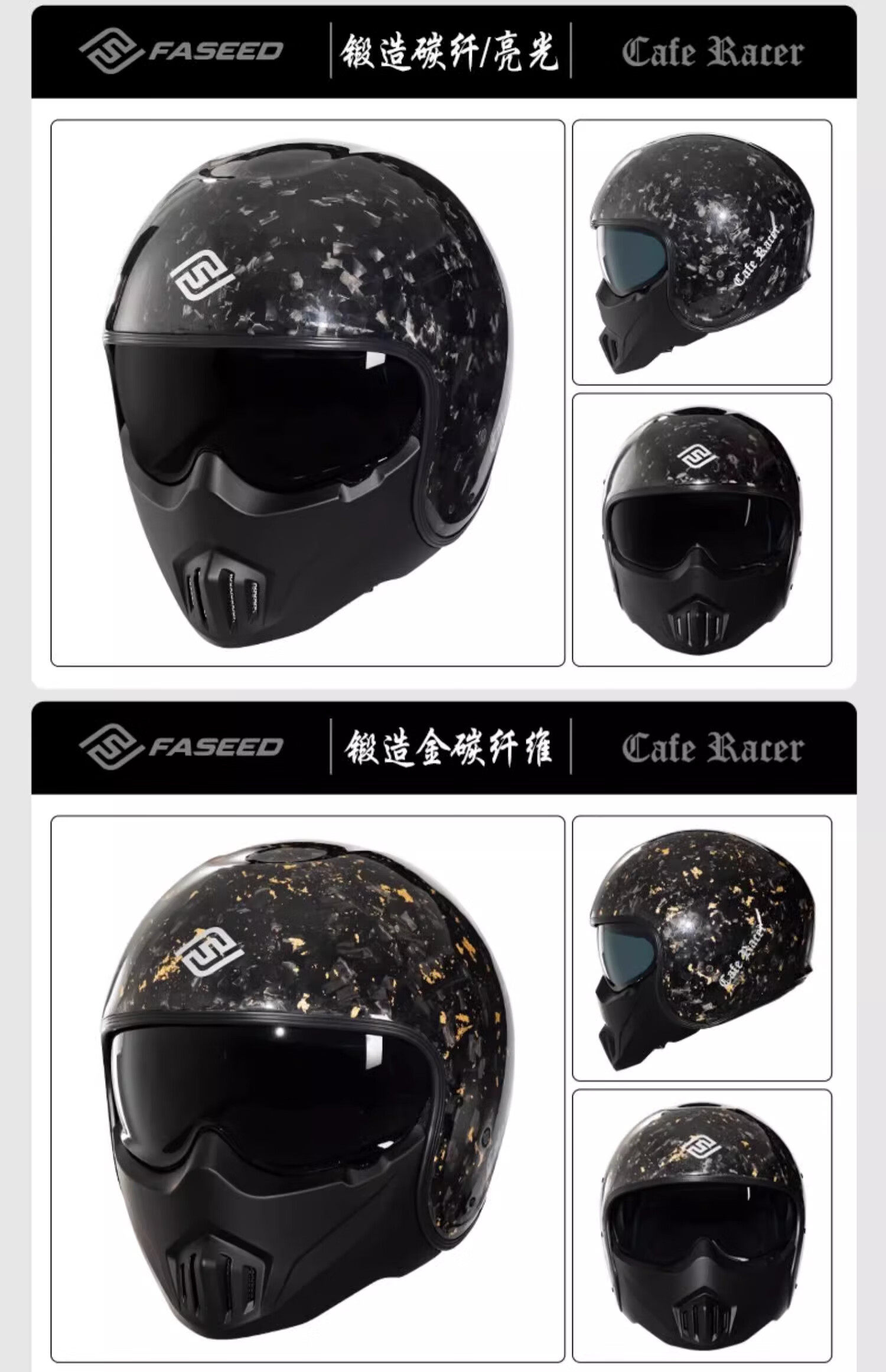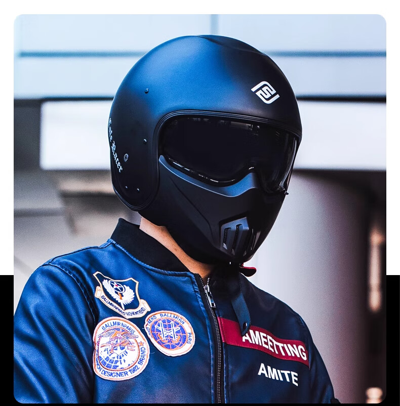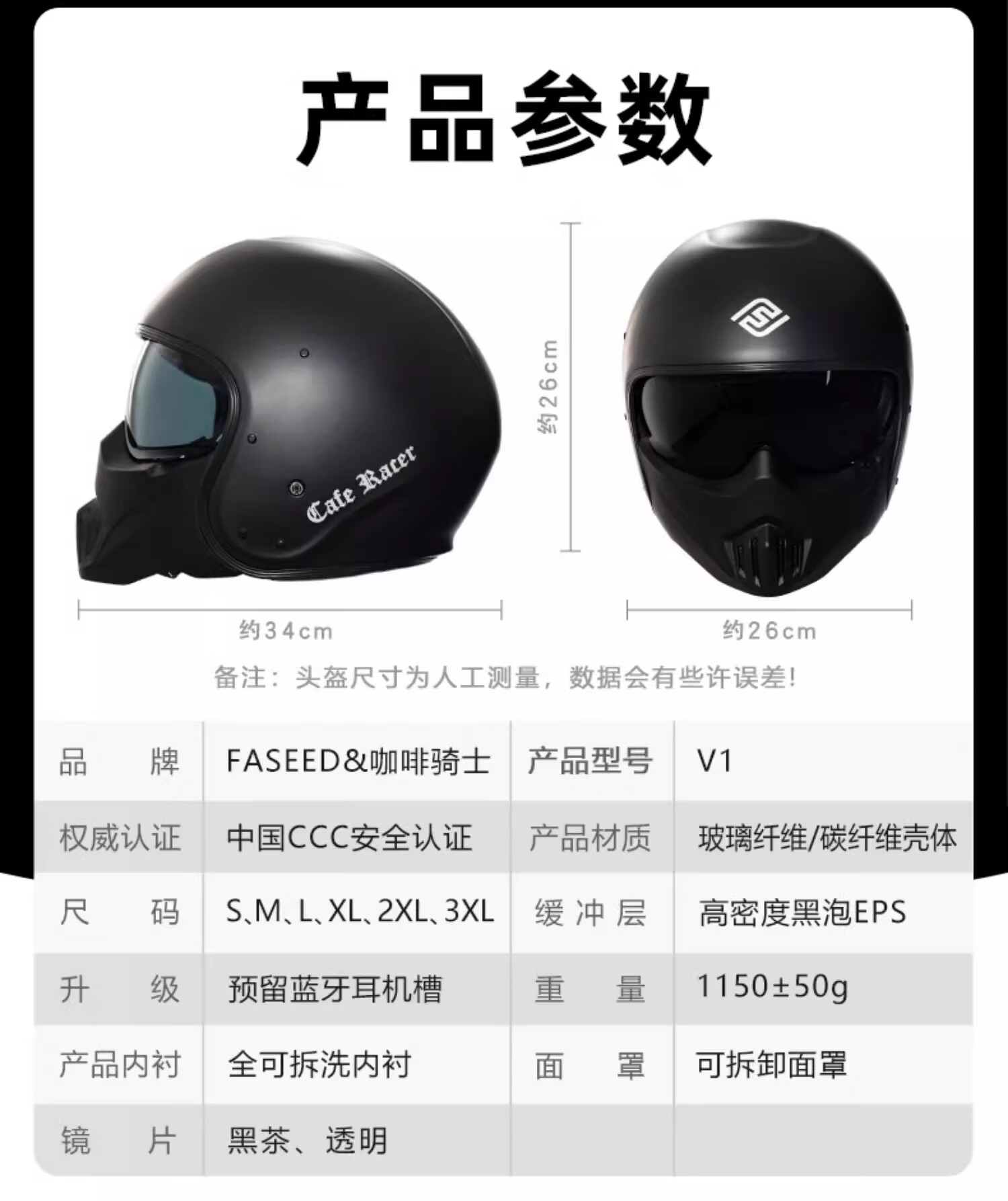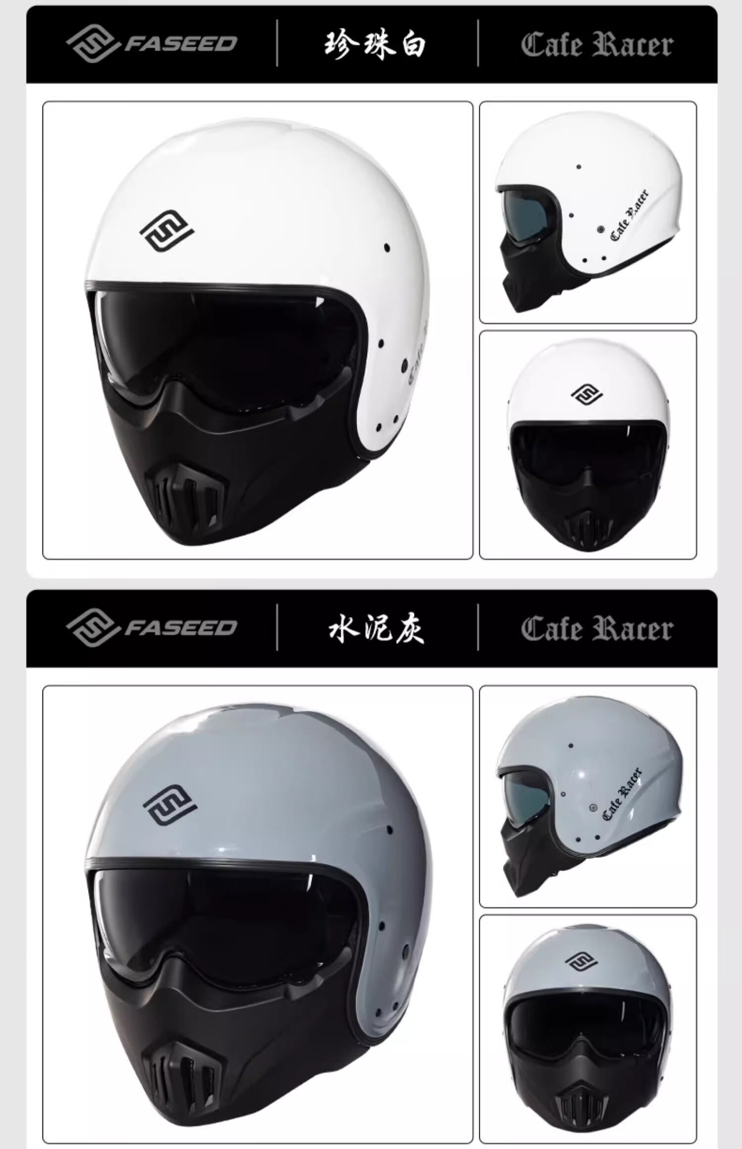 FASEED Retro Helmet Motorcycle Cafe Rider V1 Half Helmet Glass Fiber/Matte Black L