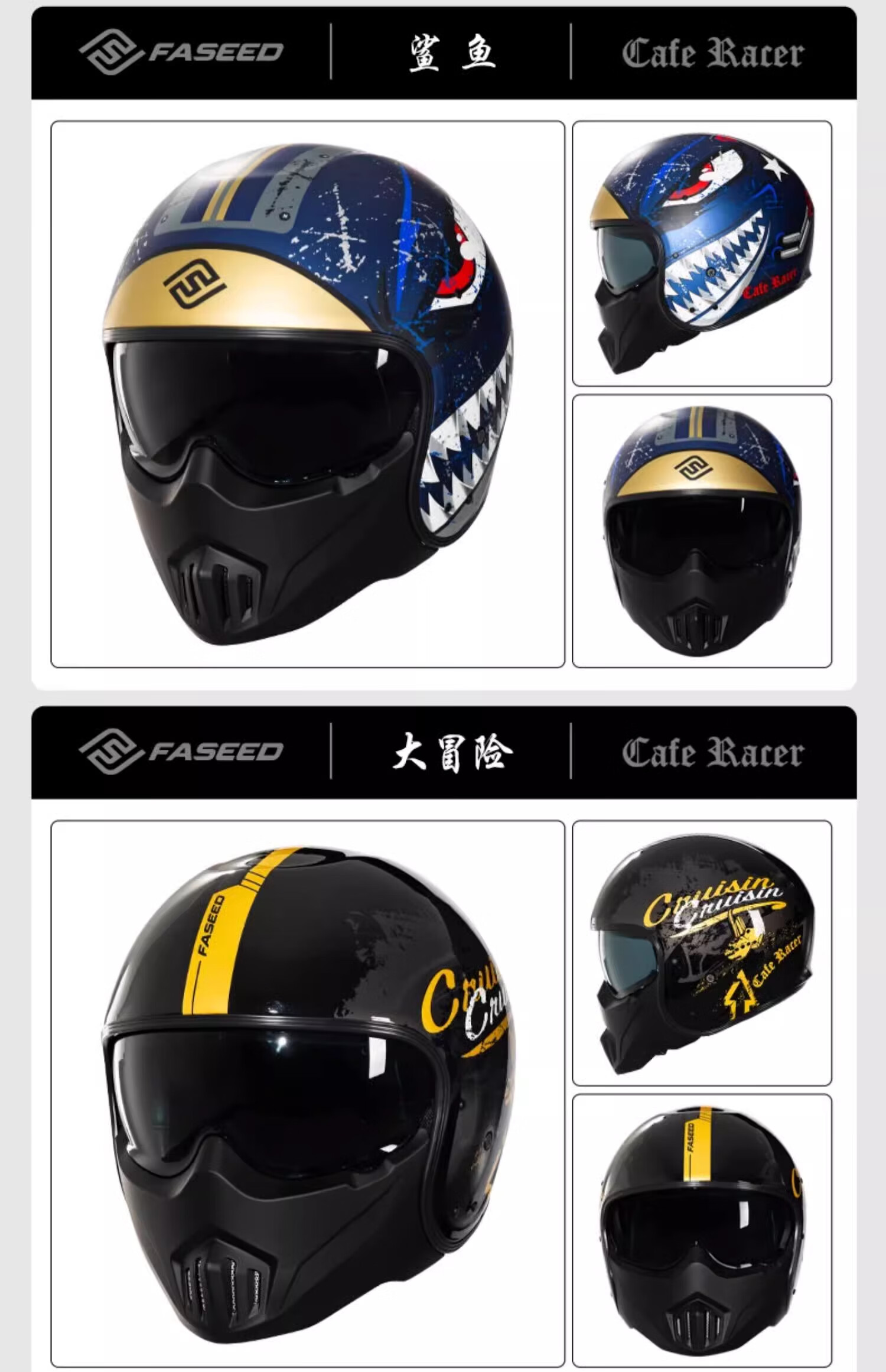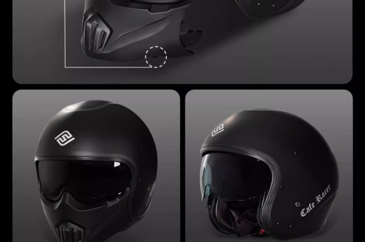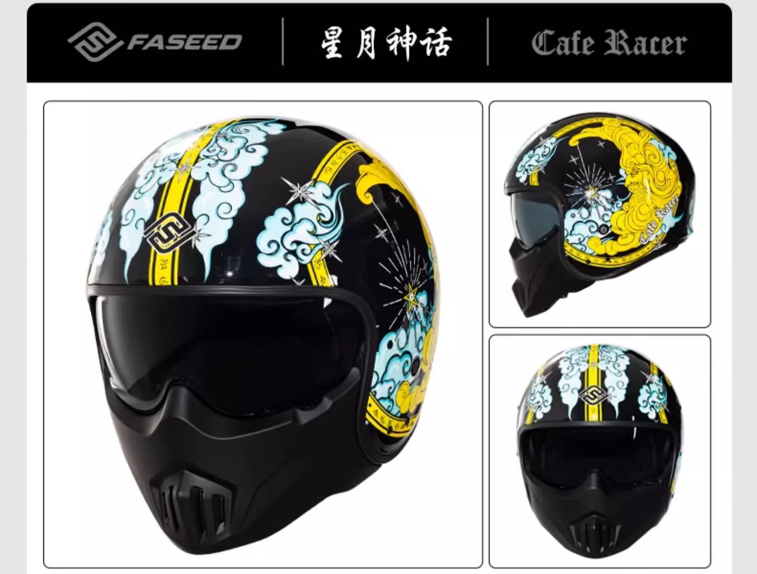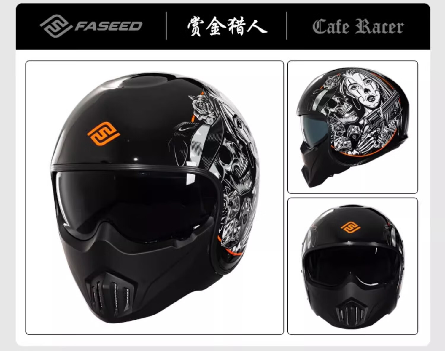 FASEED Retro Helmet Motorcycle Cafe Rider V1 Half Helmet Glass Fiber/Matte Black L