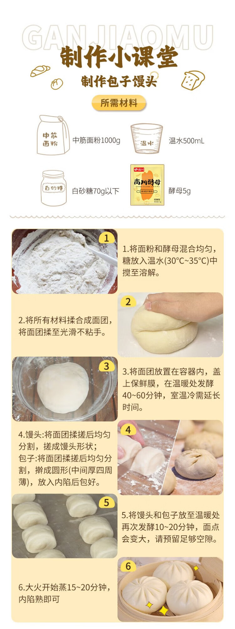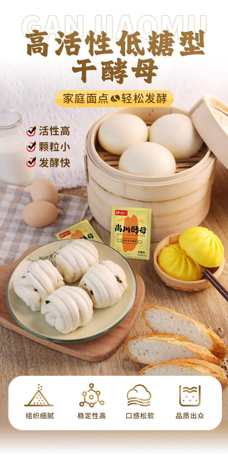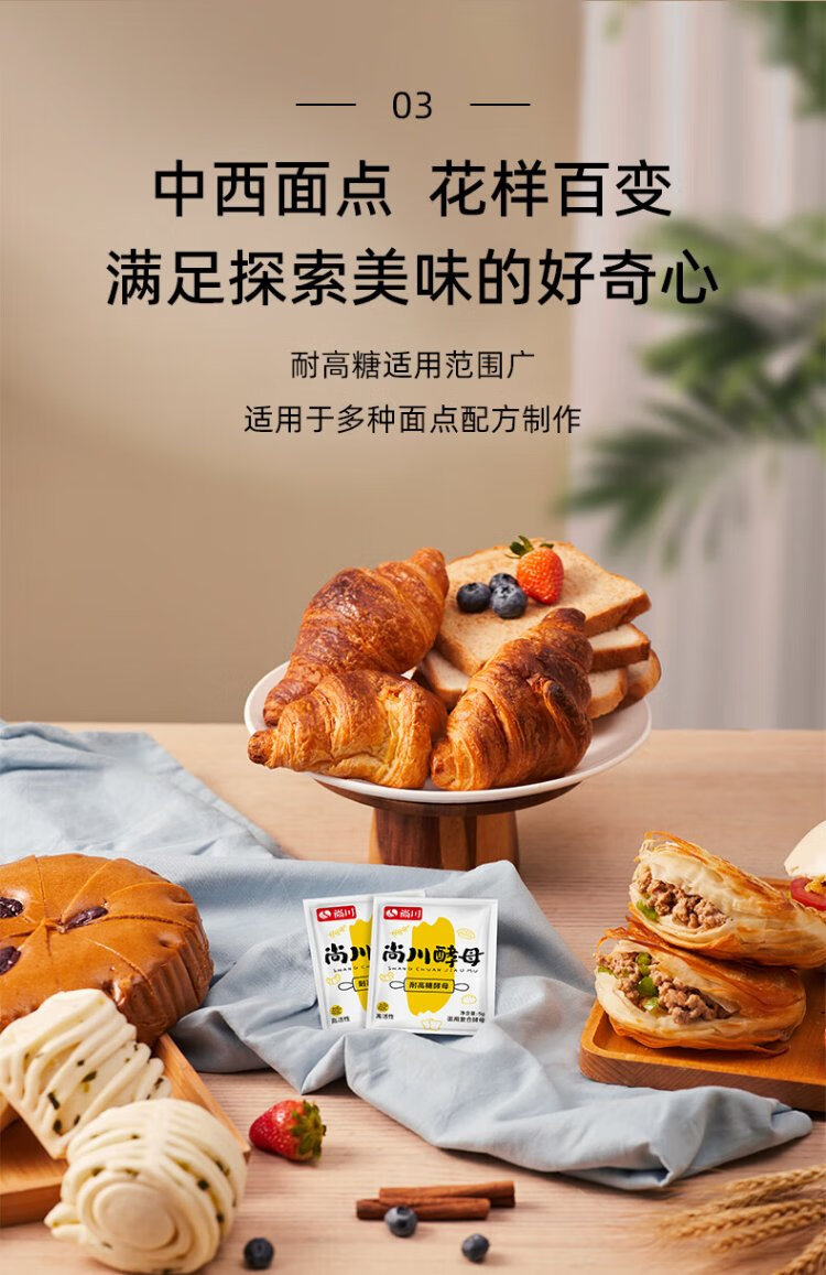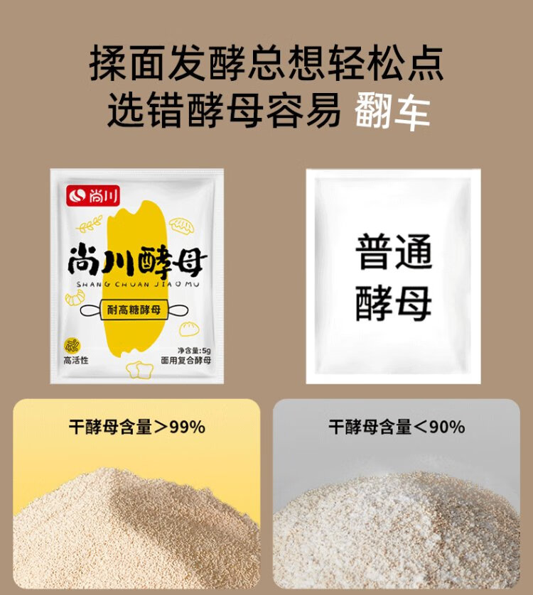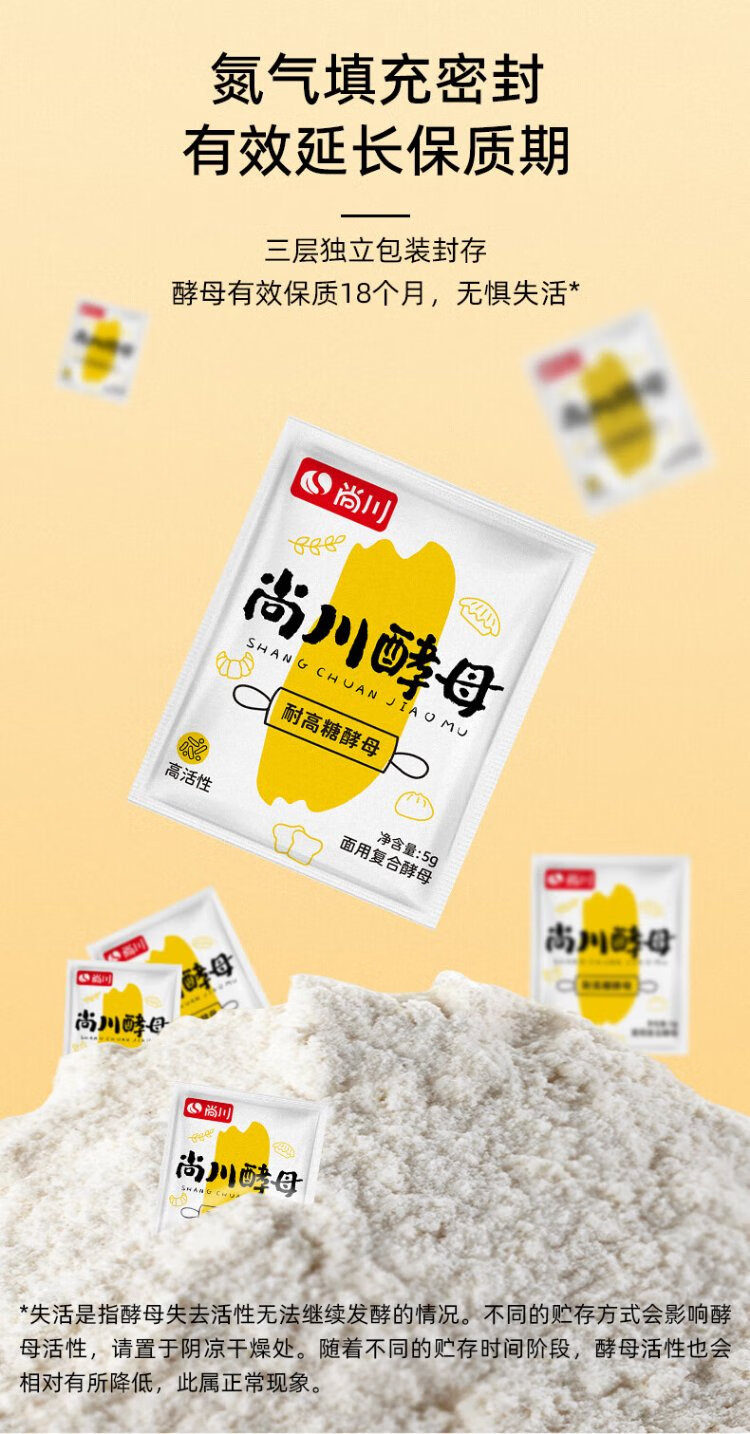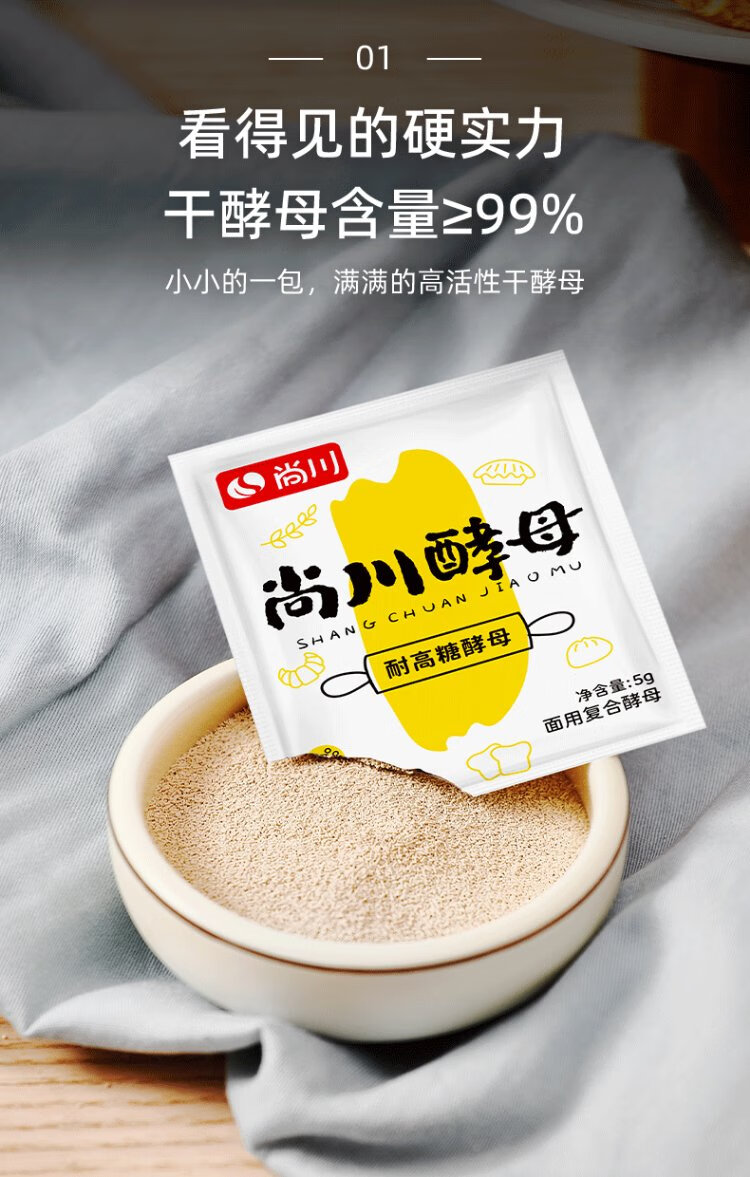 Highly active dry yeast powder, high sugar resistant yeast 5g*10 bags + low sugar 5g*10 bags + old noodle flavor 6g*10 bags