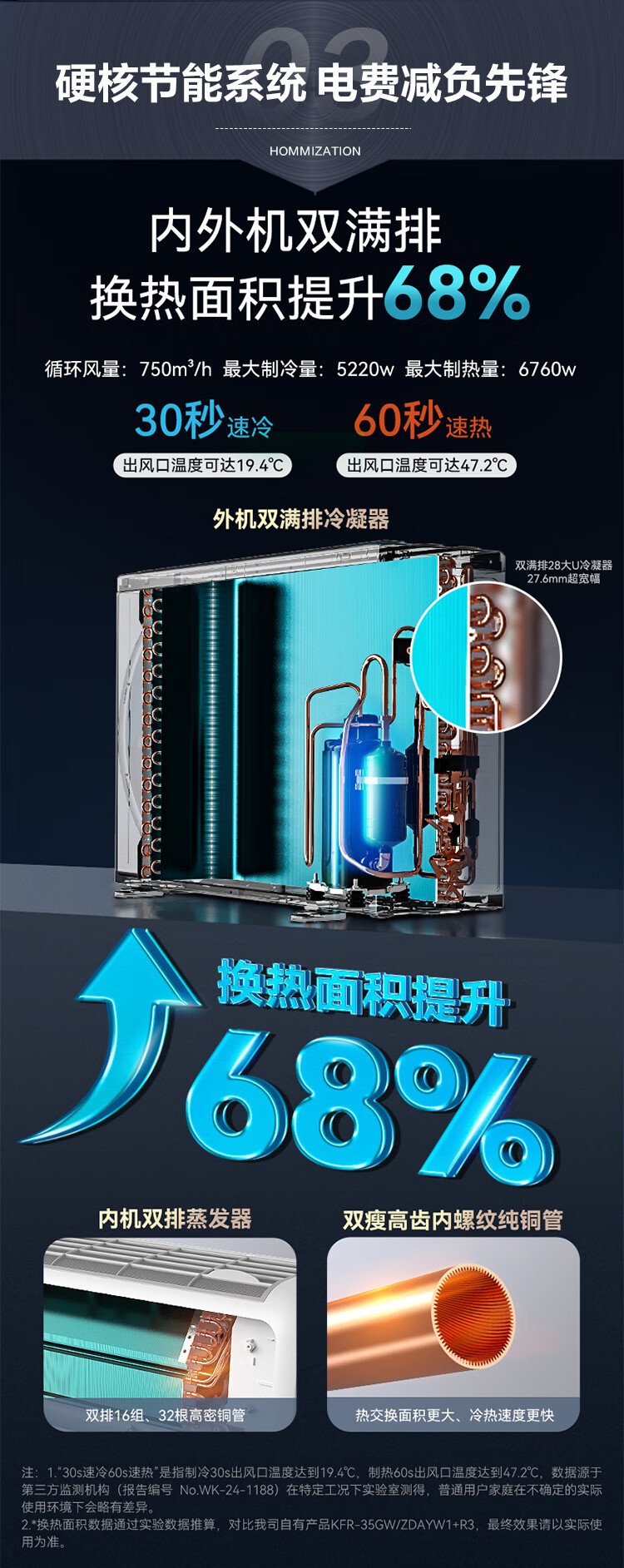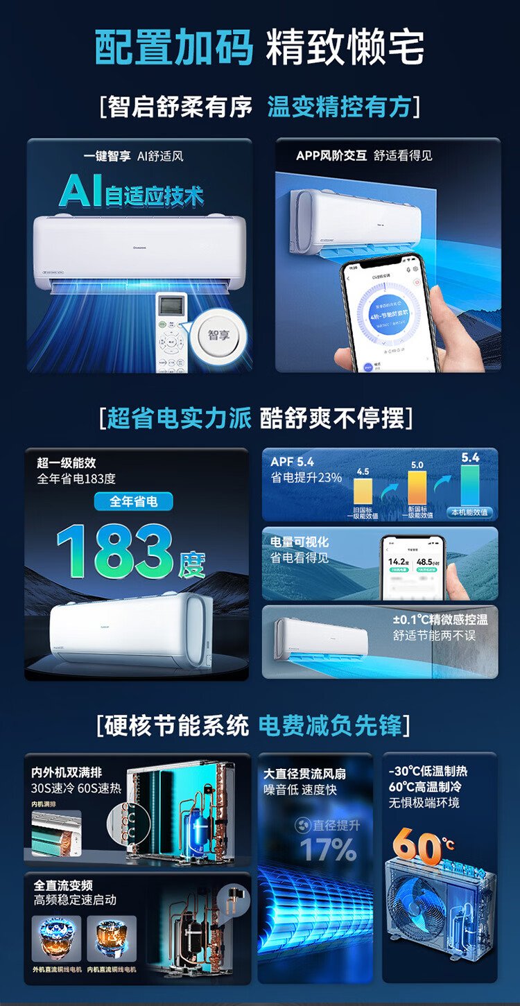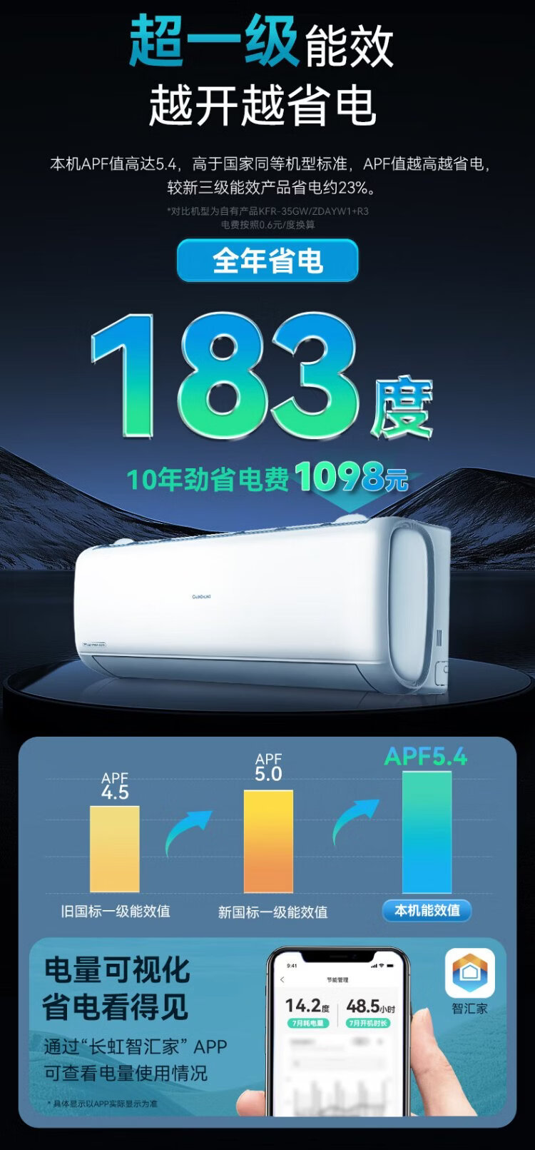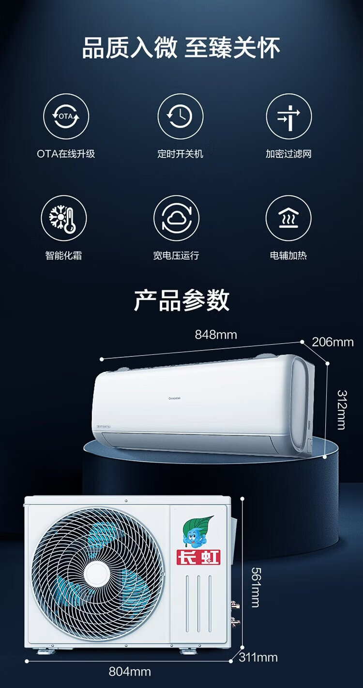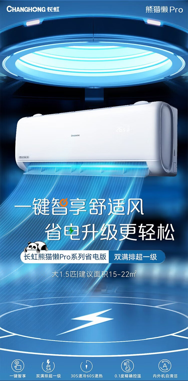 Changhong air conditioner large 1.5 HP Panda Lazy Pro super first-class power-saving pure copper tube heating and cooling on-hook state-subsidized trade-in KFR-35GW/ZDCSW1+RA (PR) ten-year warranty
