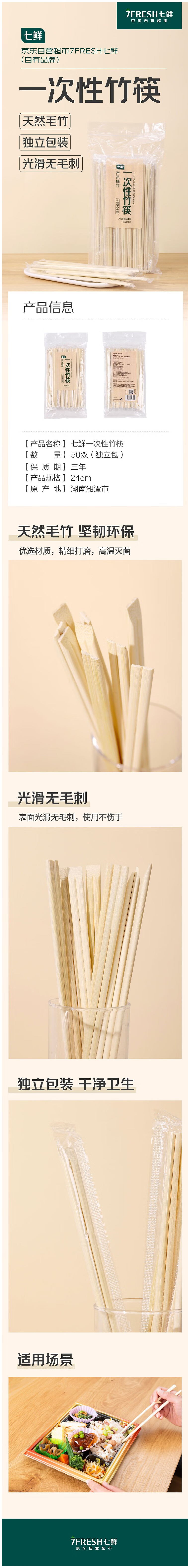 Qixian Disposable Bamboo Chopsticks 50 Pairs