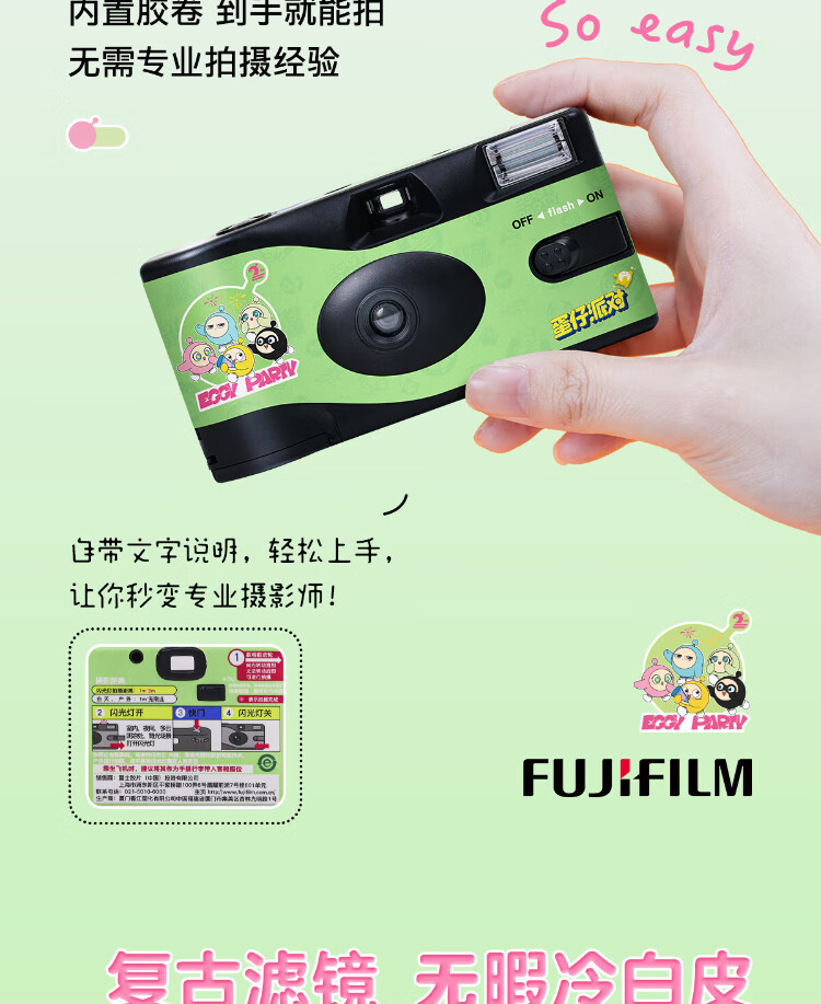 Fuji (FUJIFILM) QuickSnap 1986 disposable film camera retro film machine film camera egg party joint gift box (including 27 pieces of film) egg green