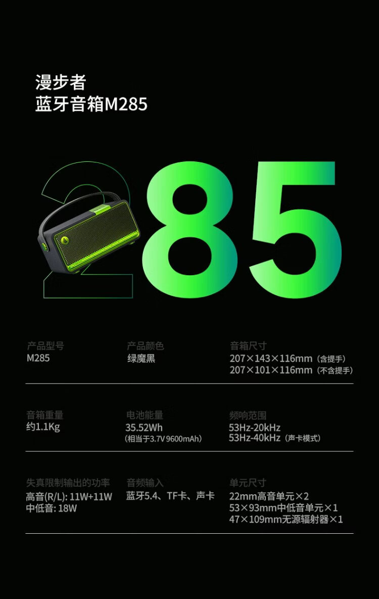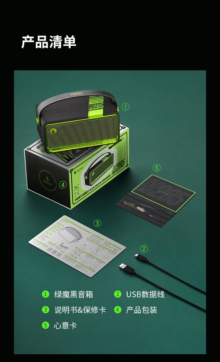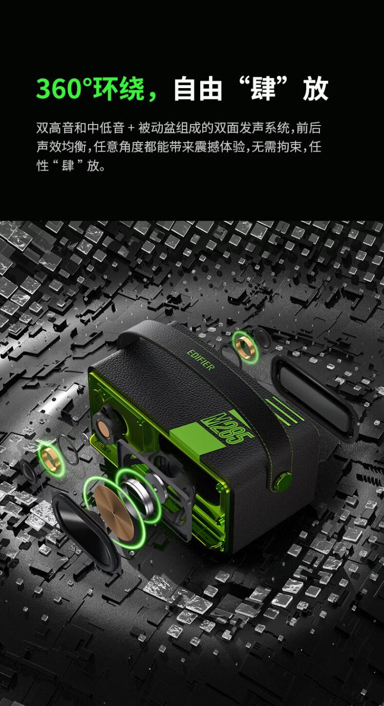 Edifier (EDIFIER) M285 Retro Portable Bluetooth Speaker Bluetooth 5.4 Portable Speaker Home Outdoor Speaker Long Battery Life Gold Label Certification Green Devil Black New Year Gift
