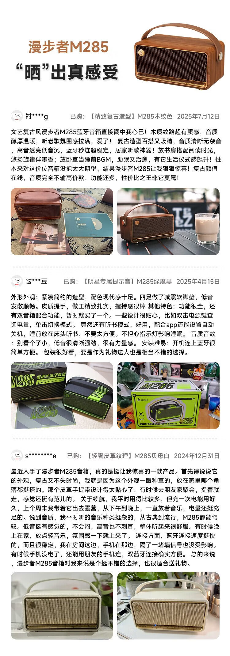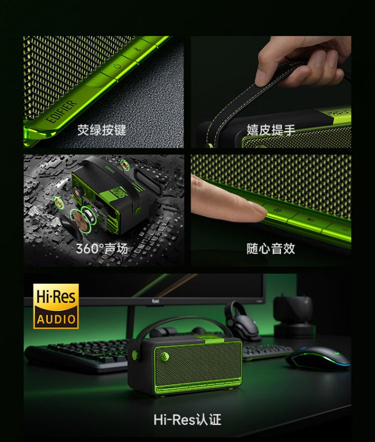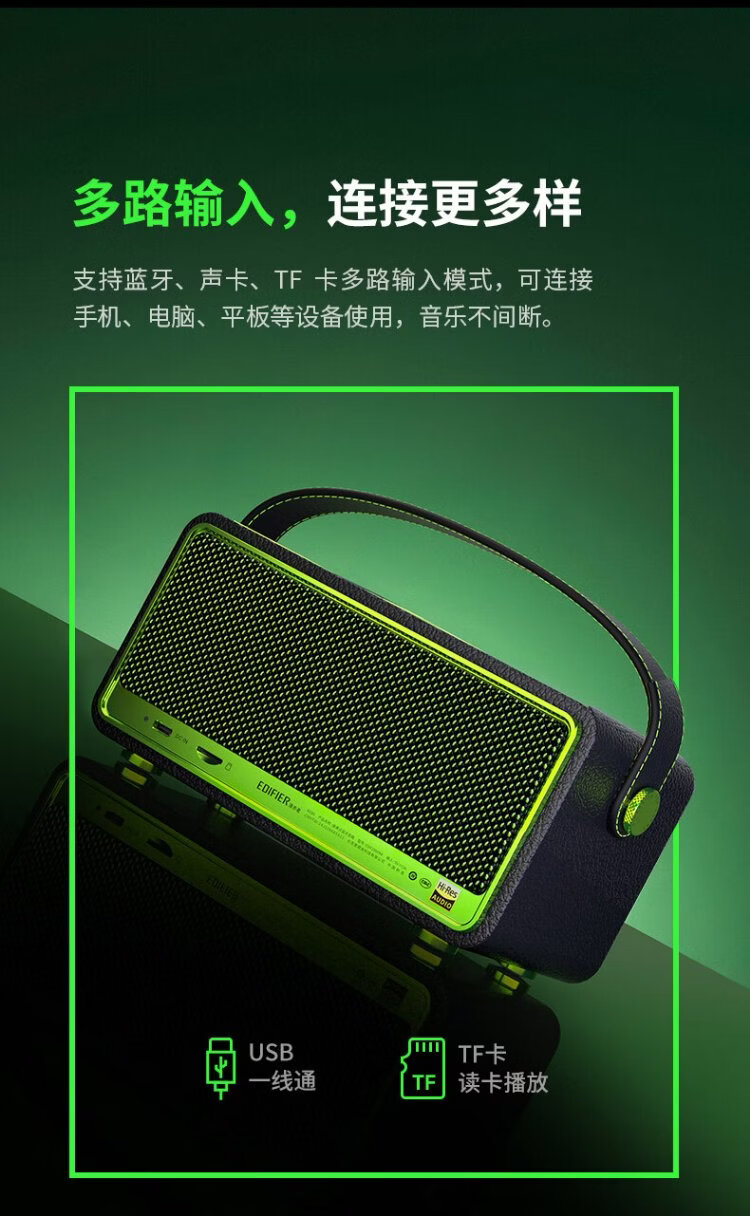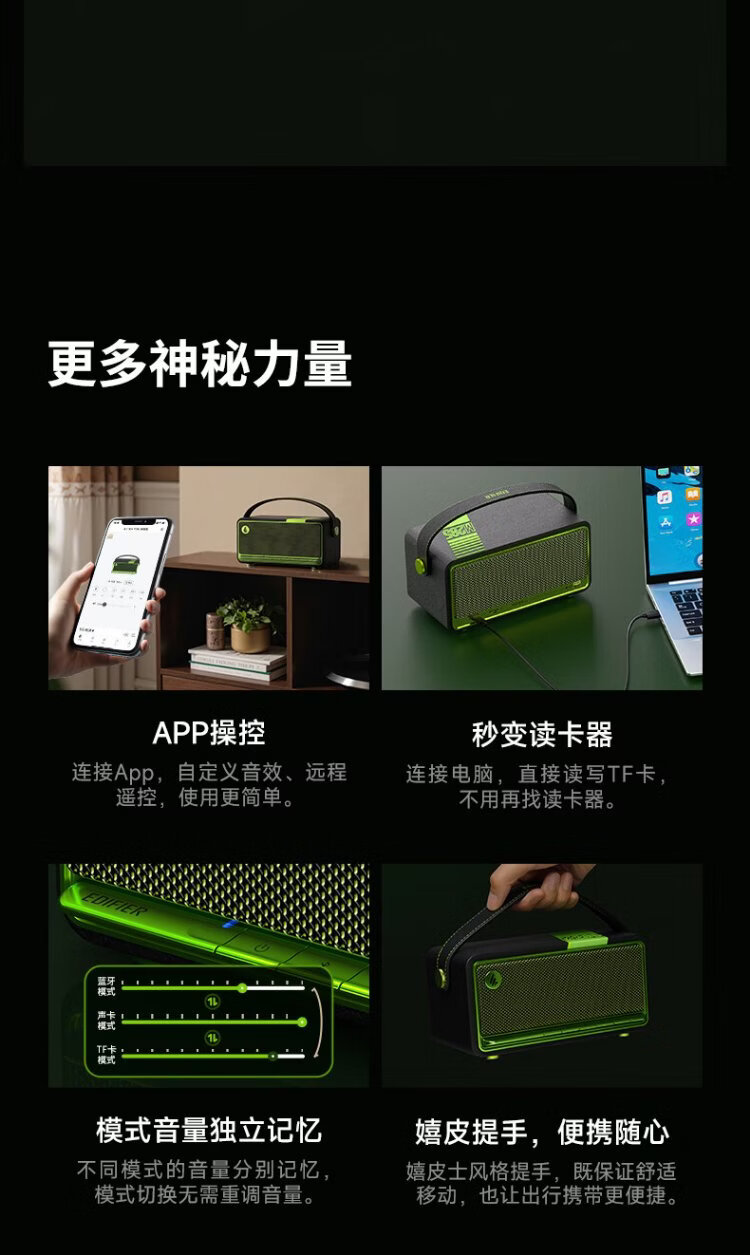 Edifier (EDIFIER) M285 Retro Portable Bluetooth Speaker Bluetooth 5.4 Portable Speaker Home Outdoor Speaker Long Battery Life Gold Label Certification Green Devil Black New Year Gift