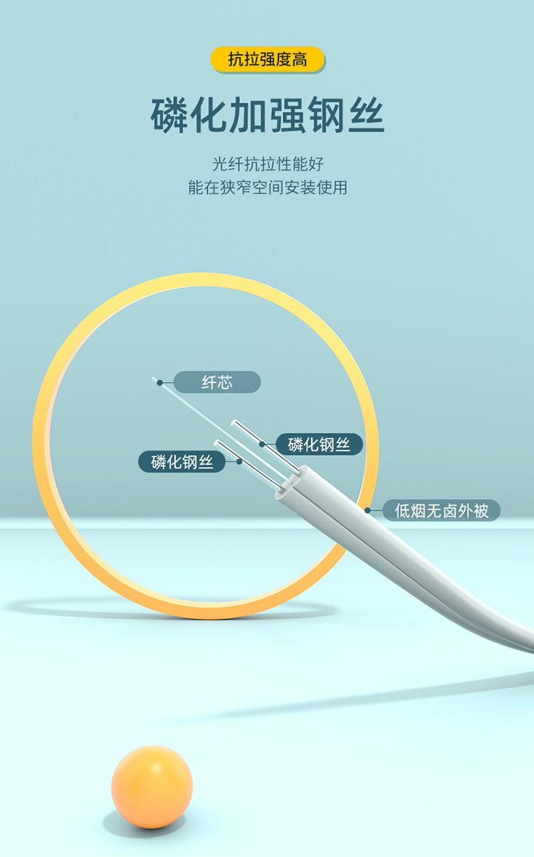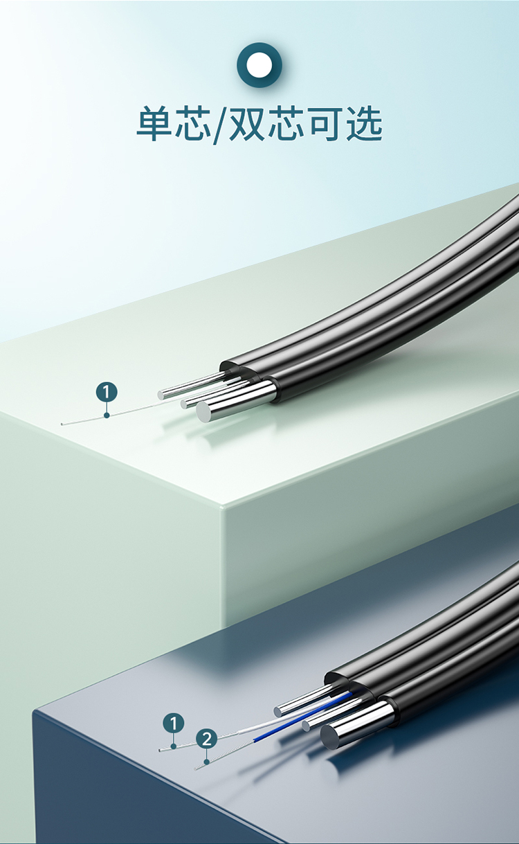 Shanze telecommunications grade leather fiber optic cable butterfly indoor single-mode dual-core fiber optic home broadband line fttr networking 2 core 2 steel wire optical cable white 50 meters FH22-50B