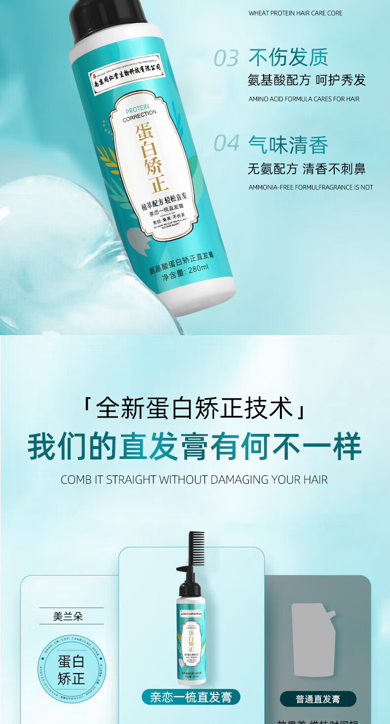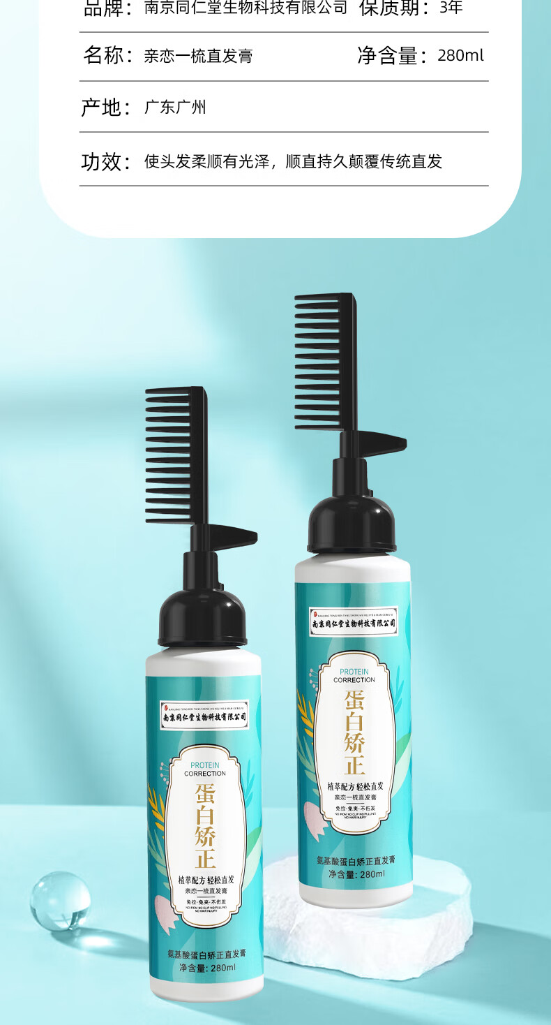 Hongyan Cui Tongrentang Hair Straightening Cream No-pull Protein Correction One Comb Softening Hair Wash Straight Hair Smoothener Potion Soft Hair Cream
