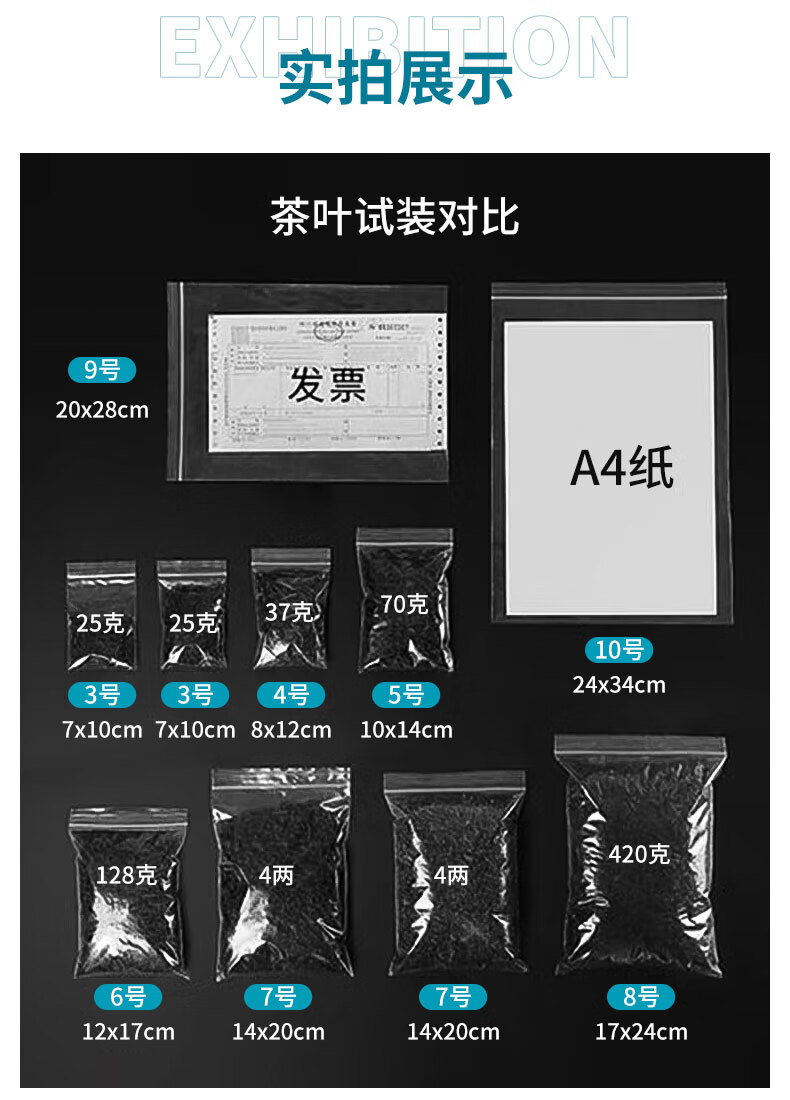 Kerui'er Thickened Transparent Sealing Bag No. 3 Food Grade PE Ziplock Bag ID Card Tea Dustproof and Moistureproof Packaging Bag Jingcang Suda - Arrive today/arrive tomorrow