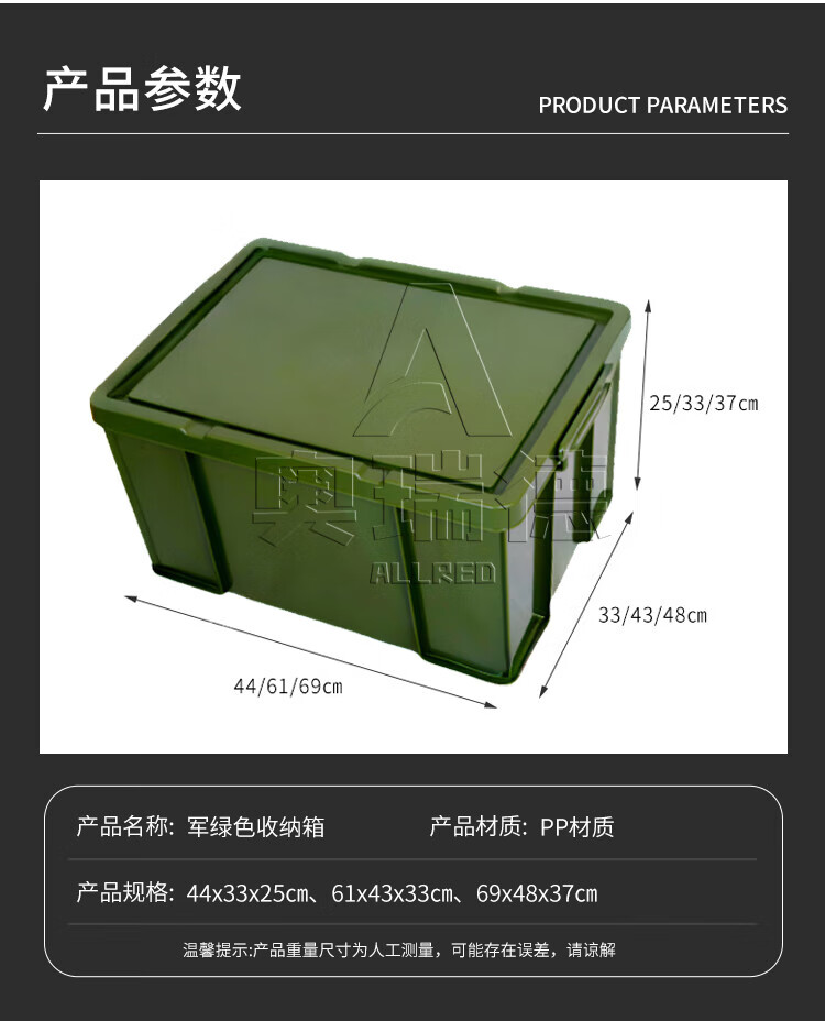 Orred Storage Box Transportation Turnover Box Solid Color Thickened Organizing Box Storage Box Xinjun Green 44*33*25cm