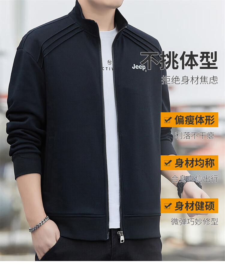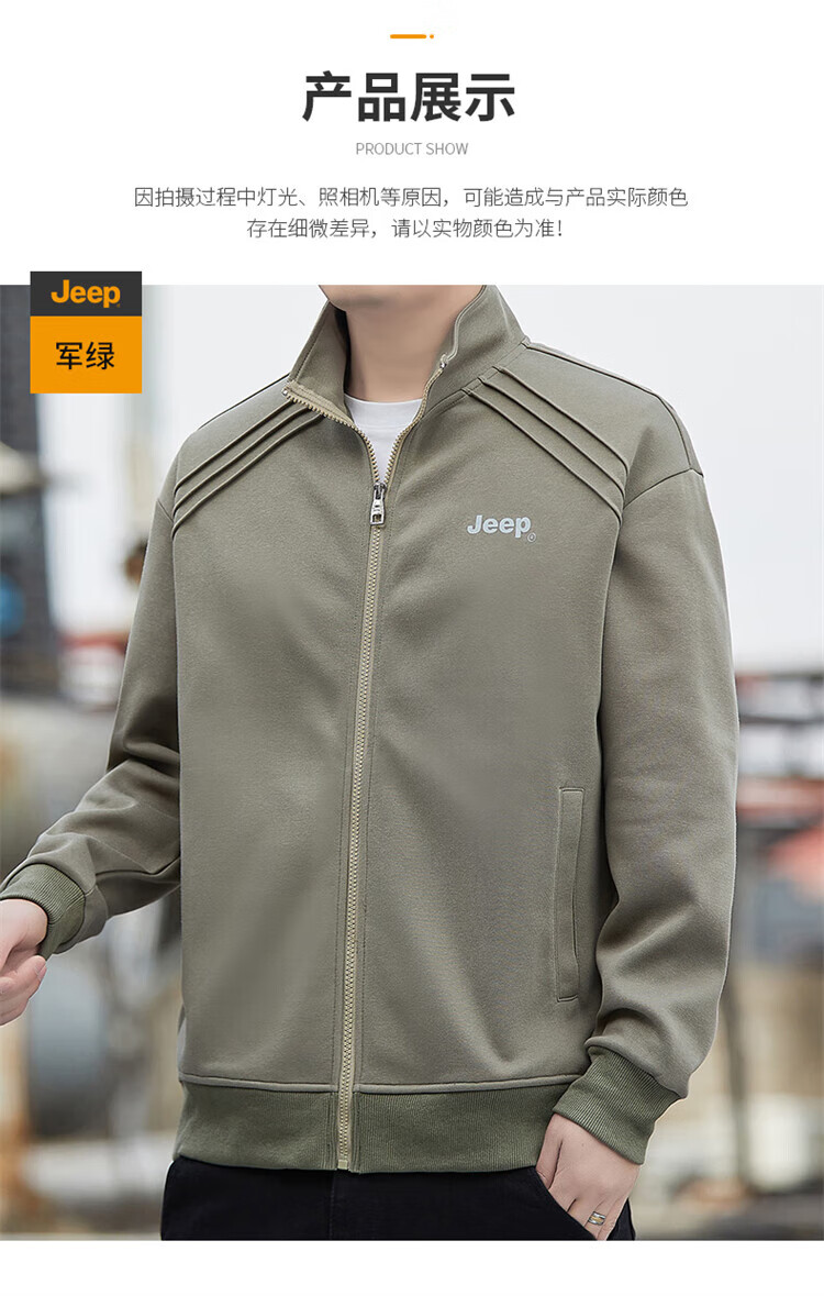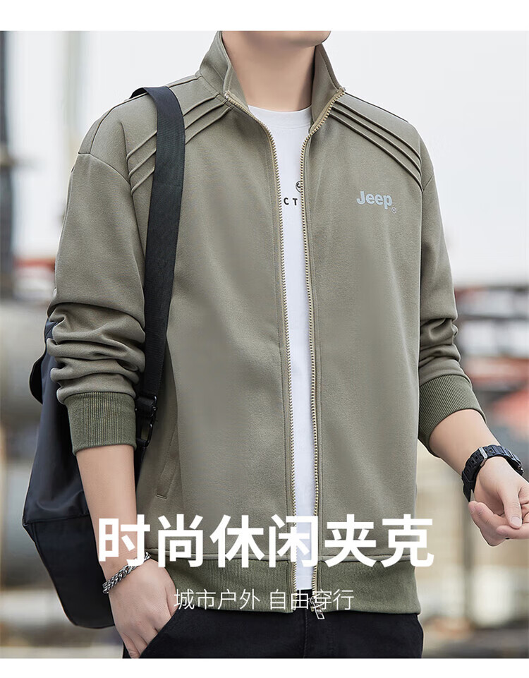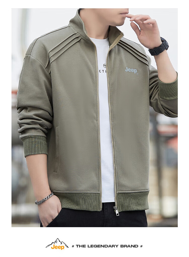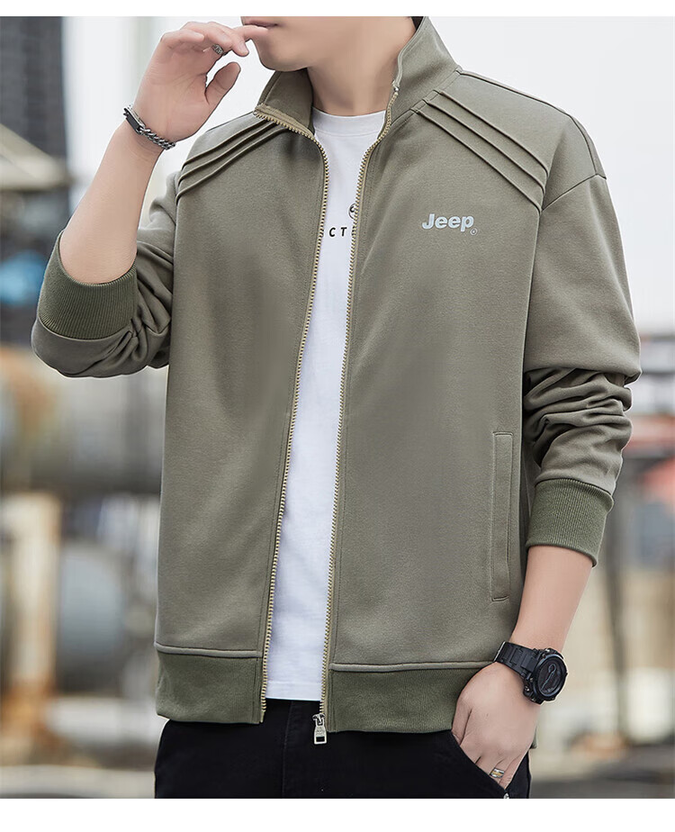 JEEP Jeep Jacket Men's Autumn and Winter Casual Stand Collar Jacket Men's Loose Trendy Clothes Men's Military Green XL