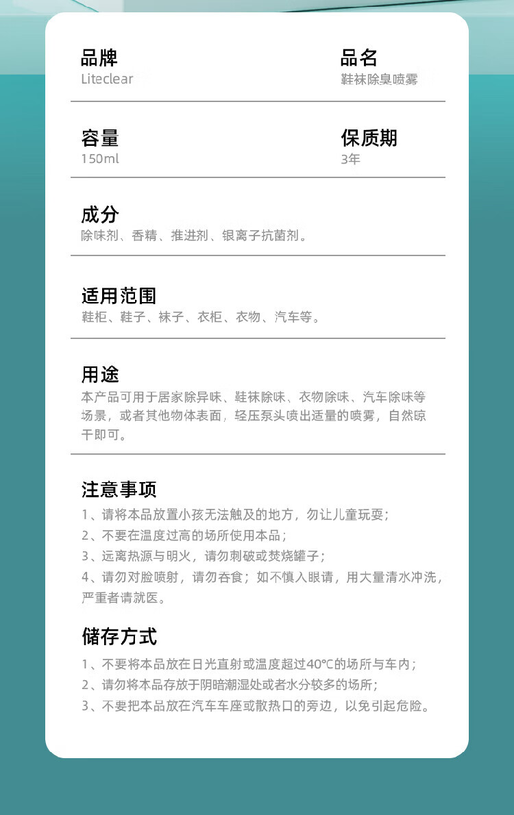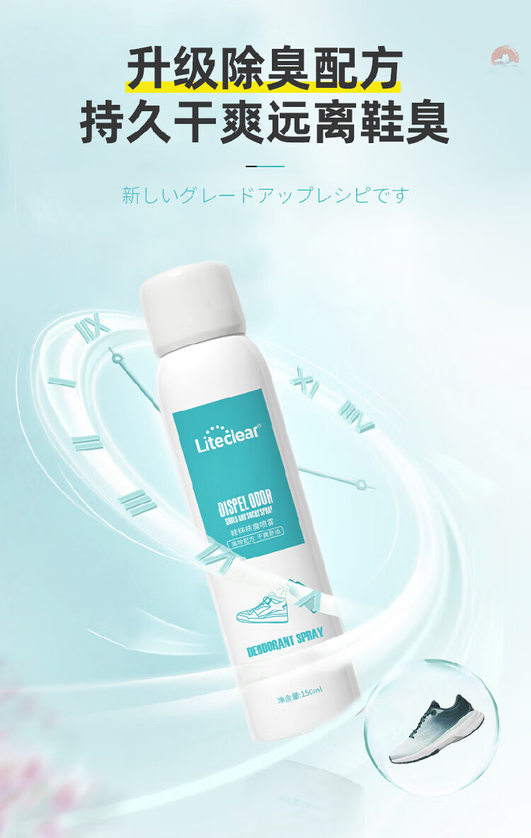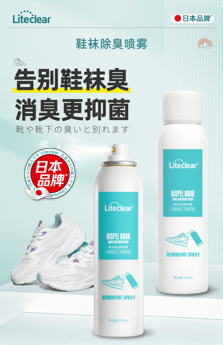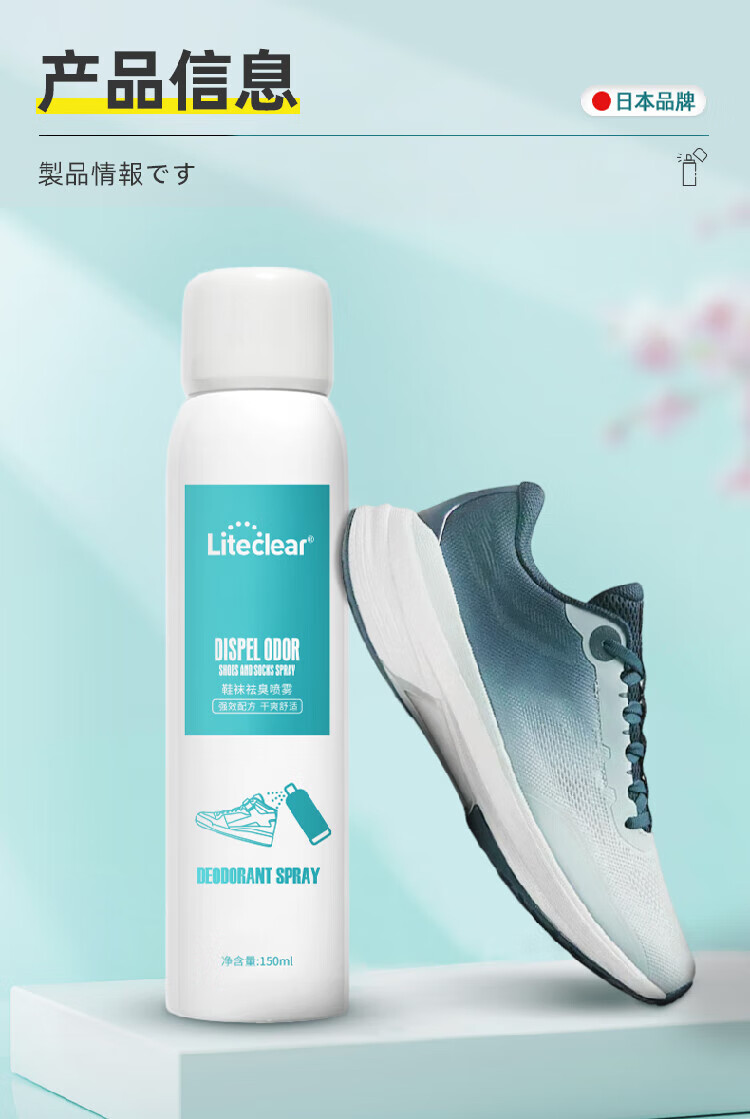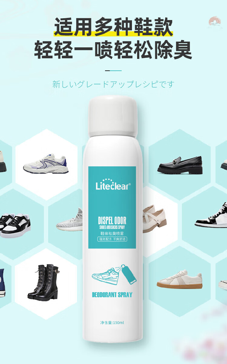 Liteclear Shoes Deodorizing and Sterilizing Spray Sneakers Sports Shoes Deodorizing Shoe Cabinet Silver Ion Shoes and Socks Deodorizing Spray Deodorizing and Sterilizing