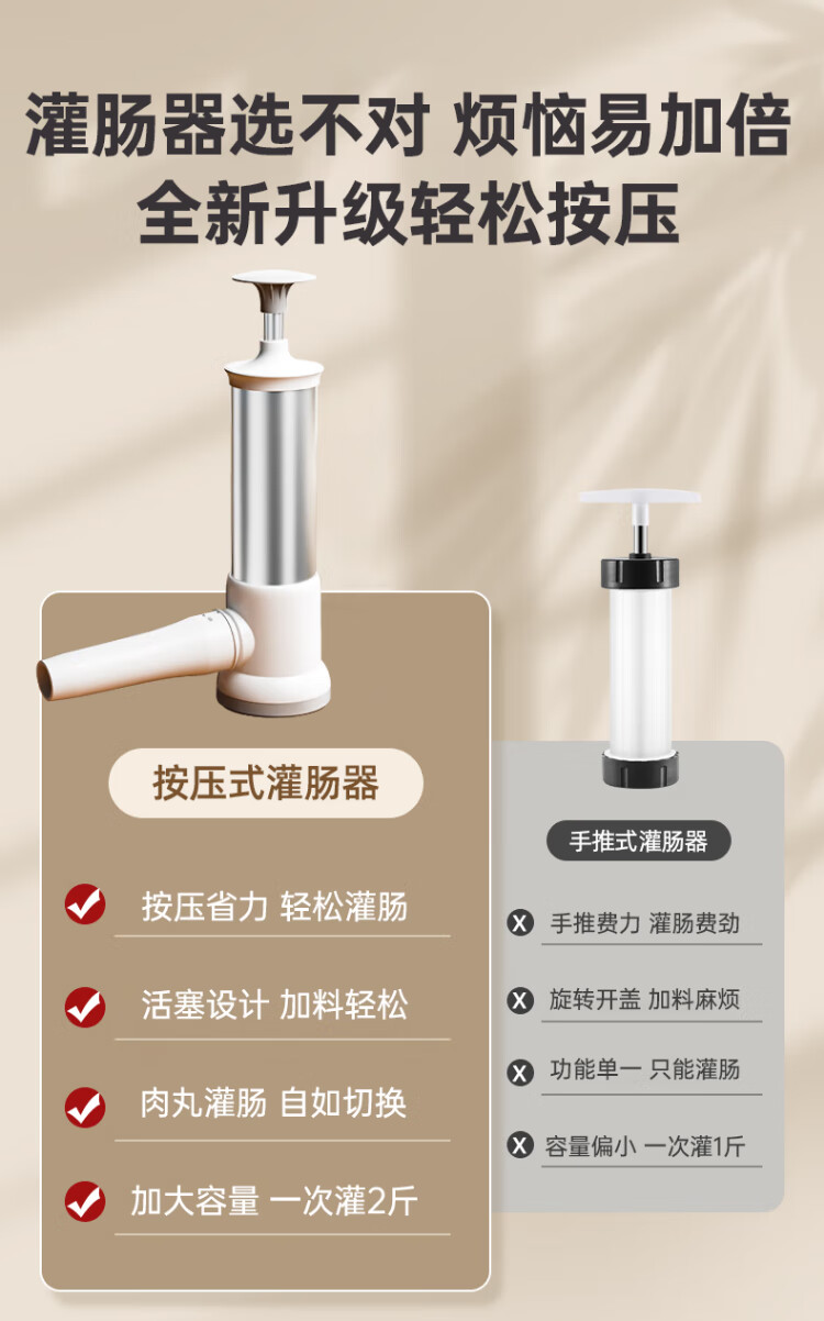Double gun stainless steel sausage filling machine home-made starch sausage machine manual filling meat sausage sausage meatball artifact large size