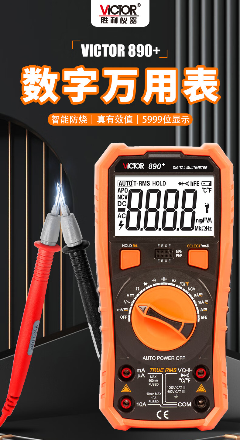 Victory Instrument (VICTOR) digital multimeter high-precision electrician special automatic range multimeter intelligent anti-burn household type VC890+
