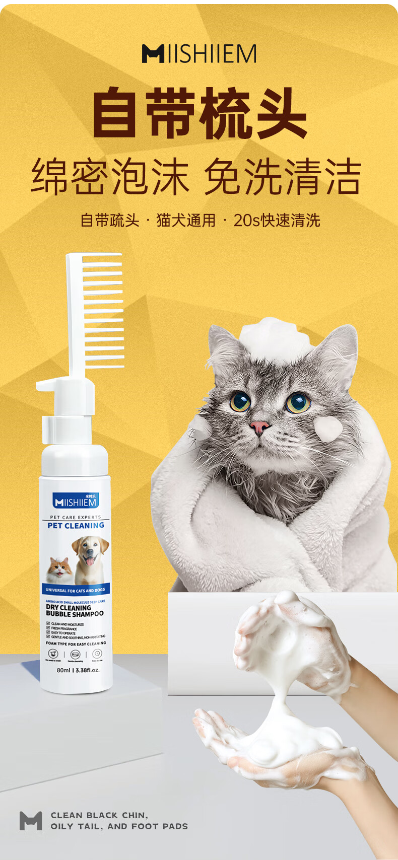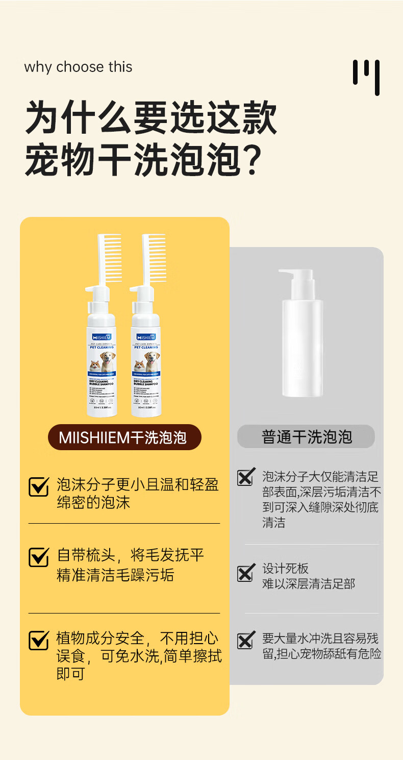 MIISHIIEM British pet dry cleaning bubble cat and dog no-wash foam amino acid sterilization, itching, stain removal and odor removal comes with brush head