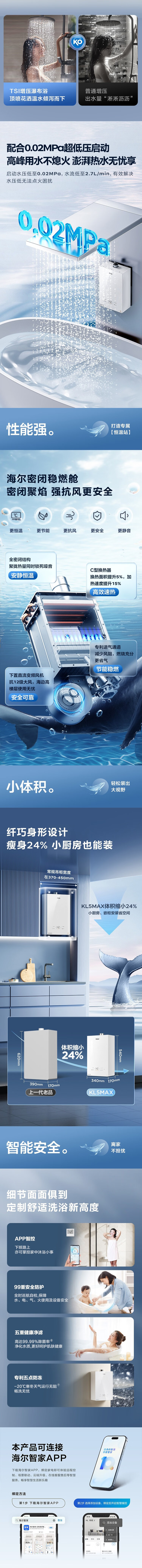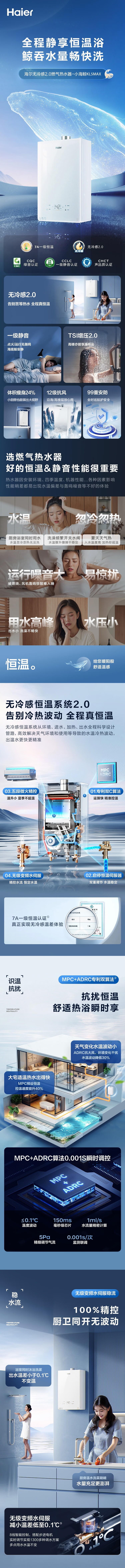 Haier non-cold feeling KL5MAX 16-liter full-range 7A first-level constant temperature, first-level silence, supercharged large water volume, white crystal panel, natural gas water heater