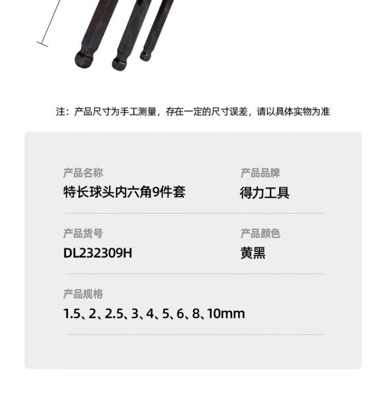 Deli black hexagonal wrench set hexagonal hexagonal wrench combination 9-piece set DL232309H