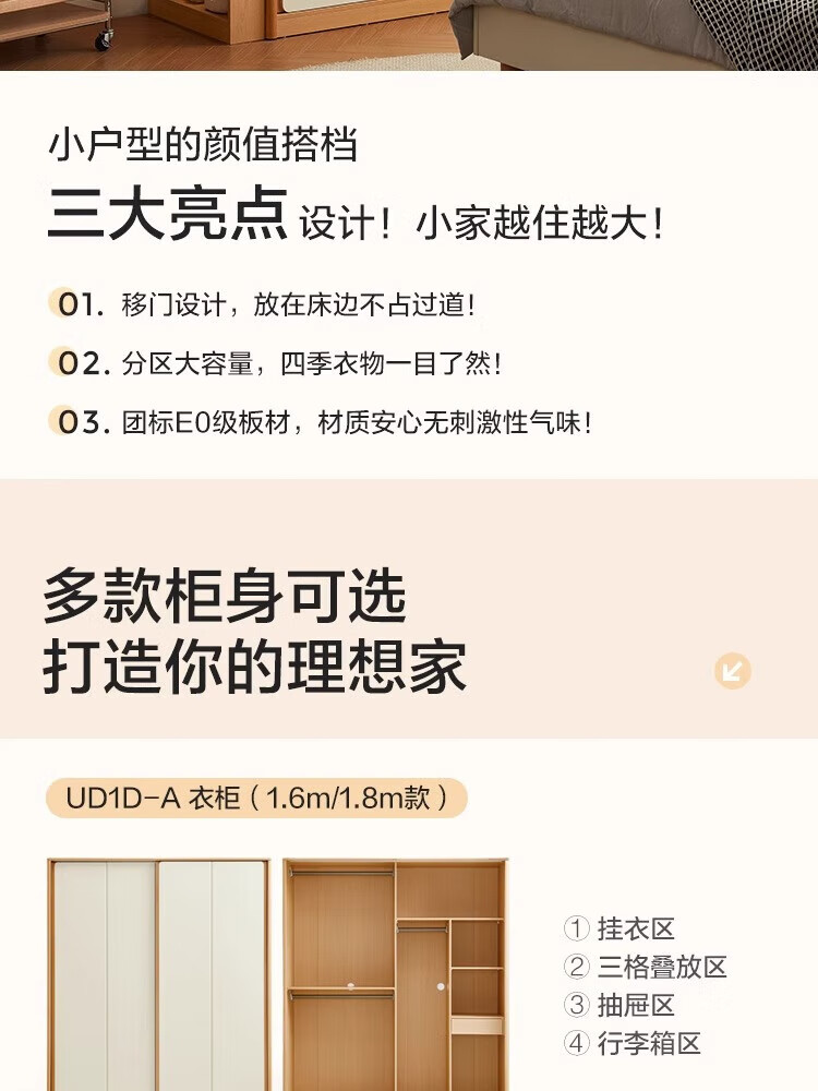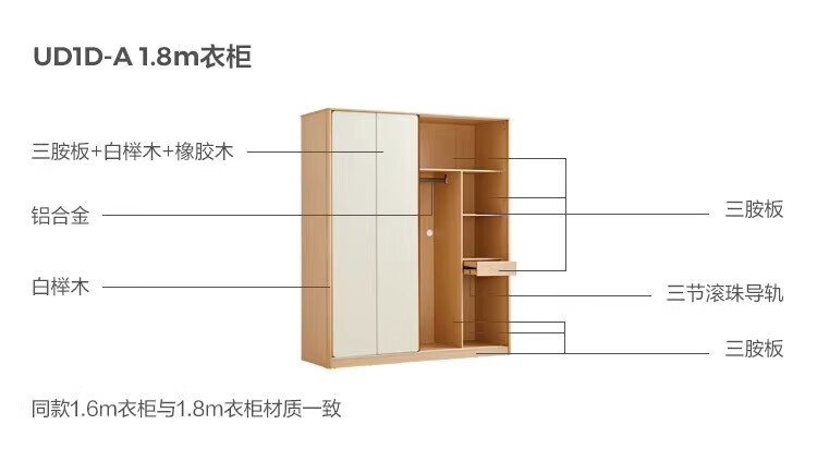 Lin's home wardrobe bedroom household sliding door sliding door wardrobe small apartment ideal home series UD1D