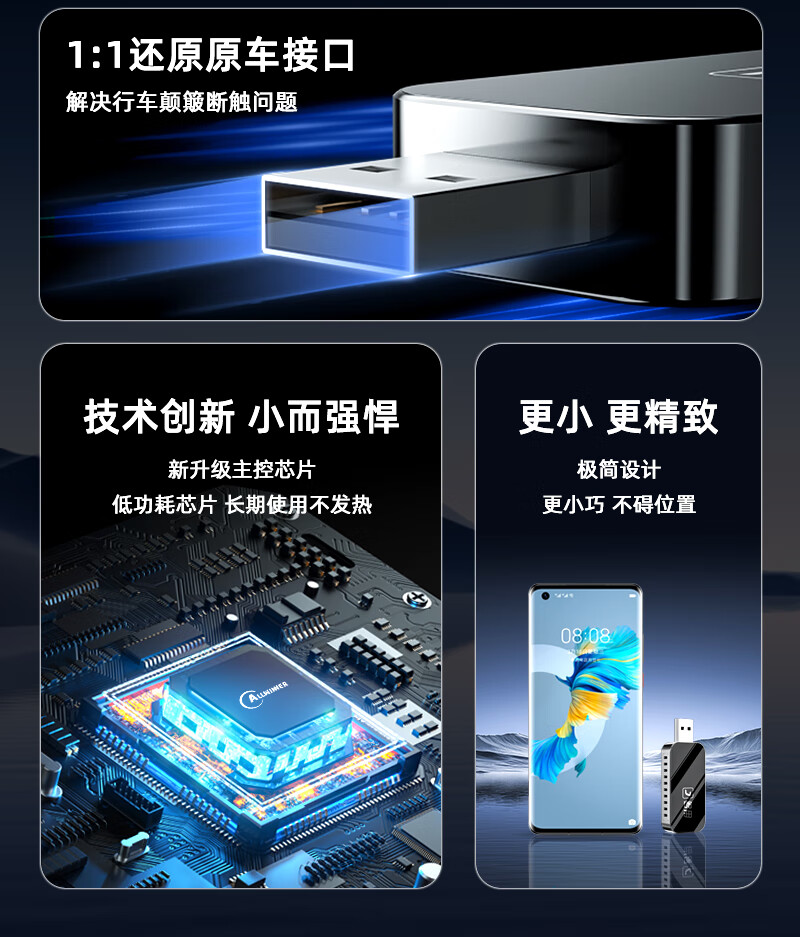 JunYong Huawei HiCar box is suitable for Audi, Volkswagen, Mercedes-Benz and Porsche car-computer interconnection box USB horizontal plug-in GT3