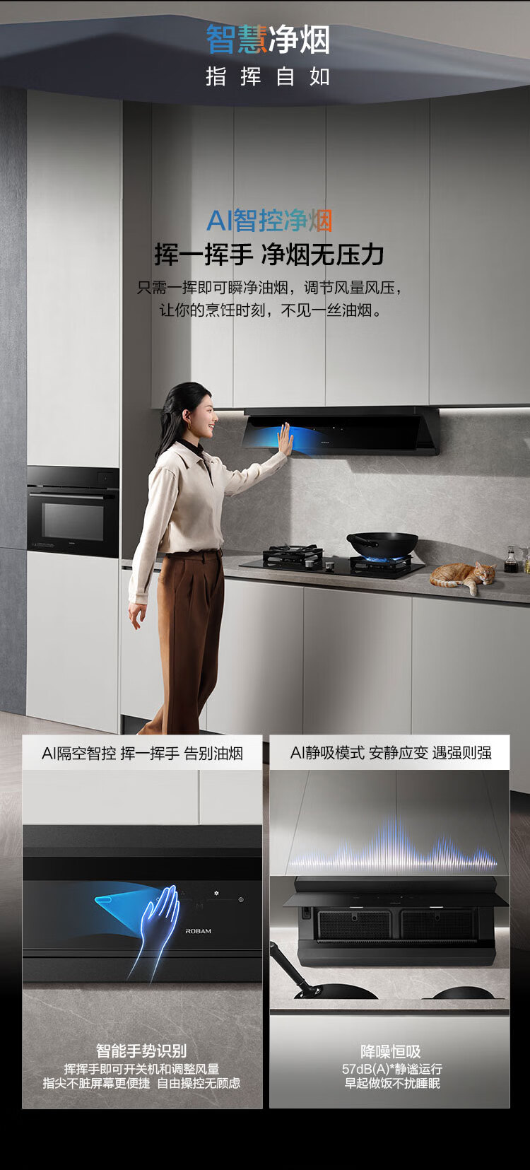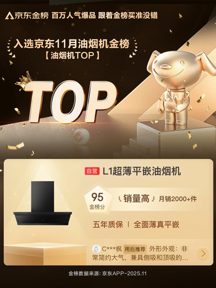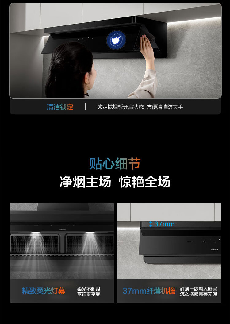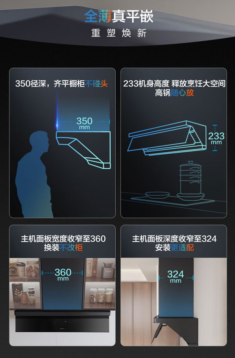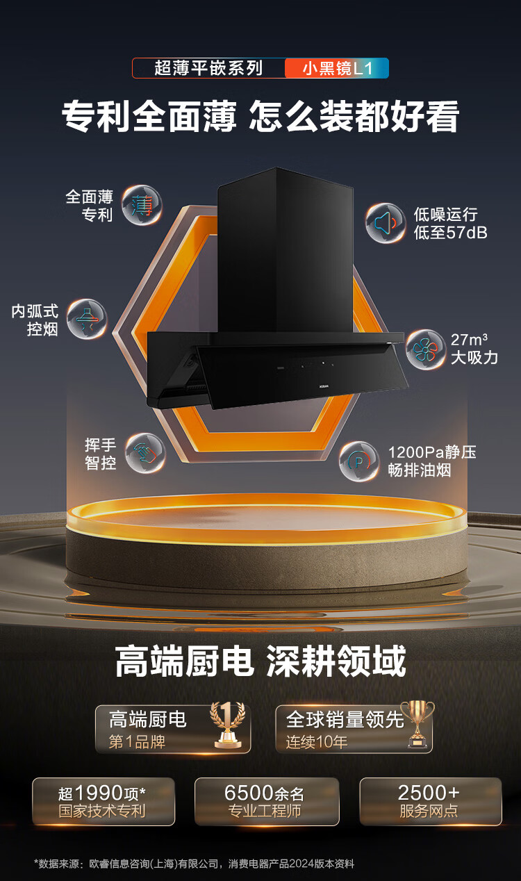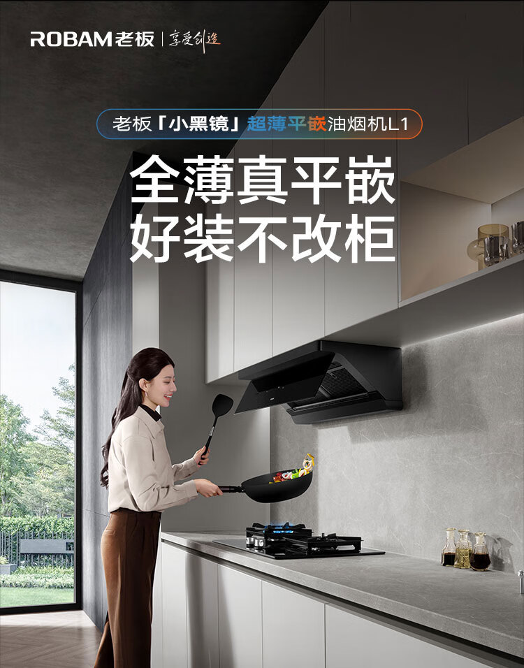 Boss ultra-thin flat-embedded small black mirror L1 suction range hood 27 air volume top side integrated without disassembly and washing recommended 55B7A silent trade-in national subsidy 20%